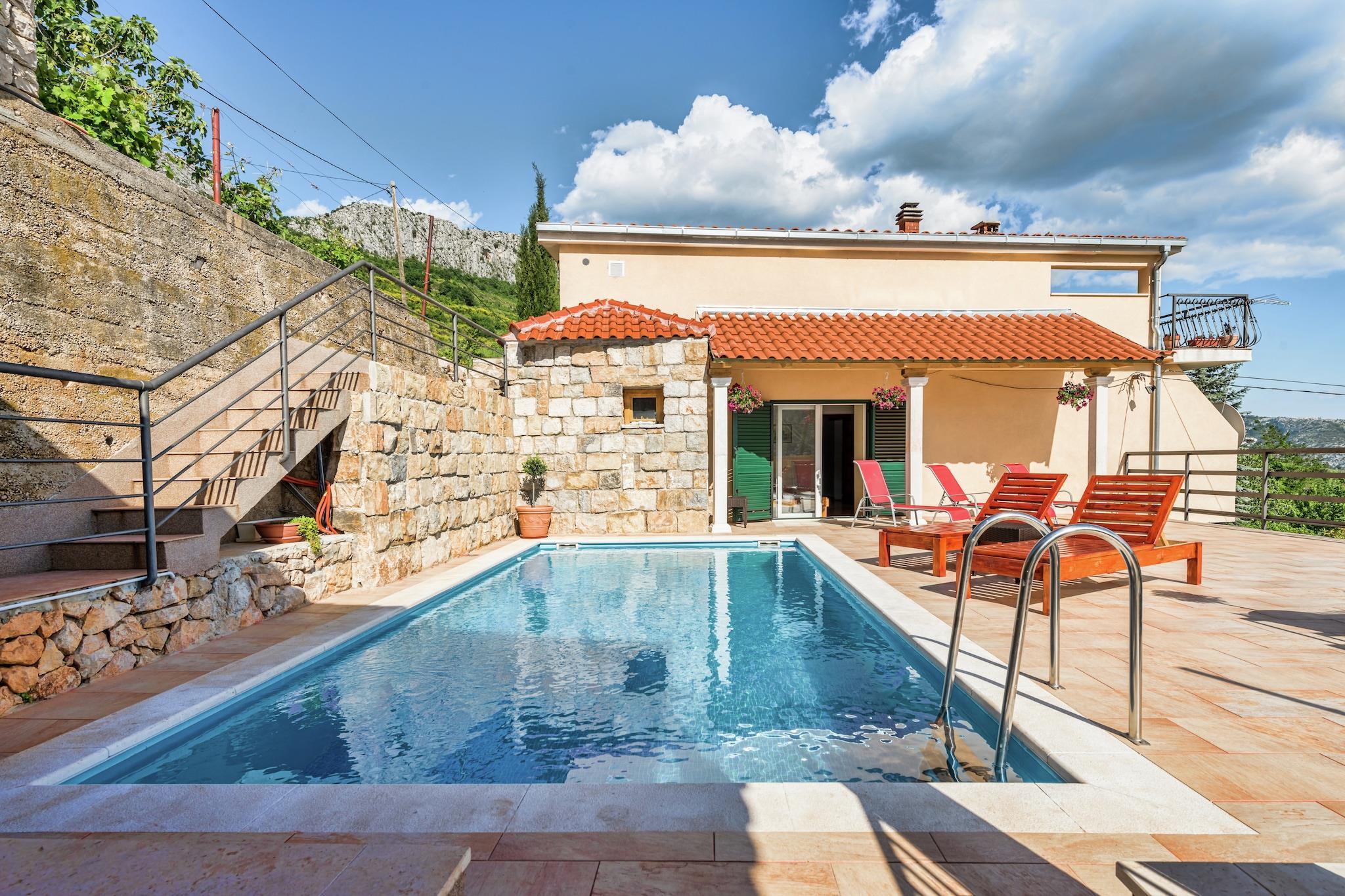 Parterre: (Schlafzimmer(2x Einzelbett(90 x 200 cm)), Schlafzimmer(Einzelbett(90 x 200 cm), Schlafcouch 1 Pers.(90 x 200 cm)), Schlafzimmer(Doppelbett(180 x 200 cm), TV(flatscreen), Balkon, Klimaanlage), Schlafzimmer(Doppelbett(180 x 200 cm), TV(flatscreen)), Badezimmer(Badewanne mit Dusche, Waschbecken, Toilette)) In der 1. Etage: (Wohnzimmer(TV(flatscreen, Satellit), Klimaanlage), offene Küche(Esstisch(10 Personen), Wasserkocher, Kochherd(4 Kochplatten, Gas, elektrisch), Kaffeemaschine(Filter), Backofen, Mikrowelle, Spülmaschine, Kühl-/Gefrierkombination), Badezimmer(Dusche, Waschbecken, Toilette), Einzelbett(90 x 200 cm), Balkon oder Terrasse) Badezimmer(Dusche, Waschbecken, Toilette, Waschmaschine), Dusche(im Garten), Dachterasse, Garten(teilweise umzäunt), Gartenmöbel, Grill, Parkplatz, Pool(alleinige Nutzung, 7 x 4 m.), Safe