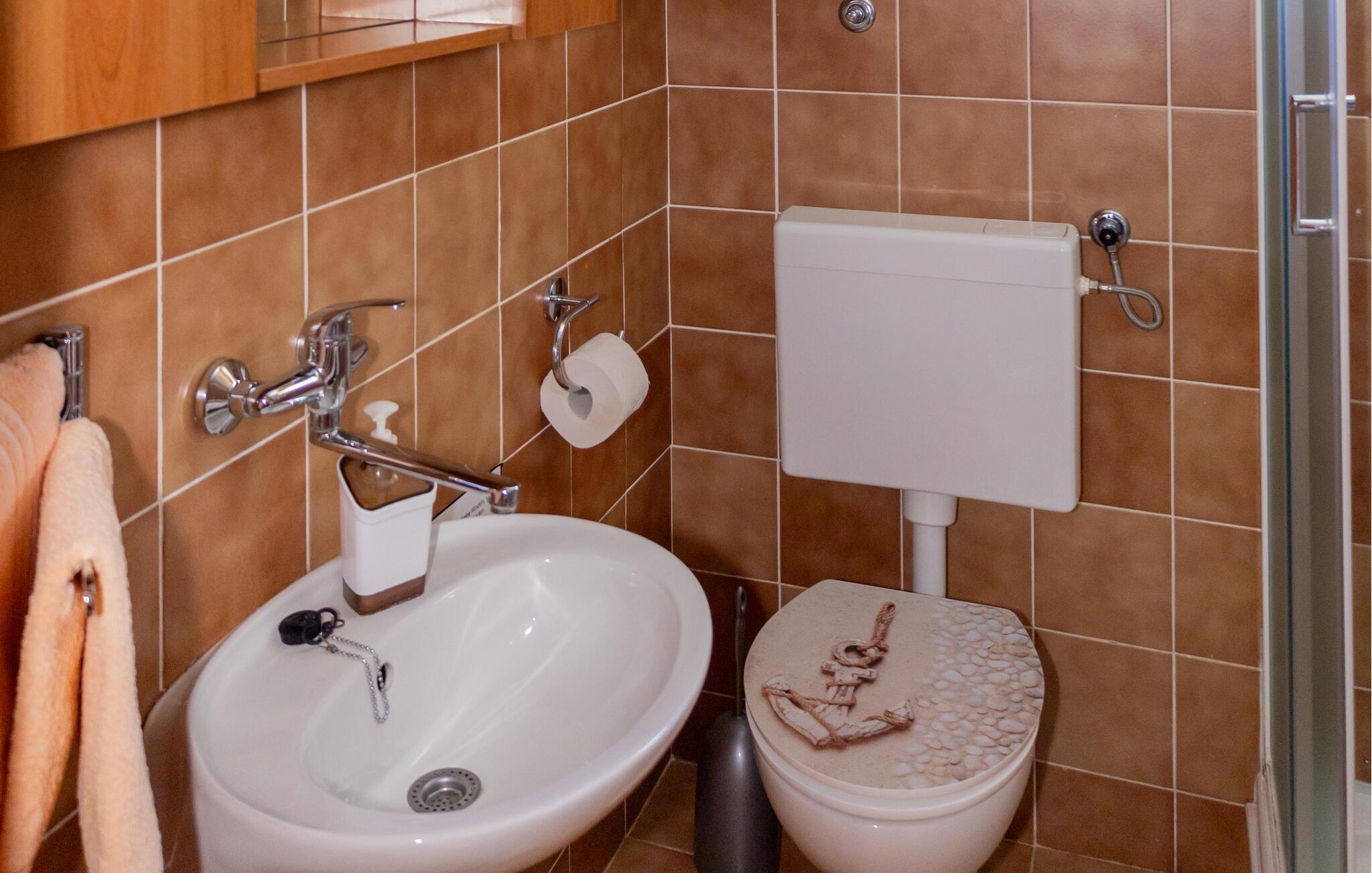 Badezimmer (nr. 2) - WC. Warmes und kaltes Wasser. Dusche