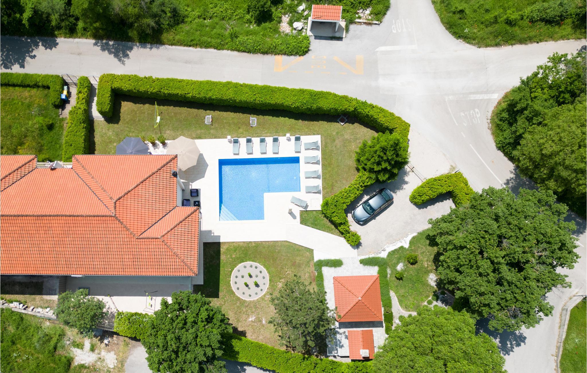 Im Hinterland von Split befindet sich diese geräumige und schöne Doppelhaus-Ferienwohnung. Das Grundstück und die natürliche Umgebung sind ideal für die Flucht vom Alltagsstress. Im Erdgeschoß befindet sich die Küche mit geräumigem Wohnbereich, während sich die Schlafzimmer im Obergeschoß befinden (Innentreppe). Zur Verfügung steht Ihnen der mit Gegenstromanlage ausgestattete Pool. Restaurants und Geschäfte finden Sie im etwa 7 km entfernten Dugopolje. Besuchen Sie die Städte Trilj und Split und den Fluss Cetina, der zum Rafting einlädt