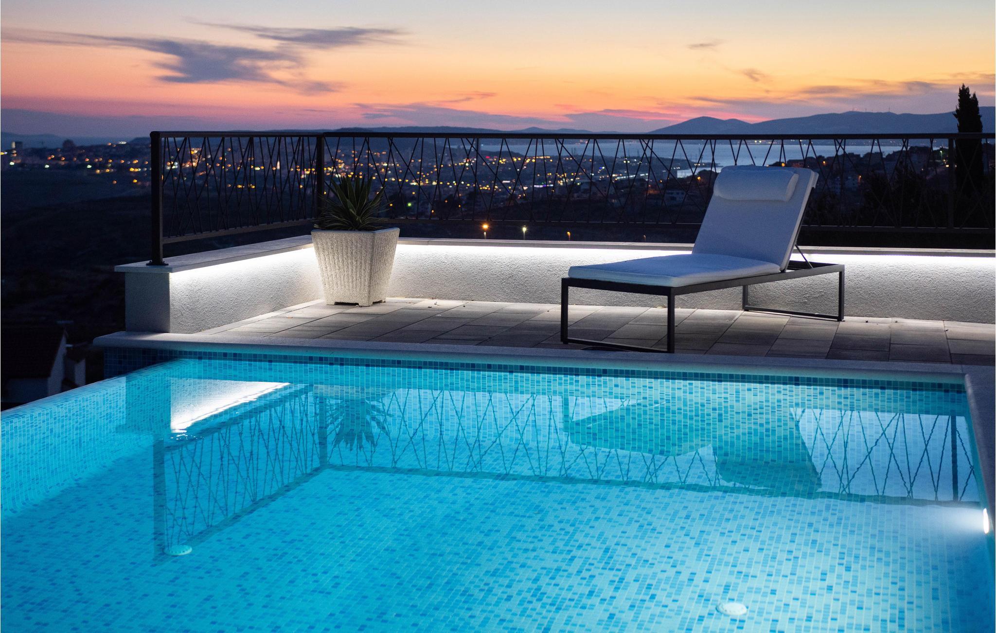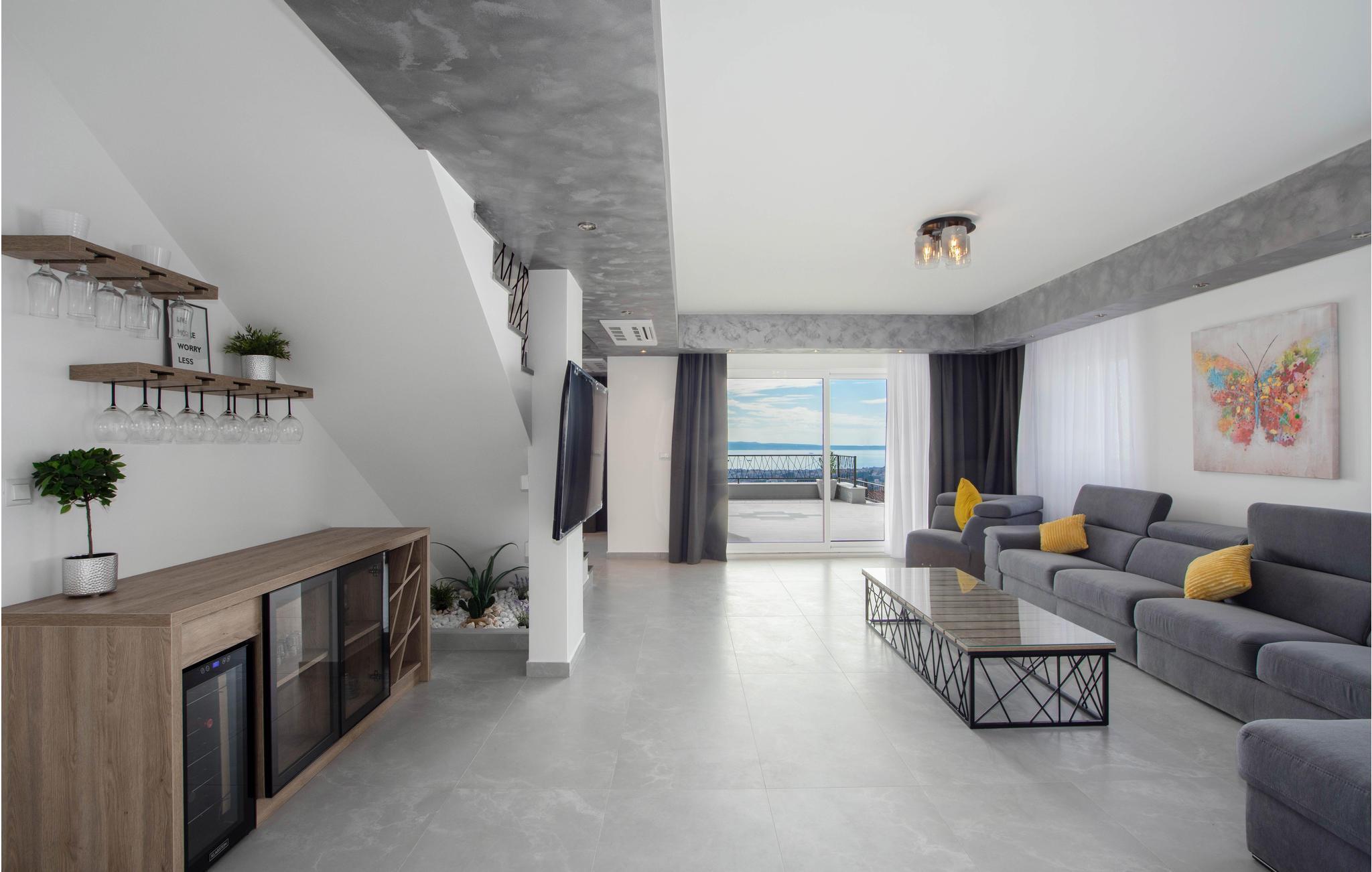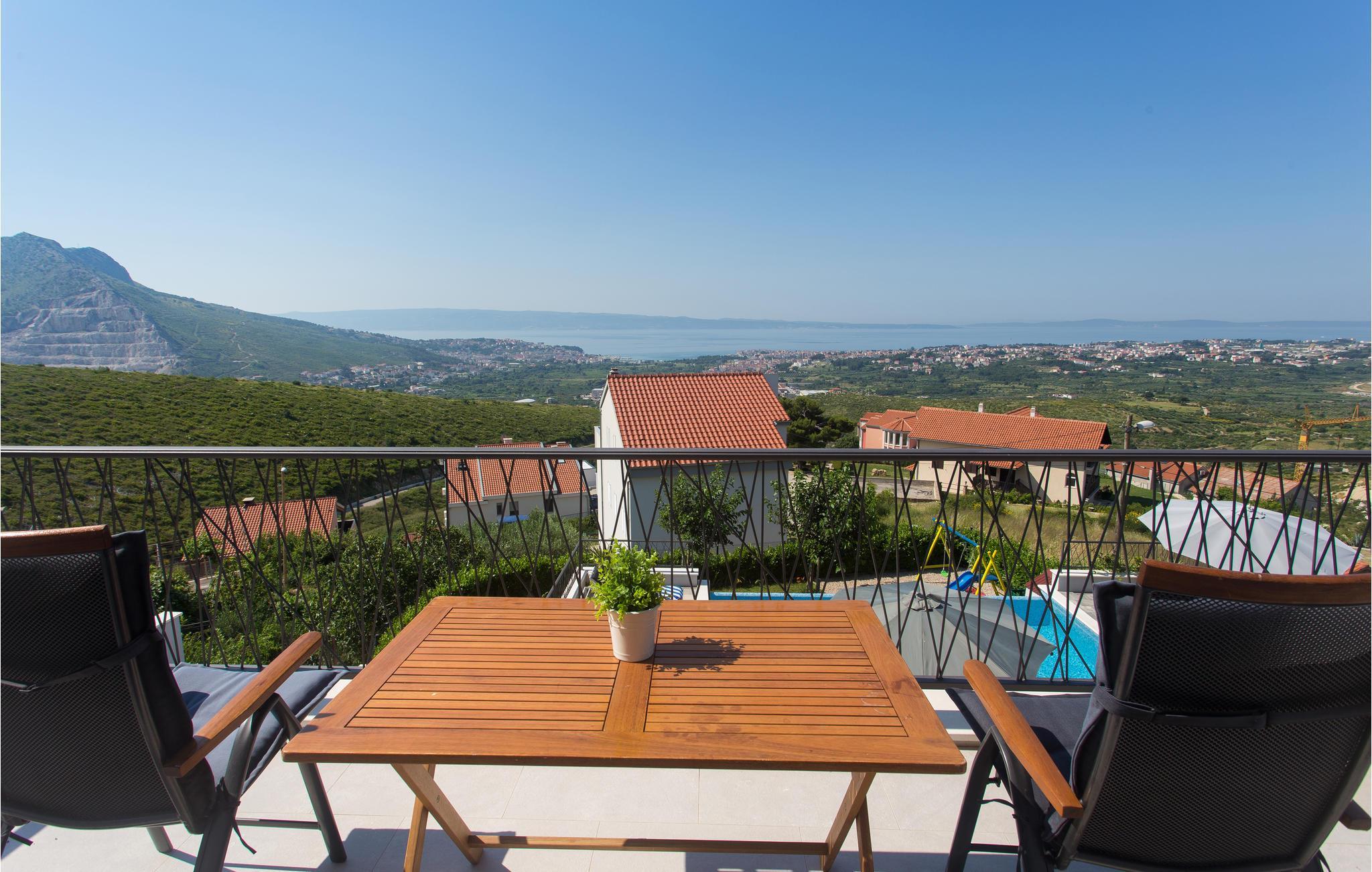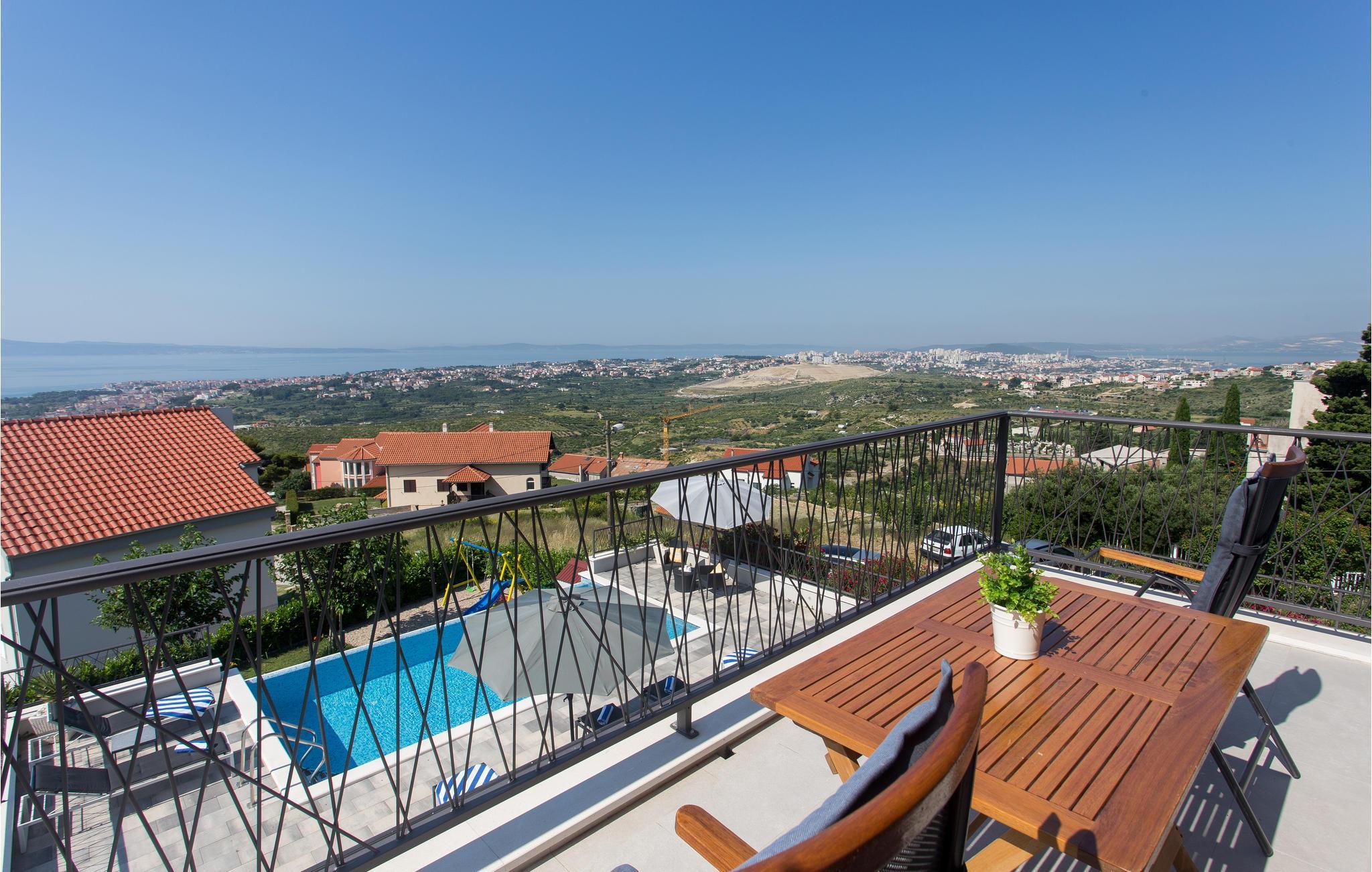 Dieses attraktive Ferienhaus liegt an den Hängen der Berge und bietet einen Panoramablick auf die Stadt Split, die Adria und die umliegenden Inseln. Ausgestattet mit sämtlichem Komfort, der Ihren Urlaub zum rundum gelungenen Erlebnis macht, finden Genießer viel Raum zum Entspannen. Auch im Außenbereich neben dem erfrischenden Pool sorgen zahlreiche Freizeiteinrichtungen für Unterhaltung. Von der Garage führen Innentreppen zu den oberen Etagen, wo sich die Küche mit Essbereich und Wohnzimmer sowie vier Schlafzimmer mit eigenen Badezimmern befinden. Nur wenige Kilometer weit entfernt finden sie weltberühmte archäologische Stätten aus der Antike, wie in Solin und Split. Diejenigen, die Ihren Urlaub Nervenkitzel suchen, können Rafting auf dem Fluss Cetina oder Zip-Line in der Stadt Omis ausprobieren.