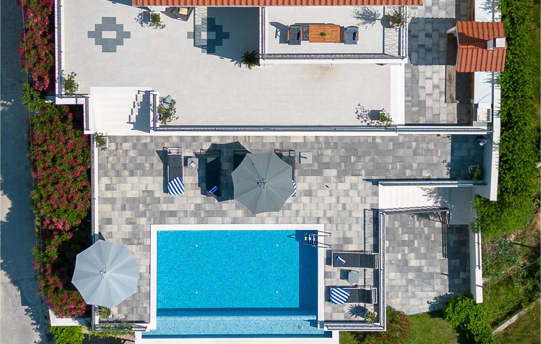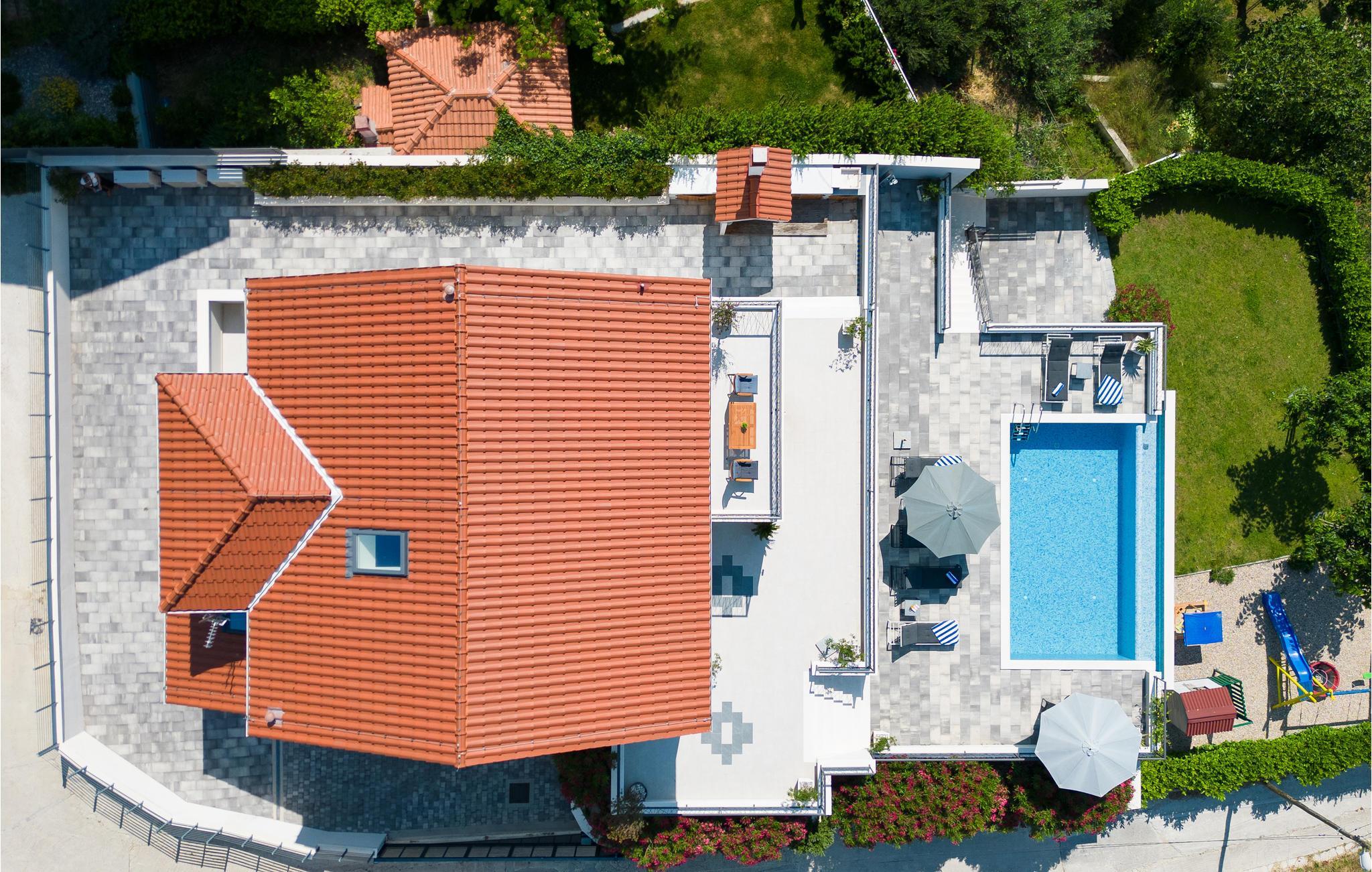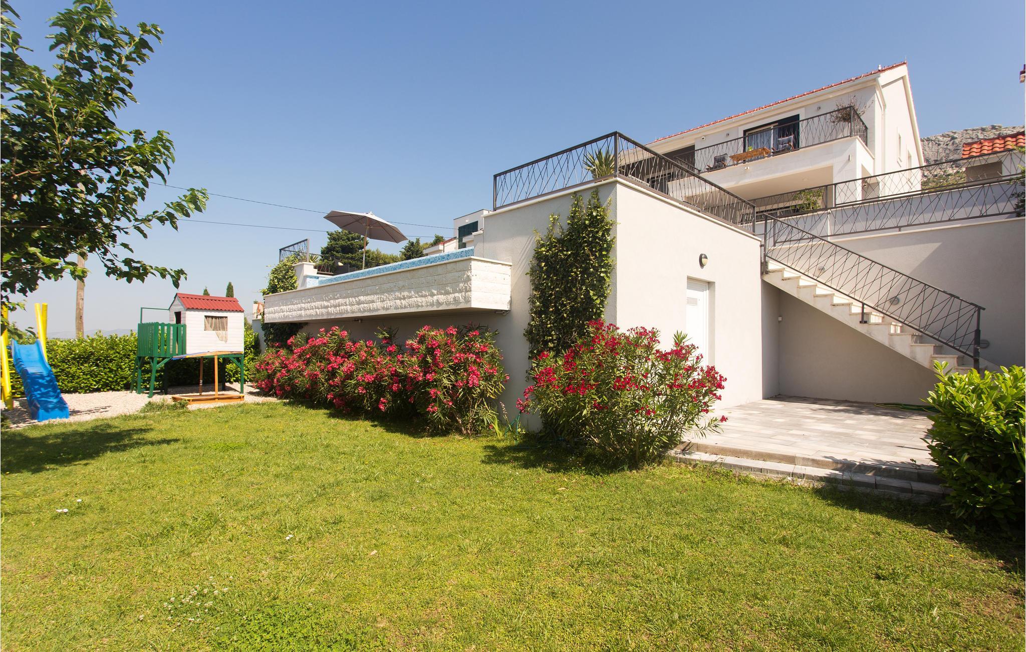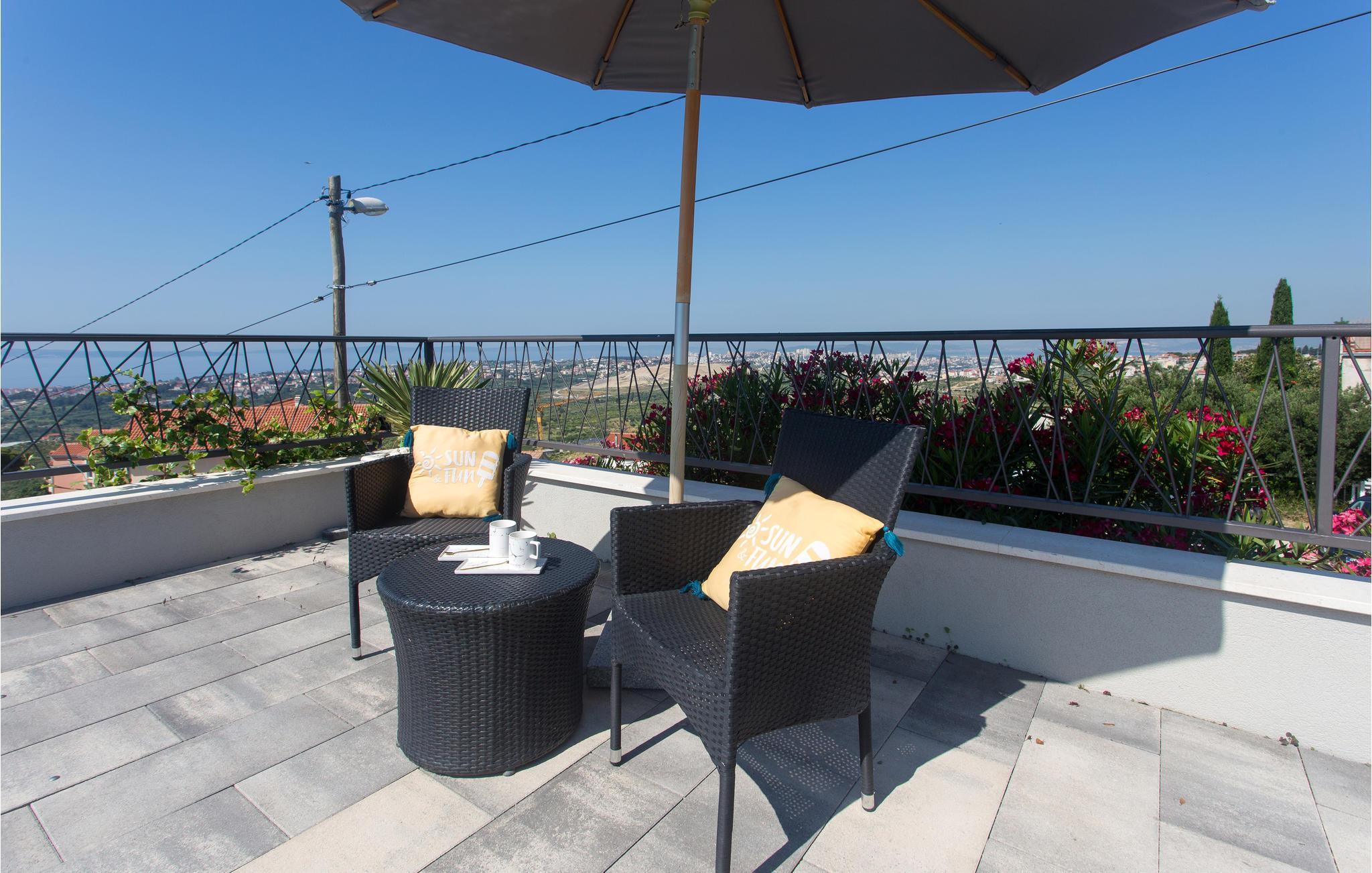 Dieses attraktive Ferienhaus liegt an den Hängen der Berge und bietet einen Panoramablick auf die Stadt Split, die Adria und die umliegenden Inseln. Ausgestattet mit sämtlichem Komfort, der Ihren Urlaub zum rundum gelungenen Erlebnis macht, finden Genießer viel Raum zum Entspannen. Auch im Außenbereich neben dem erfrischenden Pool sorgen zahlreiche Freizeiteinrichtungen für Unterhaltung. Von der Garage führen Innentreppen zu den oberen Etagen, wo sich die Küche mit Essbereich und Wohnzimmer sowie vier Schlafzimmer mit eigenen Badezimmern befinden. Nur wenige Kilometer weit entfernt finden sie weltberühmte archäologische Stätten aus der Antike, wie in Solin und Split. Diejenigen, die Ihren Urlaub Nervenkitzel suchen, können Rafting auf dem Fluss Cetina oder Zip-Line in der Stadt Omis ausprobieren.