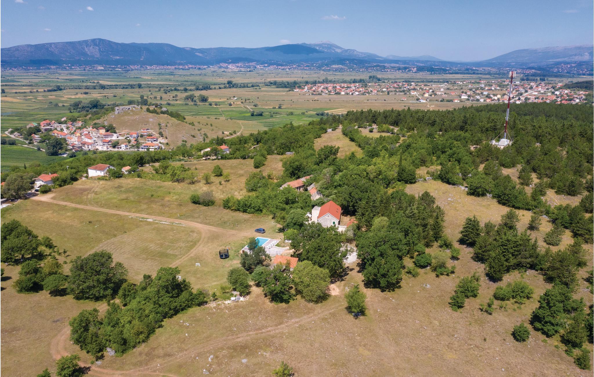 Dieses geschmackvoll eingerichtete Ferienhaus mit Pool liegt auf einem offenen, natürlichen Grundstück, das von Bäumen, Wiesen und Weiden umgeben ist. Rund um das zweistöckige Ferienhaus herum gibt es mehrere Terrassen. Die Natur hier ist so pur, dass die Vögel den einzigen Lärm verursachen, der hier zu hören ist. Die Terrasse mit dem großen Pool bietet eine schöne Aussicht auf die Landschaft. Die letzten 150 m zum Haus sind nicht asphaltiert. Der nahe liegende Fluss Cetina bietet Ihnen die Möglichkeit für Rafting-Abenteuer. Besuchen Sie das Städtchen Sinj (8 km) oder Kroatiens größte Küstenstadt Split (40 km).