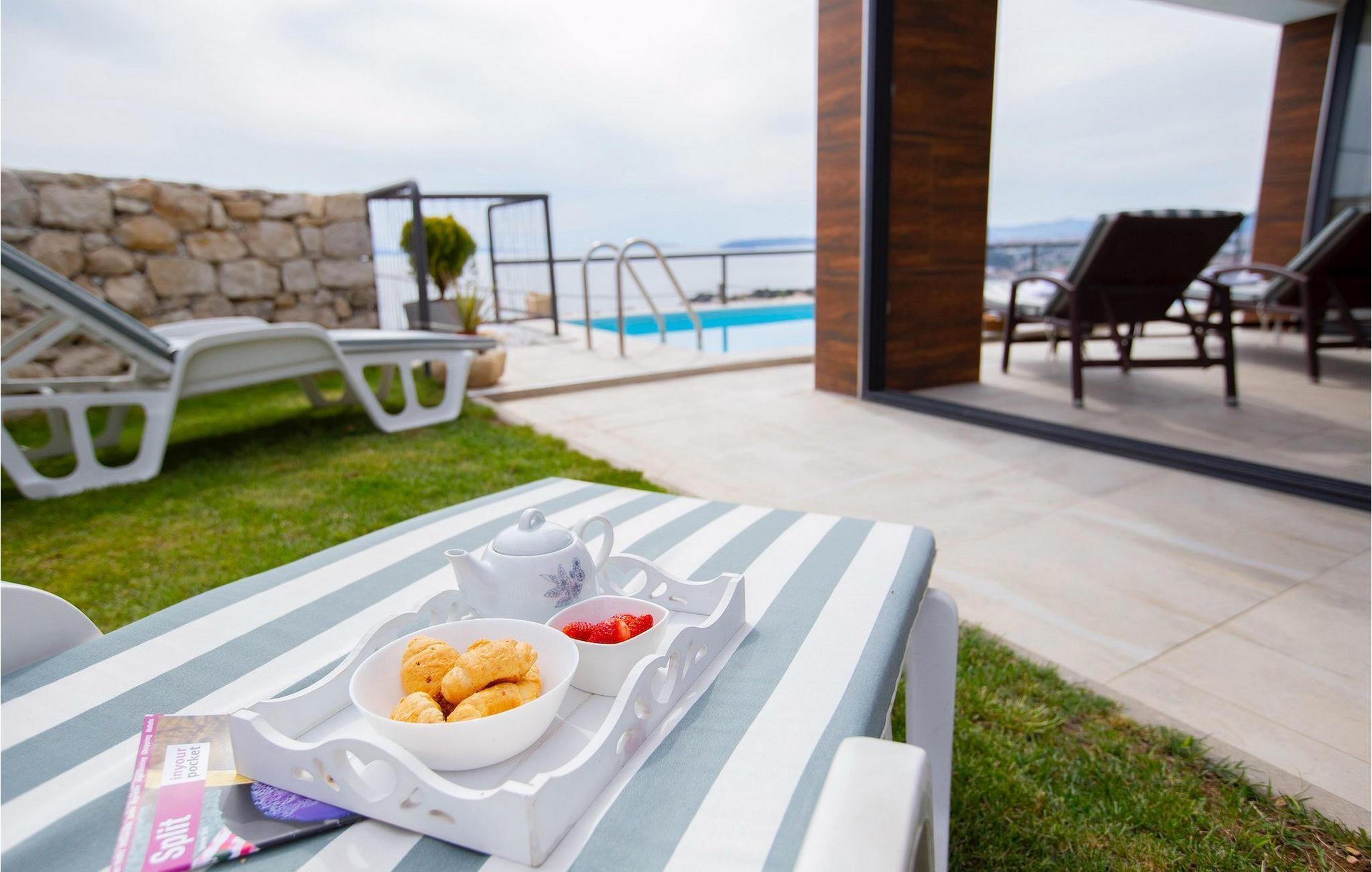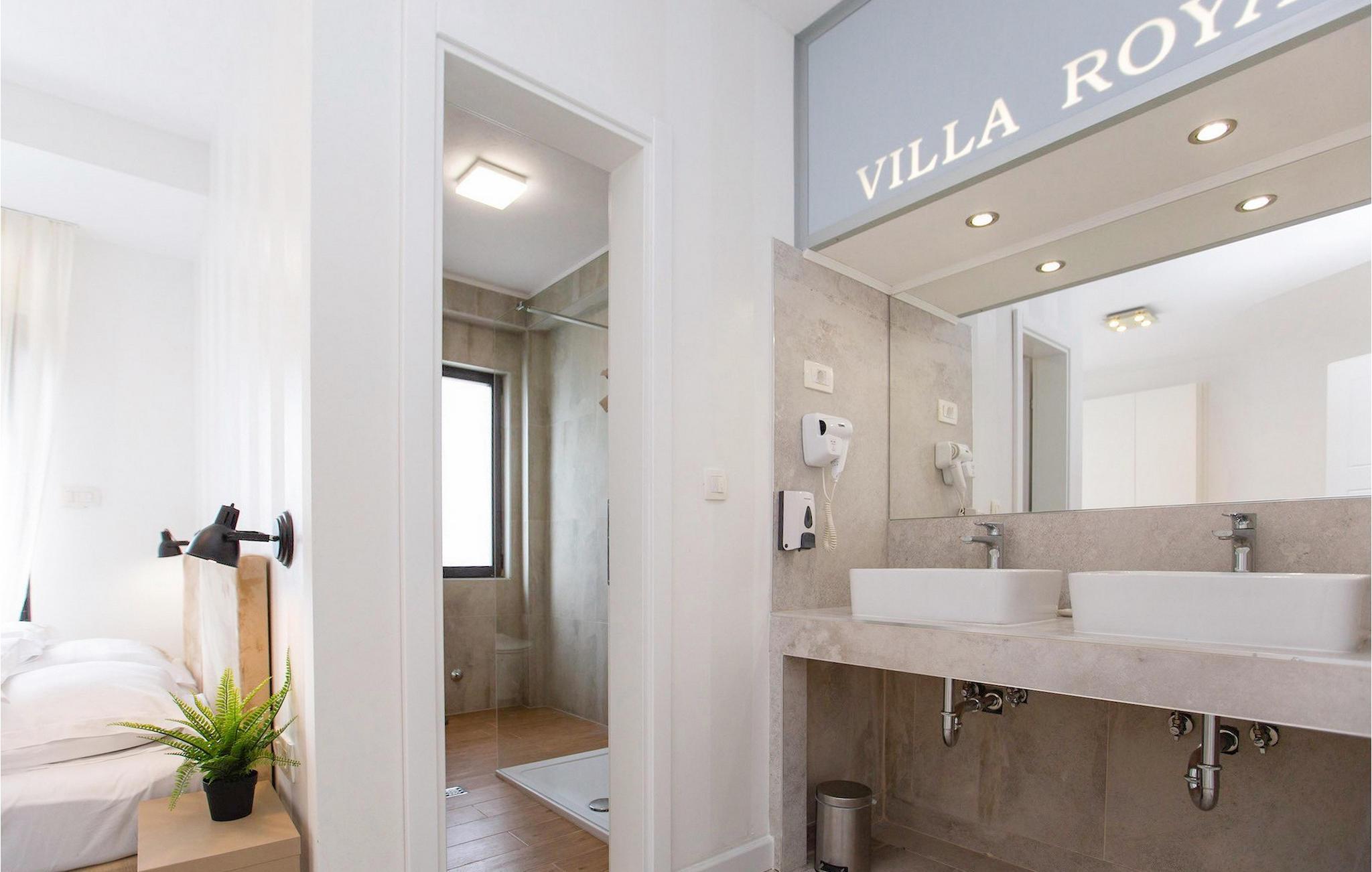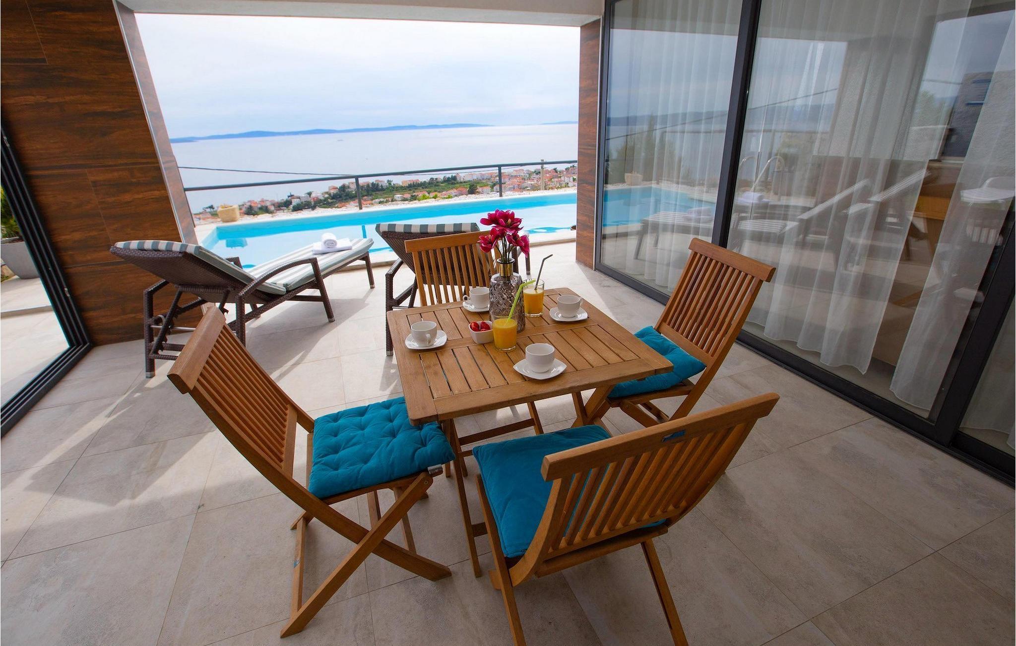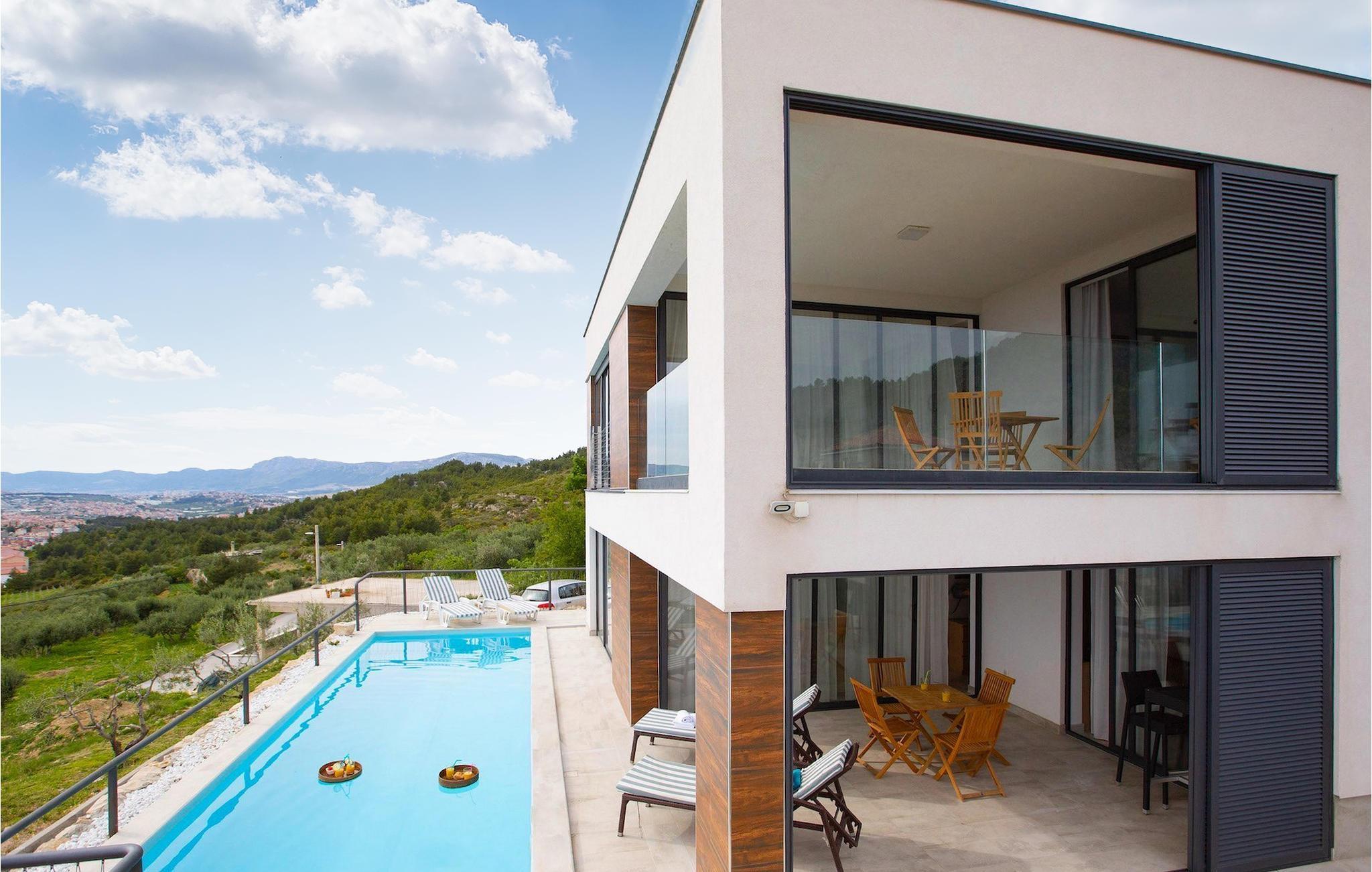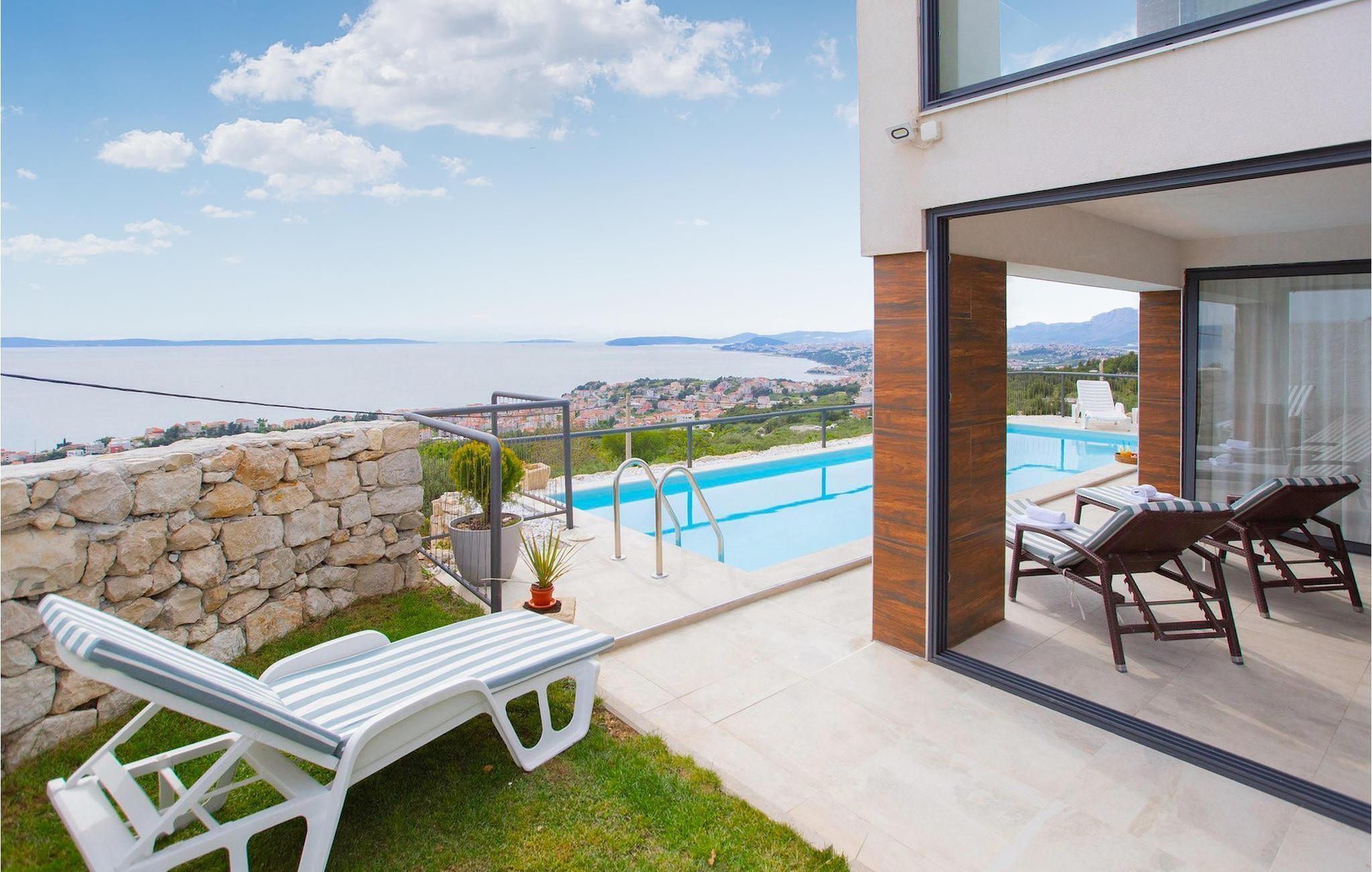 Die Villa Royal 2 Podstrana befindet sich in Podstrana, nur eine kurze Fahrt von der Stadt Split entfernt. Die Villa verfügt über insgesamt 4 Schlafzimmer und kann bis zu 6+2 Personen beherbergen. Das Interieur zeichnet sich durch klare Linien und modernes Design aus. Die Villa ist in 2 Etagen und zwei Wohnungen aufgeteilt. Das offene Erdgeschoss besteht aus einer modernen und gut ausgestatteten Küche, Essbereich und Wohnzimmer mit herrlichem Meerblick. Zwei Schlafzimmer mit en-suite Badezimmern befinden sich ebenfalls im Erdgeschoss. Das zweite Apartment befindet sich im ersten Stock, wo sich zwei weitere Schlafzimmer mit Doppelbett und en-suite Badezimmer, eine Küche und ein Wohnzimmer mit direktem Zugang zur großen Terrasse befinden. Die Terrasse im ersten Stock bietet Ihnen einen zusätzlichen privaten Platz, um den Panoramablick zu genießen. Vor der Villa befindet sich ein privater Pool, in dem Sie sich entspannen können, während Sie Ihr Lieblingsbuch lesen oder die Sonne aufsaugen. Diese einzigartige Villa ist perfekt für Familien und Gruppen und bietet seinen Gästen einen wirklich unvergesslichen Urlaub.Die Villa Royal 2 Podstrana liegt an einem Hang und bietet einen wunderschönen Blick auf die Adria, die Inseln und die Küstenstadt Podstrana. Alle notwendigen Annehmlichkeiten wie Geschäfte, Restaurants und Cafés sind nur einen kurzen Spaziergang von der Villa entfernt. Verbringen Sie Ihren Urlaub an schönen Kieselstränden, ideal für Familien mit Kindern. Die Villa befindet sich in Mitteldalmatien und ist somit ein idealer Ausgangspunkt für viele Tagesausflüge. Besuchen Sie die Stadt Split und ihren Diokletianspalast mit seinen vielen engen Gassen und Top-Restaurants. Versäumen Sie es nicht, die Inseln Brac, Solta und Hvar zu besuchen, oder vielleicht sogar die Insel Vis, die ganz anders ist als andere Inseln in der Adria. Entspannen Sie sich in der wunderschönen Natur, in zahlreichen Nationalparks und Naturreservaten. Für alle Adrenalin-Liebhaber, besuchen Sie den Fluss Cetina, wo Sie Rafting und Zipline genießen können, oder fahren Sie zum Berg Biokovo und machen Sie einen Spaziergang auf dem Skywalk.