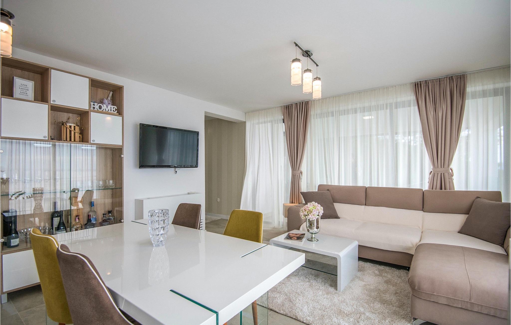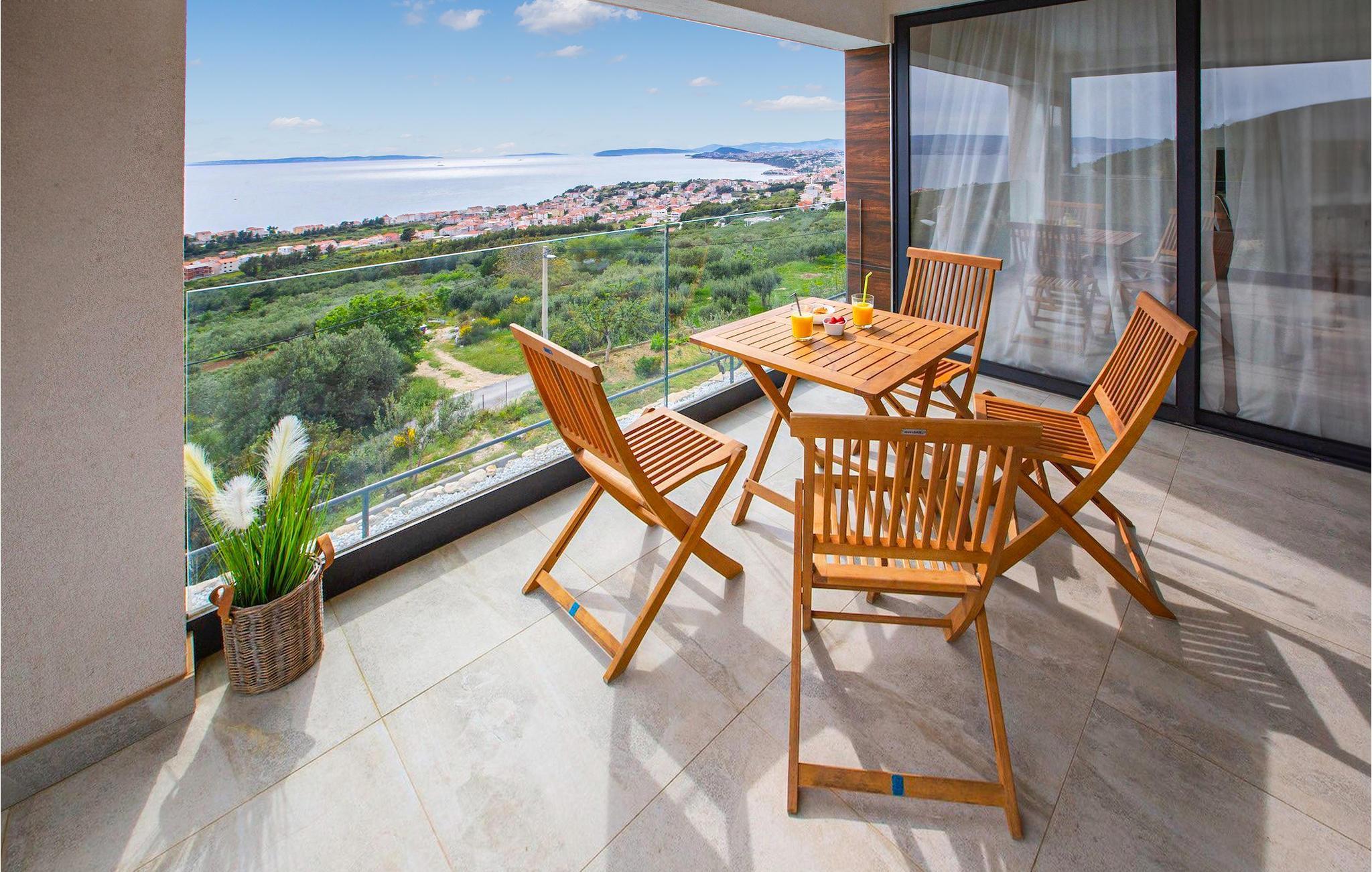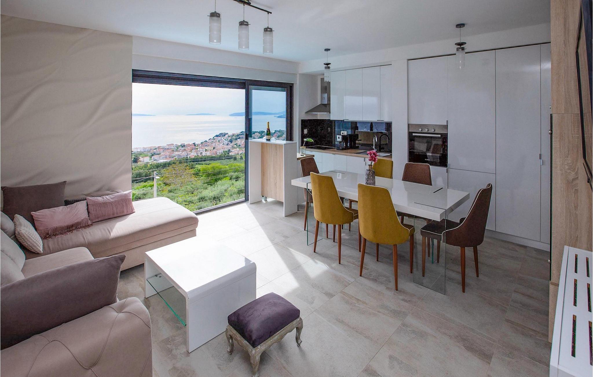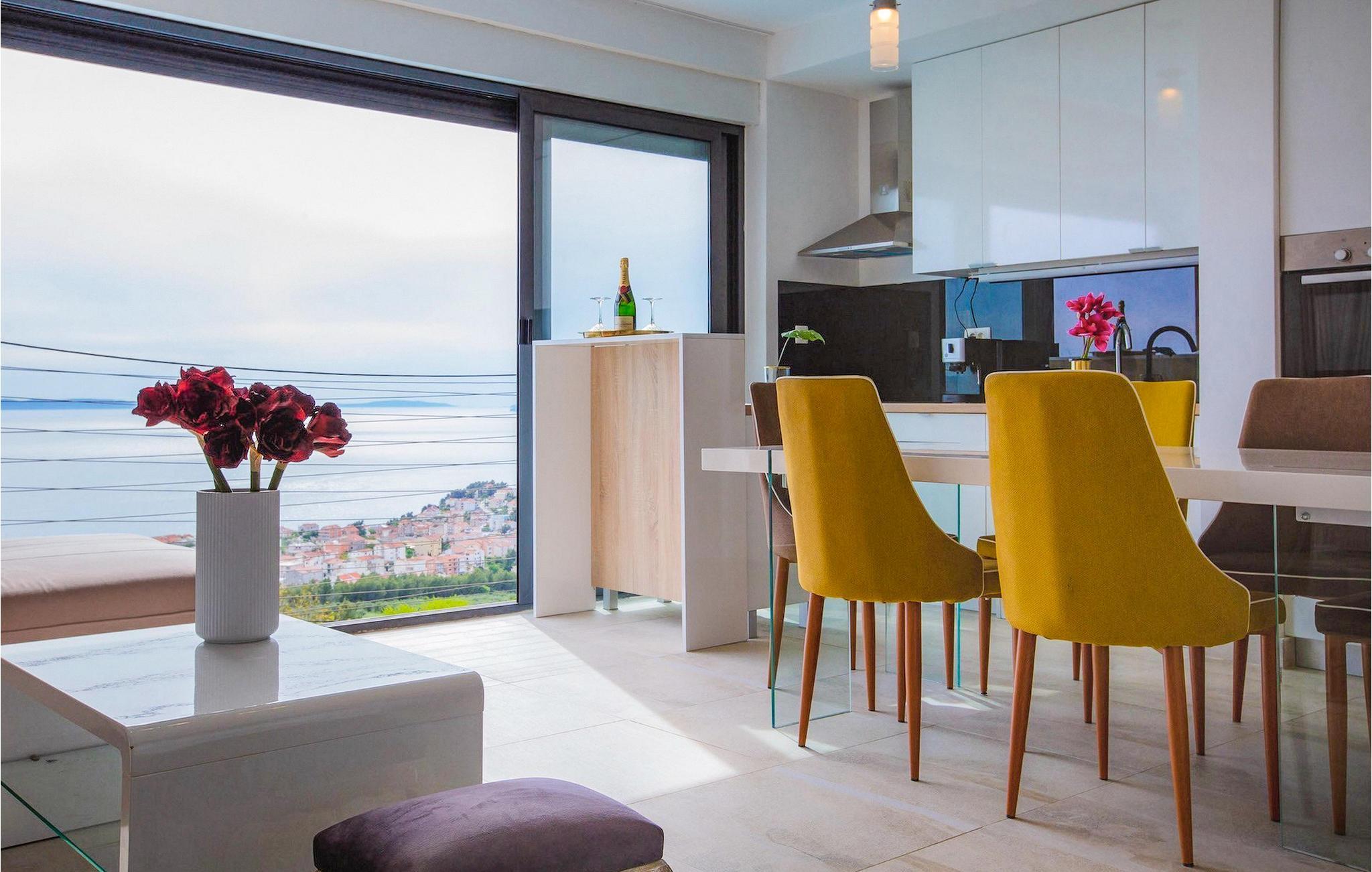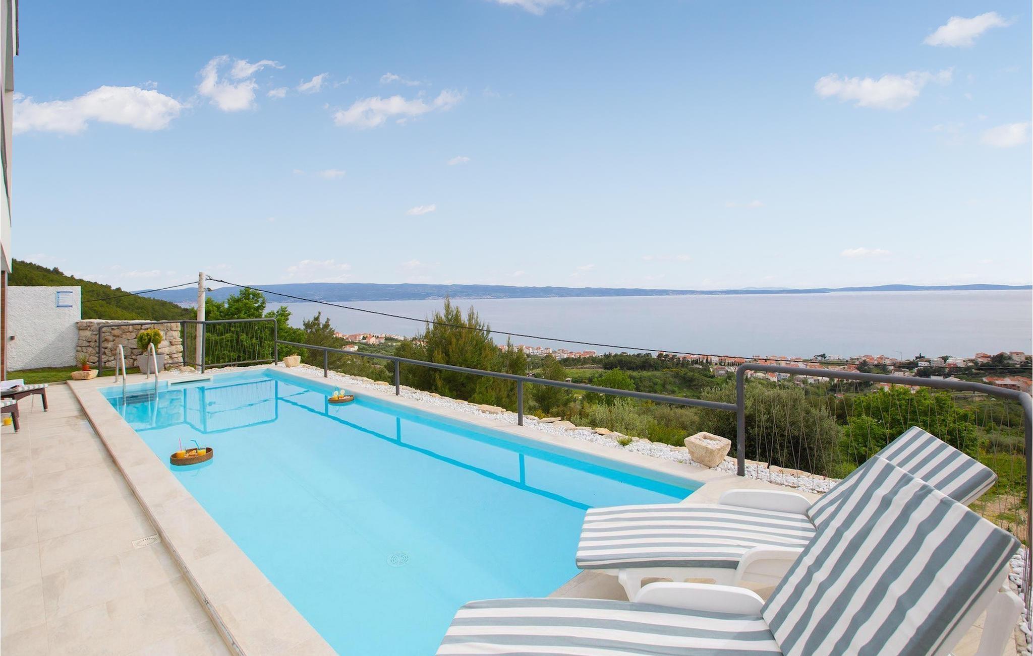 Die Villa Royal 2 Podstrana befindet sich in Podstrana, nur eine kurze Fahrt von der Stadt Split entfernt. Die Villa verfügt über insgesamt 4 Schlafzimmer und kann bis zu 6+2 Personen beherbergen. Das Interieur zeichnet sich durch klare Linien und modernes Design aus. Die Villa ist in 2 Etagen und zwei Wohnungen aufgeteilt. Das offene Erdgeschoss besteht aus einer modernen und gut ausgestatteten Küche, Essbereich und Wohnzimmer mit herrlichem Meerblick. Zwei Schlafzimmer mit en-suite Badezimmern befinden sich ebenfalls im Erdgeschoss. Das zweite Apartment befindet sich im ersten Stock, wo sich zwei weitere Schlafzimmer mit Doppelbett und en-suite Badezimmer, eine Küche und ein Wohnzimmer mit direktem Zugang zur großen Terrasse befinden. Die Terrasse im ersten Stock bietet Ihnen einen zusätzlichen privaten Platz, um den Panoramablick zu genießen. Vor der Villa befindet sich ein privater Pool, in dem Sie sich entspannen können, während Sie Ihr Lieblingsbuch lesen oder die Sonne aufsaugen. Diese einzigartige Villa ist perfekt für Familien und Gruppen und bietet seinen Gästen einen wirklich unvergesslichen Urlaub.Die Villa Royal 2 Podstrana liegt an einem Hang und bietet einen wunderschönen Blick auf die Adria, die Inseln und die Küstenstadt Podstrana. Alle notwendigen Annehmlichkeiten wie Geschäfte, Restaurants und Cafés sind nur einen kurzen Spaziergang von der Villa entfernt. Verbringen Sie Ihren Urlaub an schönen Kieselstränden, ideal für Familien mit Kindern. Die Villa befindet sich in Mitteldalmatien und ist somit ein idealer Ausgangspunkt für viele Tagesausflüge. Besuchen Sie die Stadt Split und ihren Diokletianspalast mit seinen vielen engen Gassen und Top-Restaurants. Versäumen Sie es nicht, die Inseln Brac, Solta und Hvar zu besuchen, oder vielleicht sogar die Insel Vis, die ganz anders ist als andere Inseln in der Adria. Entspannen Sie sich in der wunderschönen Natur, in zahlreichen Nationalparks und Naturreservaten. Für alle Adrenalin-Liebhaber, besuchen Sie den Fluss Cetina, wo Sie Rafting und Zipline genießen können, oder fahren Sie zum Berg Biokovo und machen Sie einen Spaziergang auf dem Skywalk.