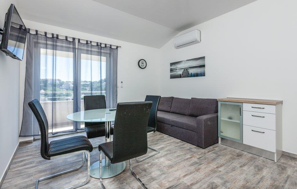 Diese geschmackvoll eingerichtete Ferienwohnung befindet sich in einer Vorstadt von Split. Sie liegt im Obergeschoß eines privat genutzten Domizils. Genießen Sie den Meerblick vom Balkon aus. Die nächstgelegene Ortschaft ist Stobrec, wo Sie neben einer breiten Palette von gastronomischen Angeboten und verschiedenen Cafés auch Spazierwege und Sand- und Kiesstrände in einer schönen Landschaft finden. Einer der attraktivsten, lokalen Strände von Split ist Žnjan, den Sie mit dem Auto in etwa 10 Minuten erreichen können. In der Nähe des Feriendomizils befindet sich auch eine Bushaltestelle für Verbindungen nach Split und Omiš.