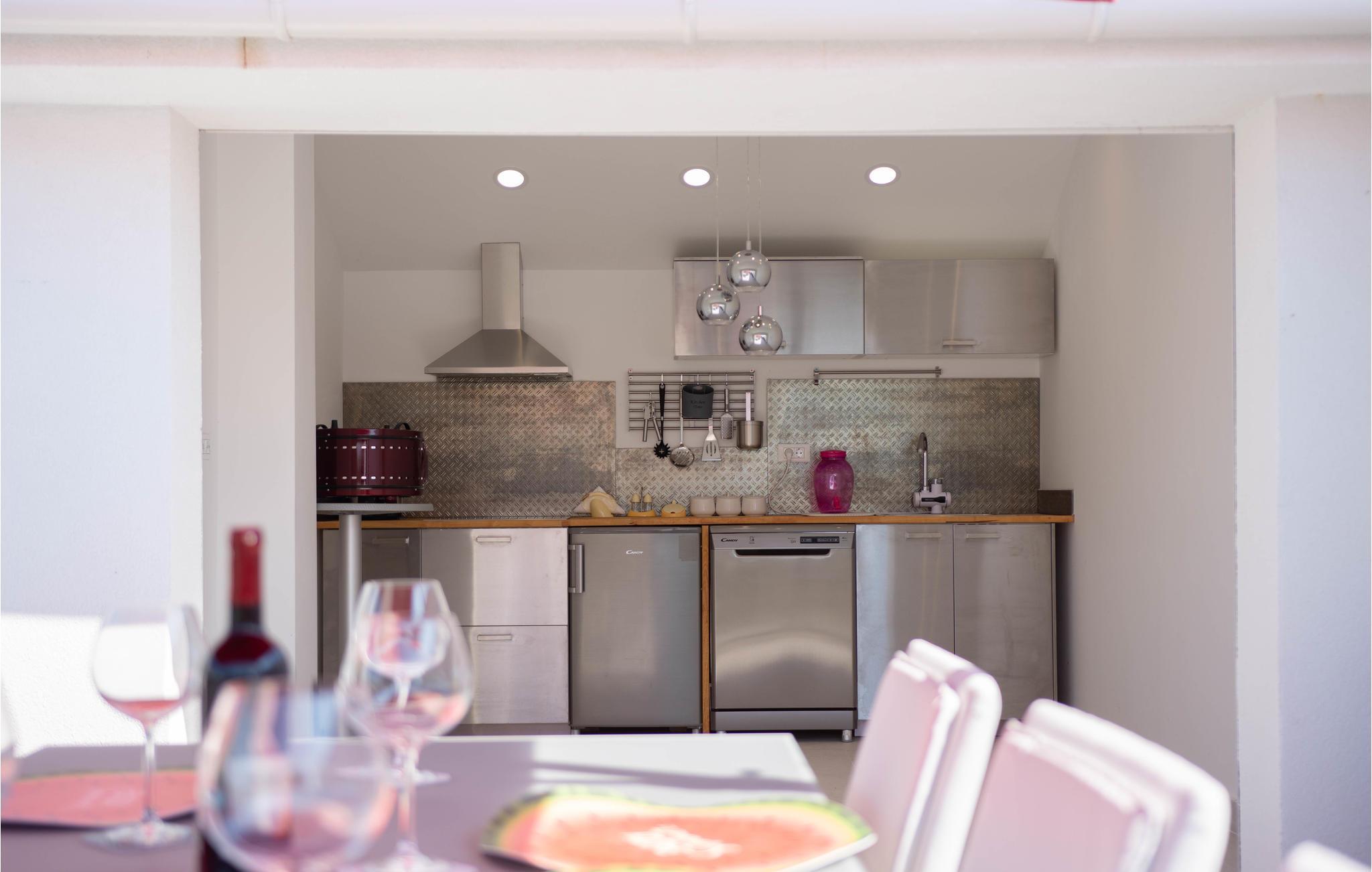 Dieses schöne und aeinladende Ferienhaus mit Pool liegt in der kleinen Ortschaft Žrnovnica in der Nähe von Split. Im Erdgeschoss ist der komplett ausgestattete Wohnbereich untergebracht, von wo Sie aus an den Pool mit Gegenstromanlage und Massagedüsen erreichen. Der Schlafbereich mit Bädern befindet sich in der oberen Etage. Von zwei Schlafzimmern bietet sich eine herrliche Aussicht auf das Meer. Entspannen Sie sich am Pool, wo sich auch die Sommerküche befindet. Verbringen Sie angenehme Stunden im großen Freizeitraum, der auch als Wellnessecke durchgehen kann, weil sich dort eine Hydromassagewanne, Sauna und Fitnessgeräte befinden. Mit dem Auto erreichen Sie weltbekannte archäologische Stätten aus der Zeit der Antike in der Ruinenstadt Salona und Split.