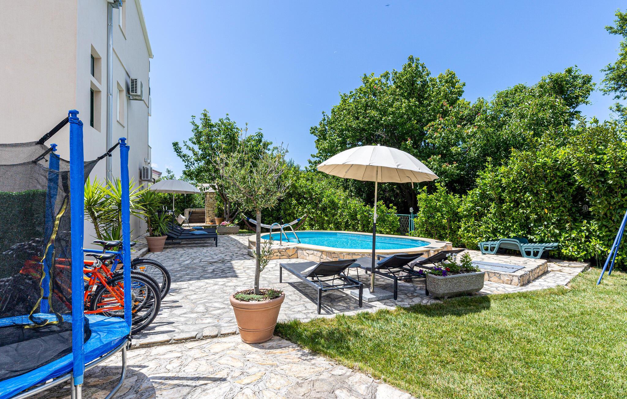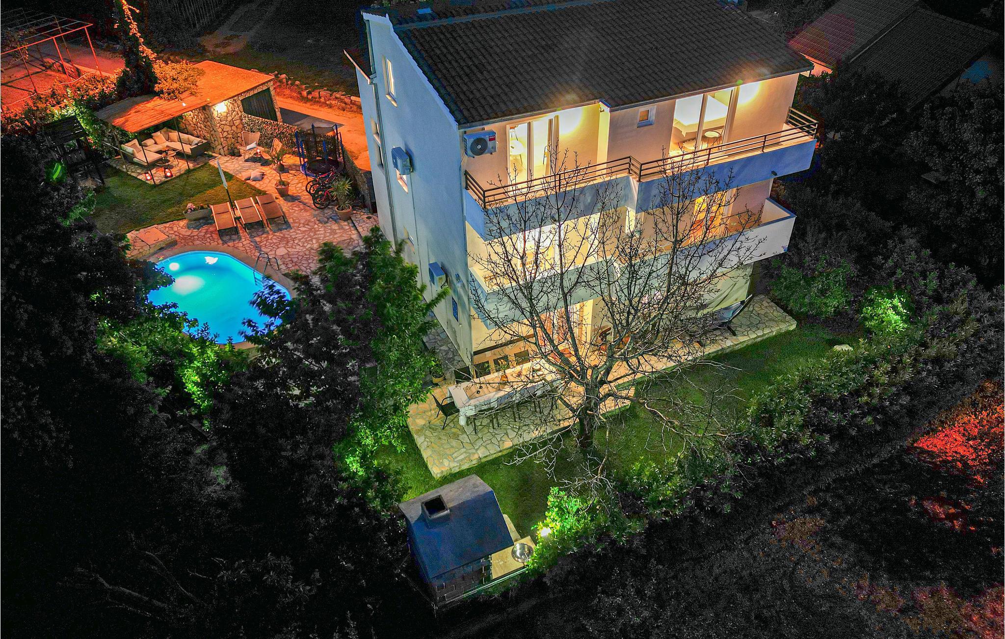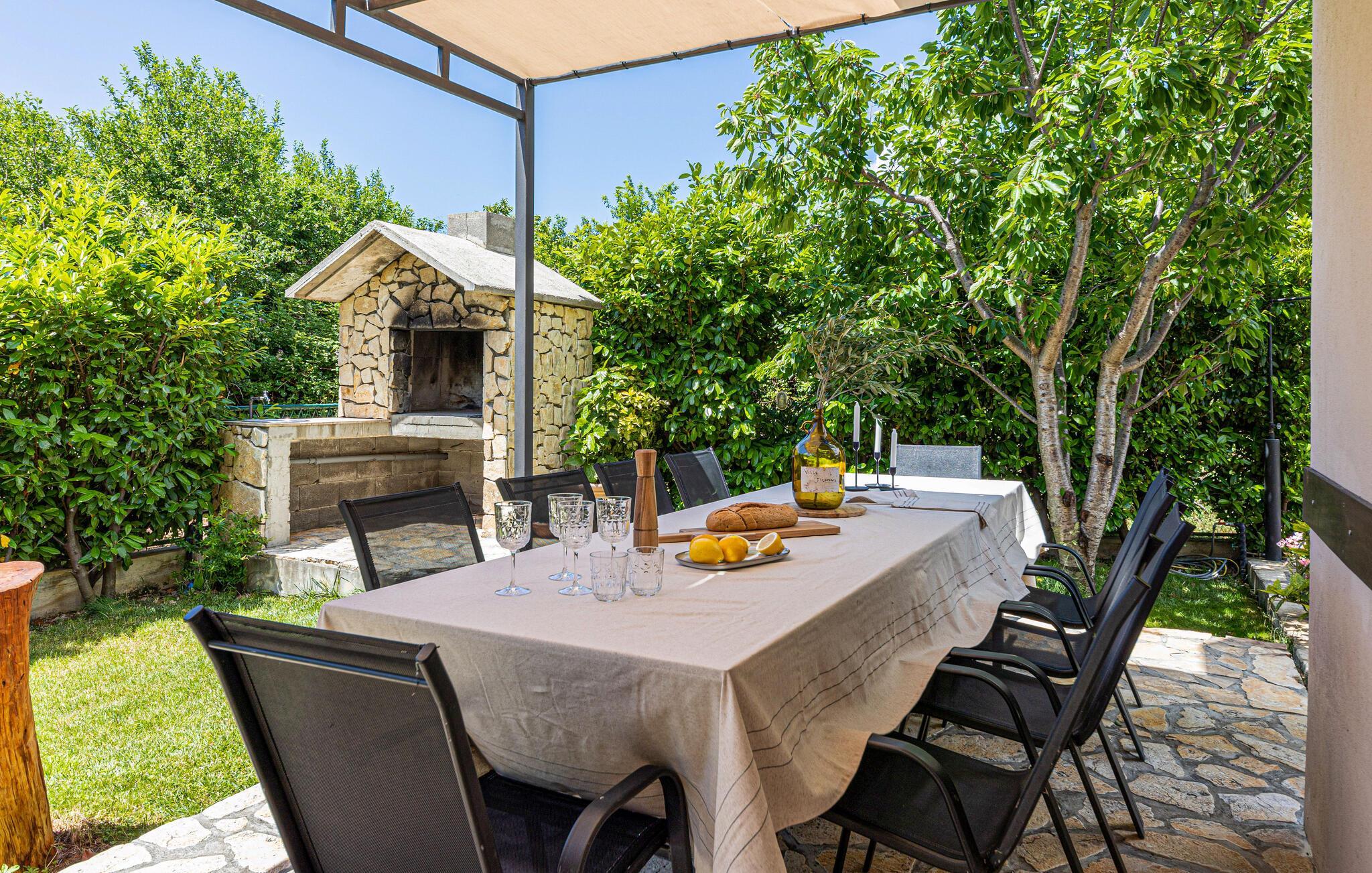 Entspannen Sie sich von der Hektik des Alltags in diesem elegant eingerichteten Ferienhaus in der kleinen Ortschaft Žrnovnica. Die natürliche Umgebung sowie die vielen Pflanzen im Garten tragen zur erholsamen Urlaubsstimmung bei. In etwa 200 Metern Entfernung gibt es eine Bushaltestelle und einen Wanderweg am Fluss Žrnovnica, der bis nach Stobrec führt. Erfrischen Sie sich im Pool oder fahren Sie mit dem Auto zu dem nächsten Badestrand. Liebhaber der aktiven Erholung finden in wenigen Kilometern Entfernung einen Golfplatz und Tennisplätze. Oder wagen Sie sich auf eine Bergwanderung zum Gipfel des Perun.