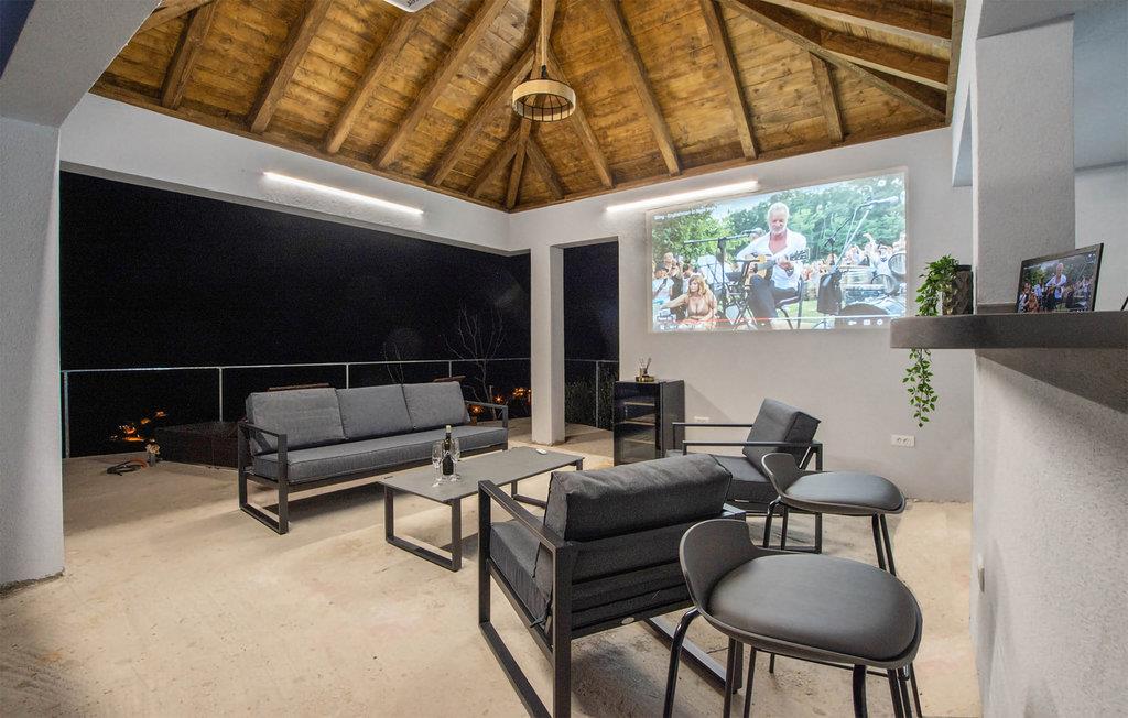 Am Pool gibt es eine neuen Loungebereich zum Entspannen, mit überdachter Terrasse mit Kühlschrank, Waschbecken, Bar mit Stühlen, Beamer, Lautsprechern, gemütlicher Outdoor-Beleuchtung und angenehmen Sitzgelegenheiten. Hier können Sie in schöner Privatsphäre wunderbare Tage verbringen.