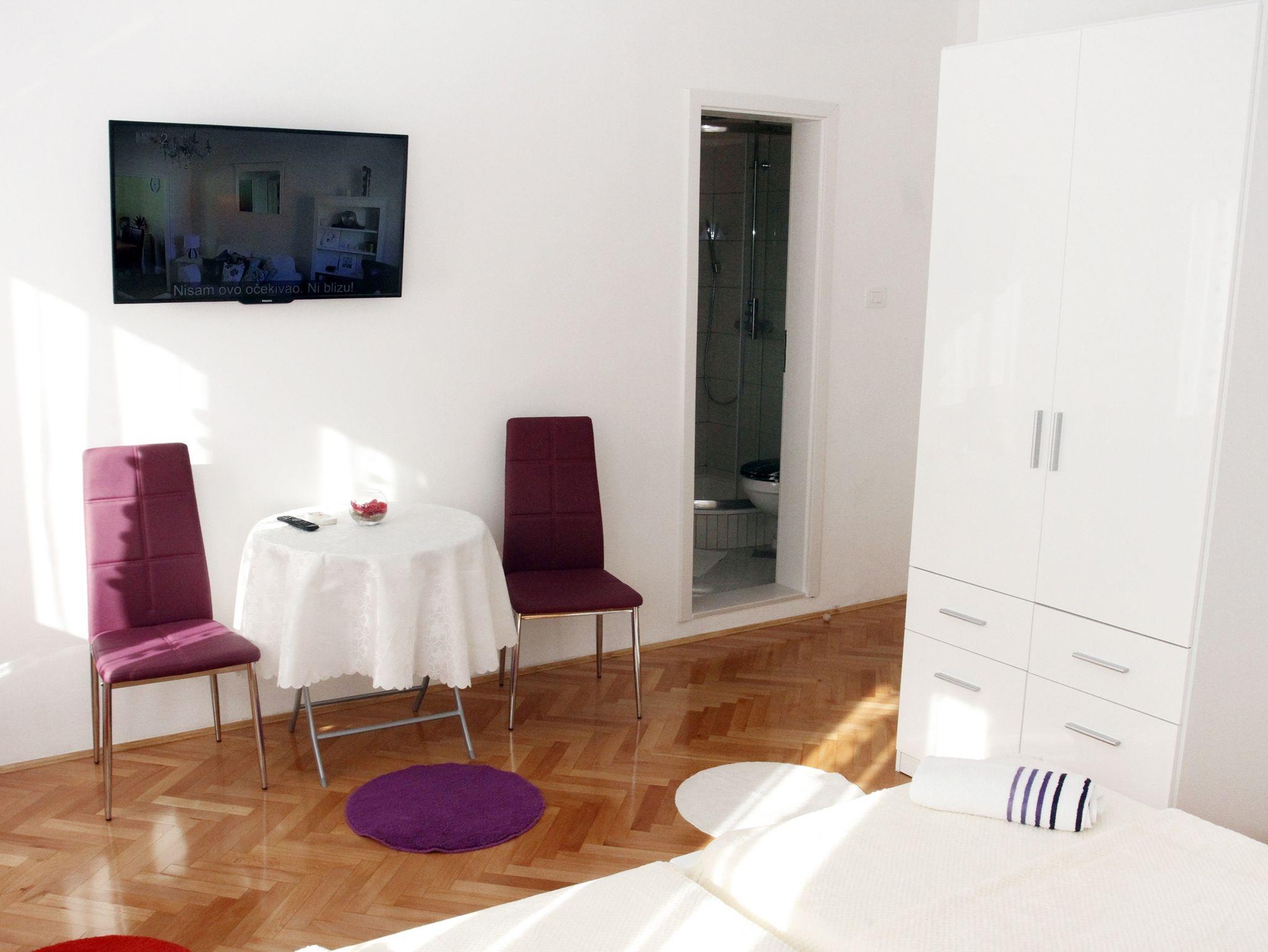 Zimmer bietet Platz für 2 Gäste. Die Betten sind in Schlafzimmern, die es 1 gibt, innerhalb einer Gesamtfläche von 19m2, angeordnet. Die Nutzung einer gemeinsamen Küche ist möglich. Die reservierte Unterkunftseinheit ist ein Zimmer mit eigenem Badezimmer mit der Möglichkeit der Nutzung einer Küche ohne Zuzahlung. Die reservierte Unterkunftseinheit verfügt über einen gemeinsamen Balkon. IM PREIS INBEGRIFFEN: Kurtaxe, Endreinigung, Klimatisierung, gemeinsame Küche, Internet, Kinderbett, Bügeleisen, Bügelbrett, Föhn. Die Verfügbarkeit zusätzlicher Dienstleistungen in Ihrem reservierten Termin und die Preise derselben (falls nicht aufgeführt) müssen im Voraus überprüft werden. Zusätzliche Dienstleistungen die in der Zahlungsaufforderung nicht aufgeführt sind werden direkt beim Vermieter bezahlt, angenommen der Gast nutzt auch diese.