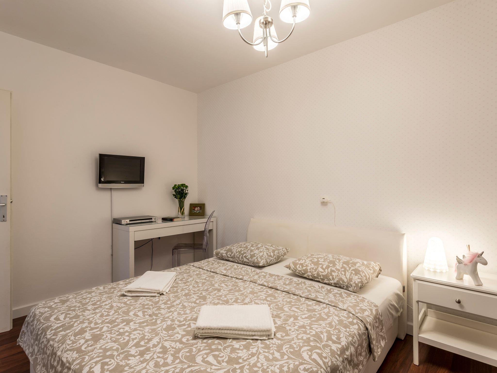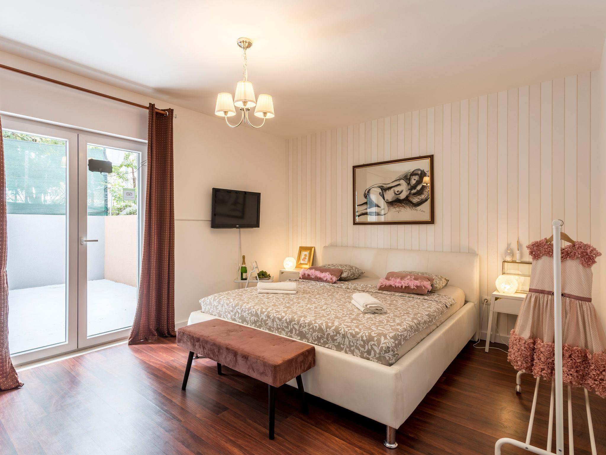 Ferienwohnung bietet Platz für 4 Gäste. Die Betten sind in Schlafzimmern, die es 3 gibt, innerhalb einer Gesamtfläche von 76m2, angeordnet. Die Gäste haben eine eigene Terrasse zur Verfügung, auf der sie in warmen Sommernächten genießen können. Für vollen Genuss und Entspannung gibt es einen privaten Grill für Gäste dieser Unterkunft. Während ihres Aufenthalts können sich Gäste im privaten Schwimmbad entspannen. In der Unterkunftseinheit besteht die Möglichkeit des Mitbringens von Haustieren, und die Dienstleistung ist im Preis der Unterkunft enthalten. IM PREIS INBEGRIFFEN: Kurtaxe, Endreinigung, Klimatisierung, Pool, Parkplatz, Internet, Haustiere, Kinderbett, Bügeleisen, Bügelbrett, Föhn. VERBINDLICHE ZUSÄTZLICHE KOSTEN: Aufzahlung für Kurzaufenthalte (prozentualer Zuschlag pro Nächtigungsanzahl: 30% - 1, 20% - 2, 10% - 3). Die Verfügbarkeit zusätzlicher Dienstleistungen in Ihrem reservierten Termin und die Preise derselben (falls nicht aufgeführt) müssen im Voraus überprüft werden. Zusätzliche Dienstleistungen die in der Zahlungsaufforderung nicht aufgeführt sind werden direkt beim Vermieter bezahlt, angenommen der Gast nutzt auch diese.