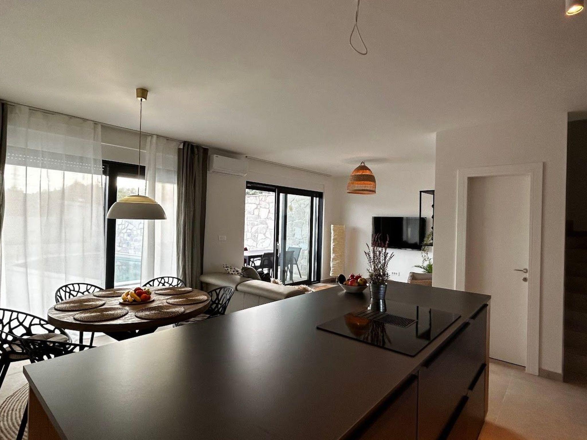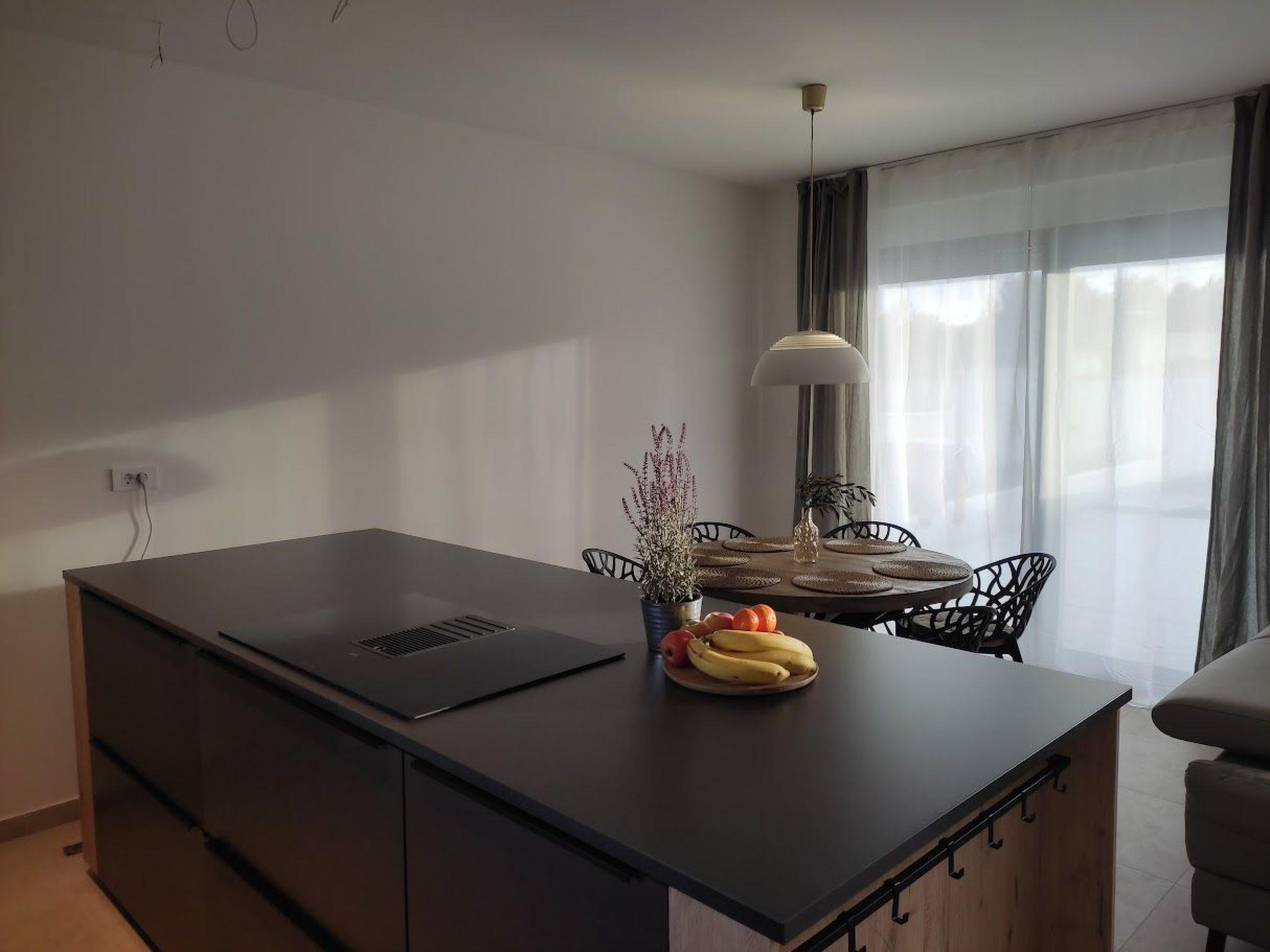 Im Inneren der Villa befindet sich ein geräumiges Wohnzimmer, das durch eine voll ausgestattete Küche und ein Esszimmer ergänzt wird und für eine gemütliche Atmosphäre sorgt. Die Gäste finden drei geschmackvoll eingerichtete Schlafzimmer vor, die bis zu sechs Personen einen erholsamen Schlaf bieten. Die Villa ist mit zwei modernen Badezimmern und einer praktischen Gästetoilette ausgestattet, die den Komfort und die Privatsphäre Ihres Aufenthalts erhöhen. Die Klimaanlage in der gesamten Villa sowie Extras wie eine Kaffeemaschine mit Kapseln/Pods, ein Geschirrspüler, ein Wasserkocher und ein Mini-Backofen sorgen dafür, dass alle Bedürfnisse mit Raffinesse erfüllt werden.