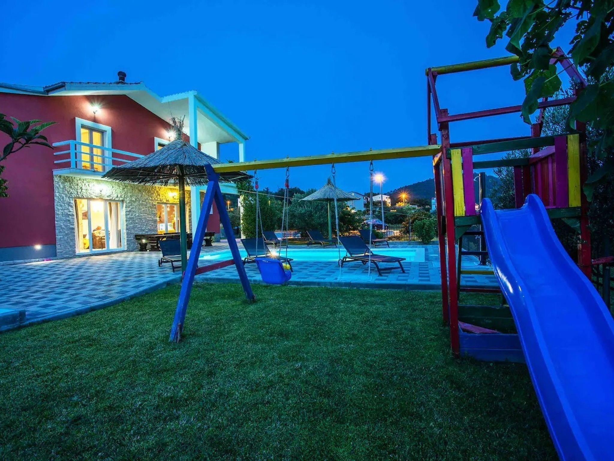 Hof (700m2, Kinderbereich, Sitzbereich), Parkplatz (Anzahl der Parkplätze: 5, Entfernung vom Objekt: im Hof), Pool: privat, Dimensionen: 8m x 4m x 1.6m, Wassertyp: Süßwasser, WiFi Internet, Fahrrad (Anzahl: 2), Föhn, Bügeleisen, Bügelbrett, Sonnenschirm, Liegestühle, Kinderbett