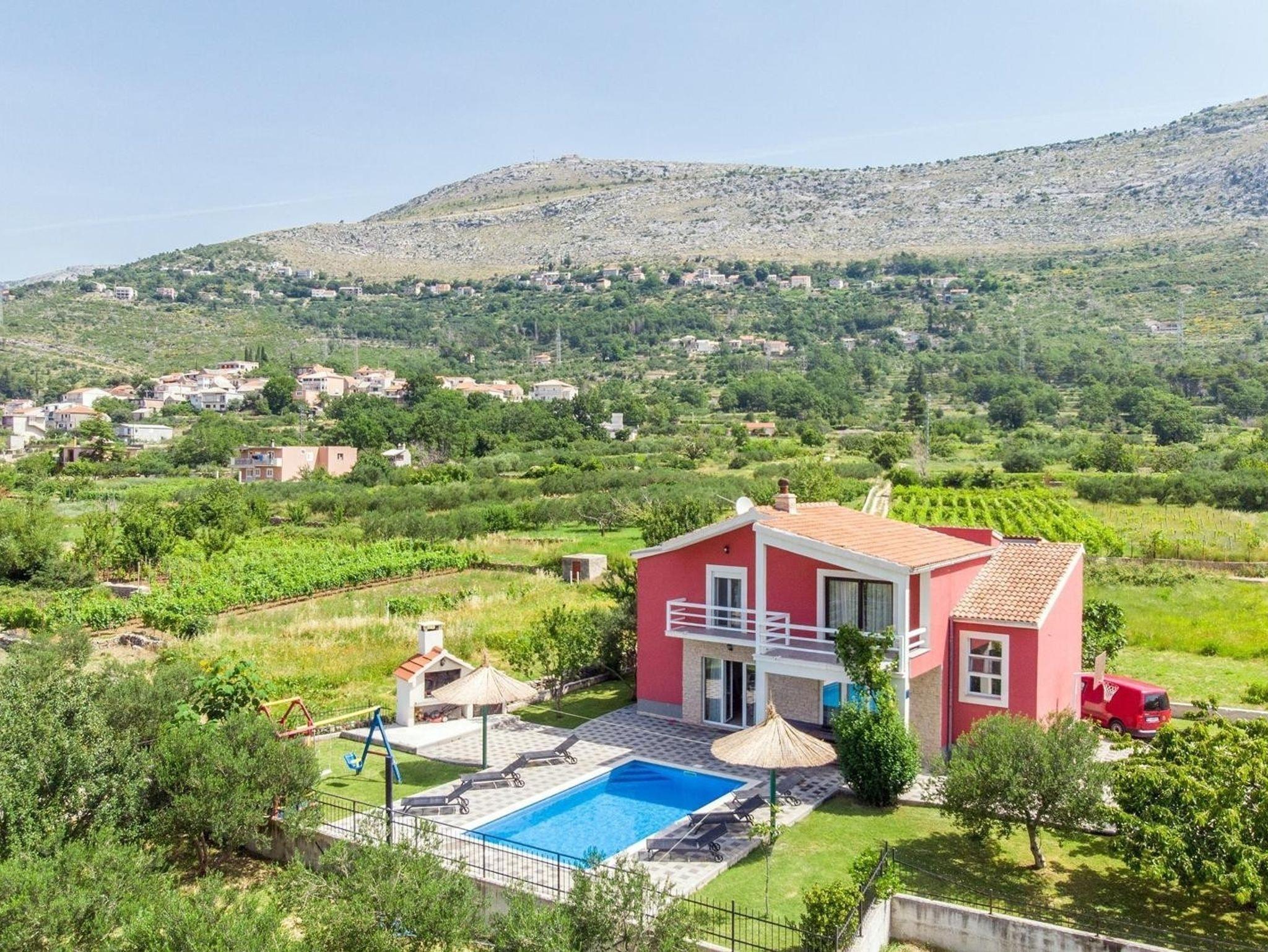 Haus 23950 im Ort Srinjine, Split - Mitteldalmatien ist 9 km vom Meer entfernt. Der nächste Strand zu dieser Unterkunft ist ein Kiesstrand. Dieses Haus befindet sich in der Kategorie Objekte mit Schwimmbad. Da sich, außer Ihrer, keine weitere Unterkunftseinheit im Objekt befindet, können Sie Ihren Urlaub in Ruhe und in Gesellschaft Ihrer Nächsten verbringen. Während Ihres Aufenthalts werden die Hausbesitzer nicht im Objekt wohnen. Der Eigentümer ist nicht verpflichtet, zusätzliche unangemeldete Personen und Haustiere zu akzeptieren. Sie sollten im Voraus bekannt gegeben werden. INHALT