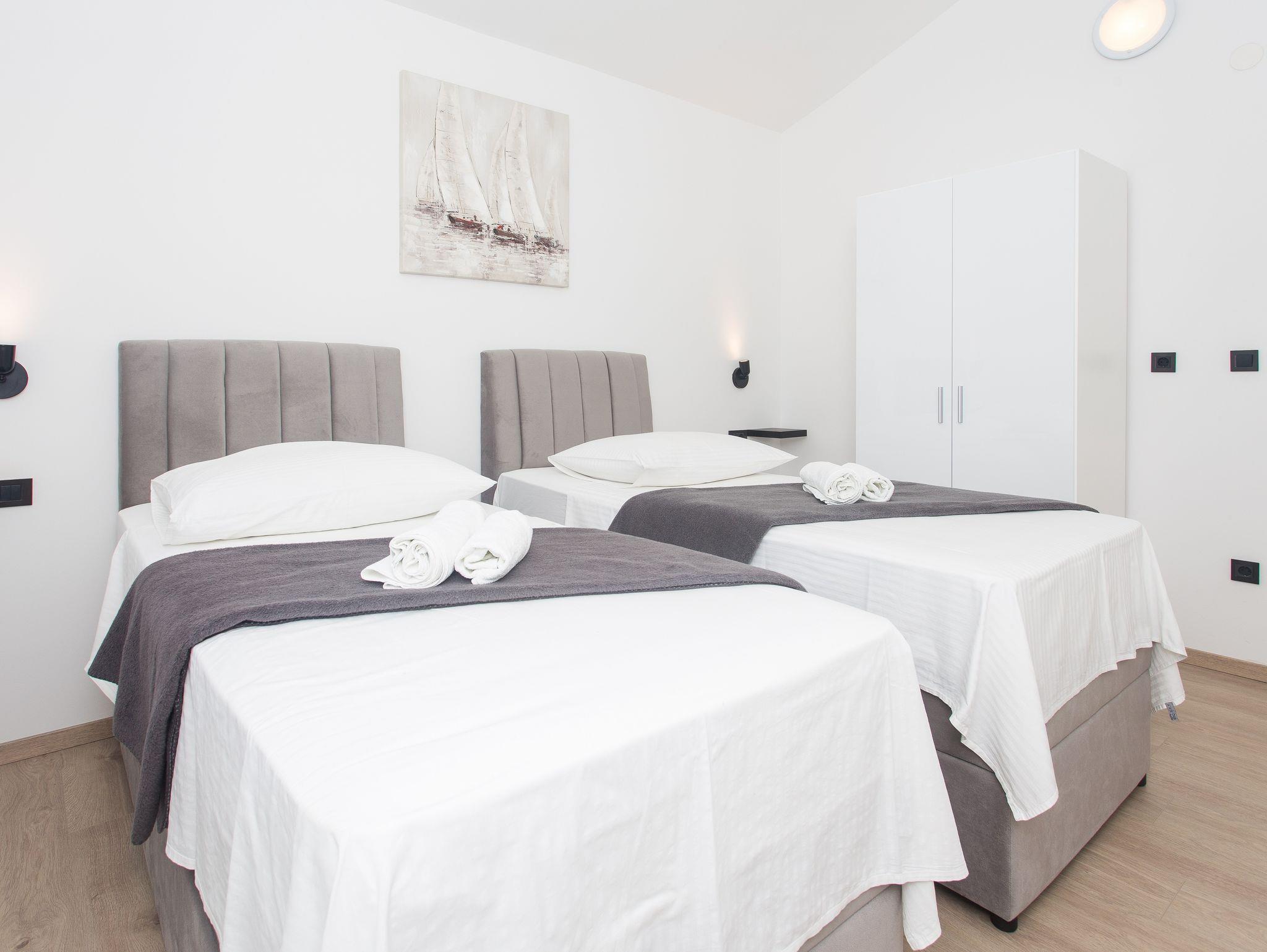 Haus bietet Platz für 10 Gäste. Die Betten sind in Schlafzimmern, die es 5 gibt, innerhalb einer Gesamtfläche von 184m2, angeordnet. Die Gäste haben eine eigene Terrasse zur Verfügung, auf der sie in warmen Sommernächten genießen können. Für vollen Genuss und Entspannung gibt es einen privaten Grill für Gäste dieser Unterkunft. Während ihres Aufenthalts können sich Gäste im privaten Schwimmbad entspannen. IM PREIS INBEGRIFFEN: Kurtaxe, Endreinigung, Klimatisierung, Pool, Parkplatz, Internet, Kinderbett, Bügeleisen, Bügelbrett, Föhn. Die Verfügbarkeit zusätzlicher Dienstleistungen in Ihrem reservierten Termin und die Preise derselben (falls nicht aufgeführt) müssen im Voraus überprüft werden. Zusätzliche Dienstleistungen die in der Zahlungsaufforderung nicht aufgeführt sind werden direkt beim Vermieter bezahlt, angenommen der Gast nutzt auch diese.