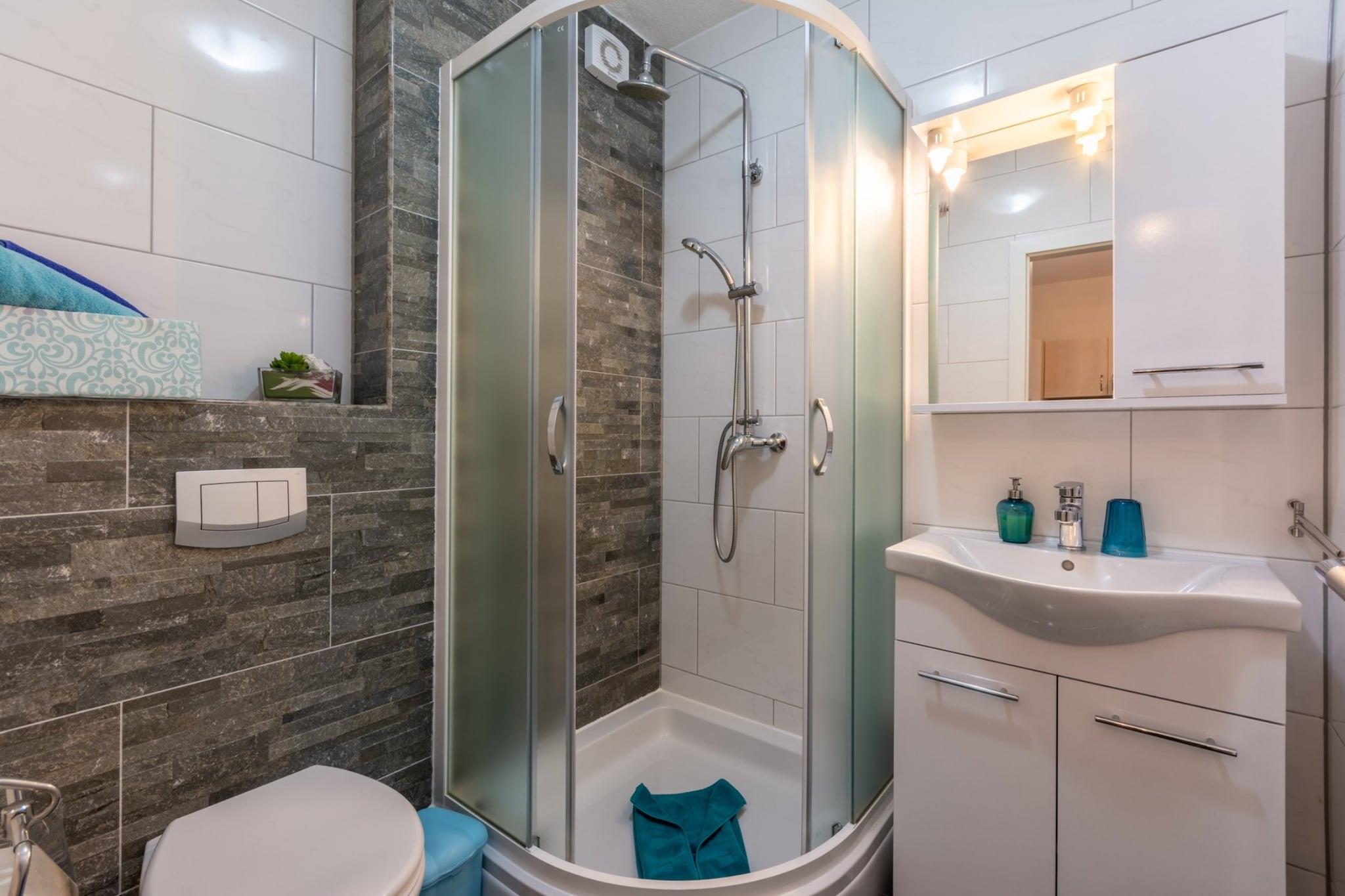 Apartments Palma offer self-catering accommodation units located in quite little place Stanici, near Omiš. Common furnished terrace as well as BBQ facilities are at your disposal. Free parking is provided, reservation is not required. Luggage storage is possible prior check in and after check out, so you can explore the city a little more before departure. From the main road to the accommodation there is a little hill (approx. 100 m ). This lovely studio with furnished balcony is perfectly fit for up to three people. It features free WiFi, air conditioning and SAT LCD TV, as well as a equipped kitchenette and dining table. The apartment has a private bathroom with shower and toilet. Baby cot and hair dryer are at your disposal. Apartments Palma are only 5.8 kilometers away from Omiš, town and port in Dalmatia region of Croatia. Grocery store, restaurants, bar and bus station are within 100 m range, while the nearest beach is only 500 m from the accommodation. Whatever direction you drive in from Omiš, it’s just a matter of minutes when you’ll be reaching a famous tourist destination. Less than 25 kilometers north-west of Omiš lies Split, with its more than 1700 years old Emperor Diocletian’s Palace, and just 20 minutes further in the same direction you’ll find the town of Trogir, a living museum of sorts and one of the few towns in the world with its entire historic city inscribed on the UNESCO’s World Heritage List. Driving further along the coast, you’ll reach two other popular holiday destinations, the cities of Šibenik and Zadar, and in the hinterland of Šibenik you can visit one of the top one-day tour destinations in Dalmatia, the National park Krka, which is no more than a two-hour drive away from Omiš along the A1 motorway! Split Airport is 46 km away from the property.