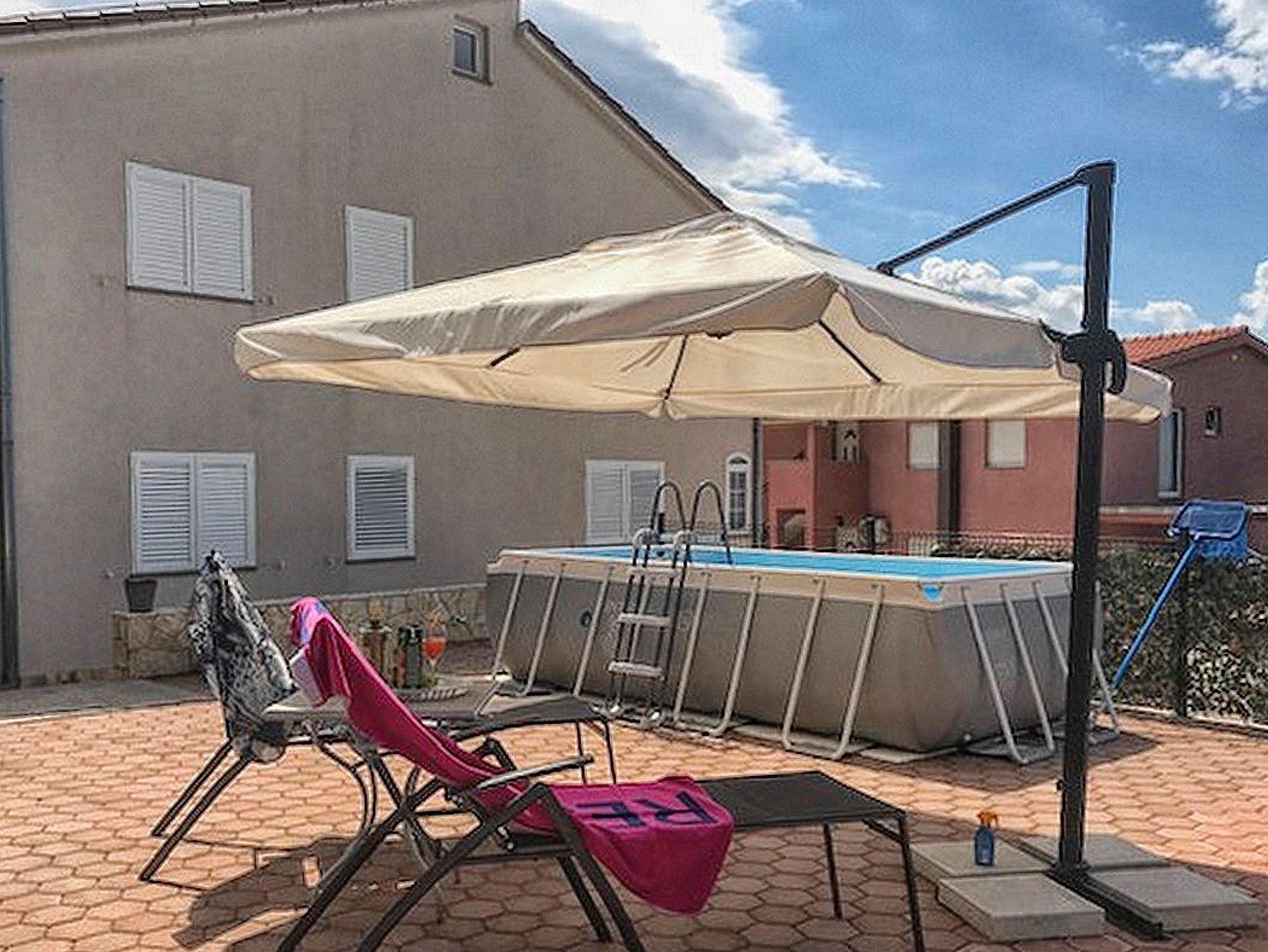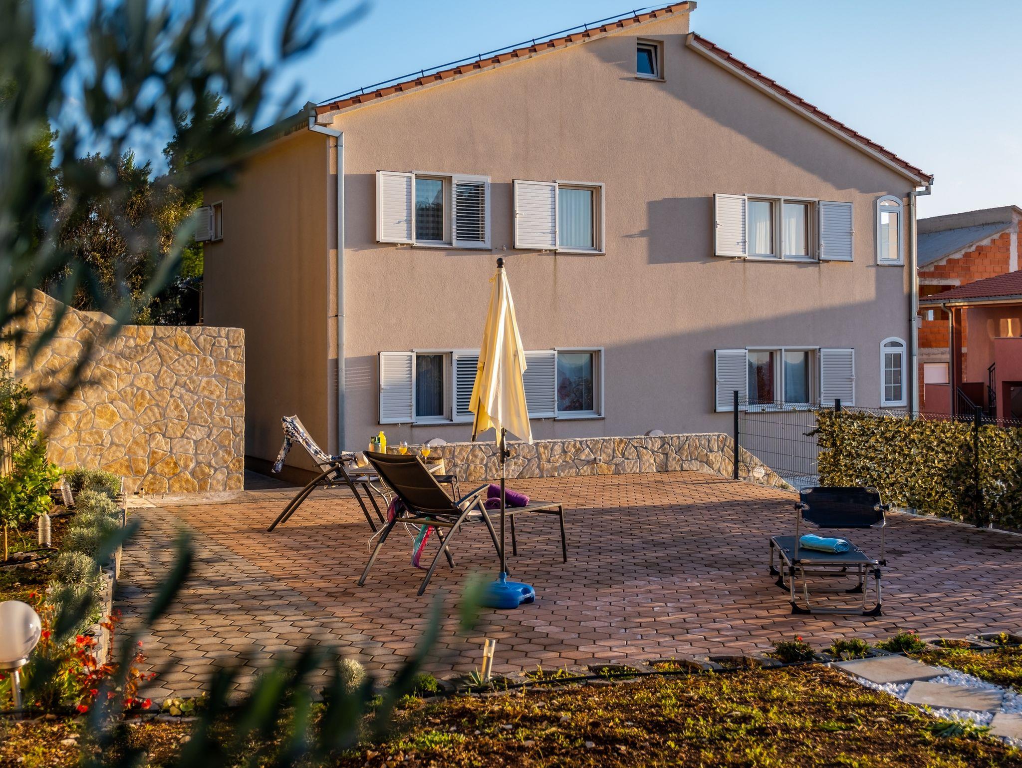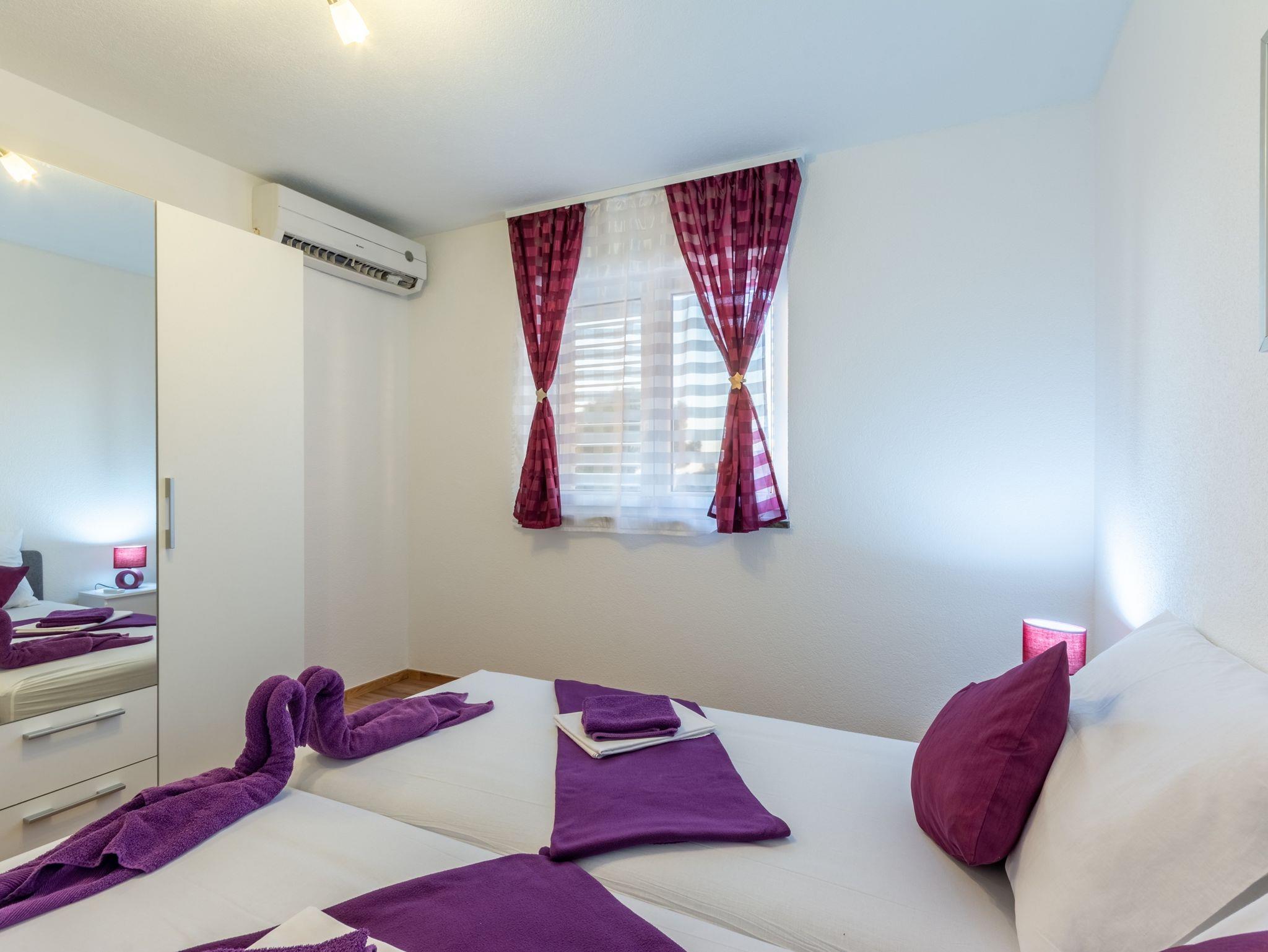 Ferienwohnung bietet Platz für 6 Gäste. Die Betten sind in Schlafzimmern, die es 2 gibt, und in Wohnzimmer, innerhalb einer Gesamtfläche von 75m2, angeordnet. Die Gäste haben eine eigene Terrasse zur Verfügung, auf der sie in warmen Sommernächten genießen können. Das Apartment bietet Meerblick. Es ist erlaubt, Speisen auf dem Gemeinschafts-Grill vorzubereiten. Während ihres Aufenthalts können Gäste das gemeinsam zur Nutzung stehende Schwimmbad benutzen. IM PREIS INBEGRIFFEN: Kurtaxe, Endreinigung, Klimatisierung, Pool, Parkplatz, Internet, Wäschewaschen, Kinderbett, Bügeleisen, Bügelbrett, Föhn, tragbarer Grill. VERBINDLICHE ZUSÄTZLICHE KOSTEN: Aufzahlung für Kurzaufenthalte (prozentualer Zuschlag pro Nächtigungsanzahl: 30% - 1, 20% - 2, 10% - 3). Die Verfügbarkeit zusätzlicher Dienstleistungen in Ihrem reservierten Termin und die Preise derselben (falls nicht aufgeführt) müssen im Voraus überprüft werden. Zusätzliche Dienstleistungen die in der Zahlungsaufforderung nicht aufgeführt sind werden direkt beim Vermieter bezahlt, angenommen der Gast nutzt auch diese. Ermäßigung auf den Grundpreis: Gratistag 14=13 (bei einem Aufenthalt von 14 Tagen oder mehr erhalten Sie einen Gratistag für den Aufenthalt bis 31.12.26).