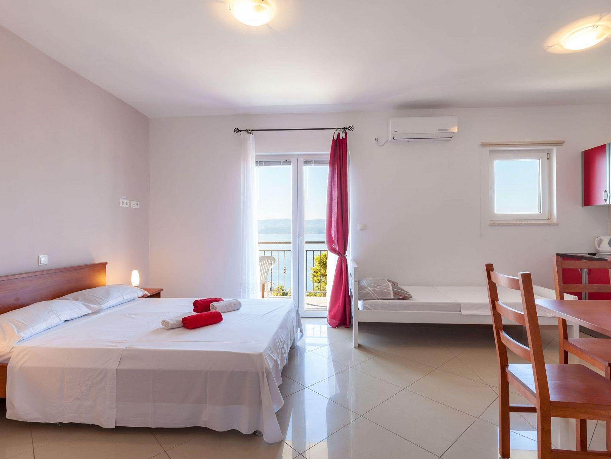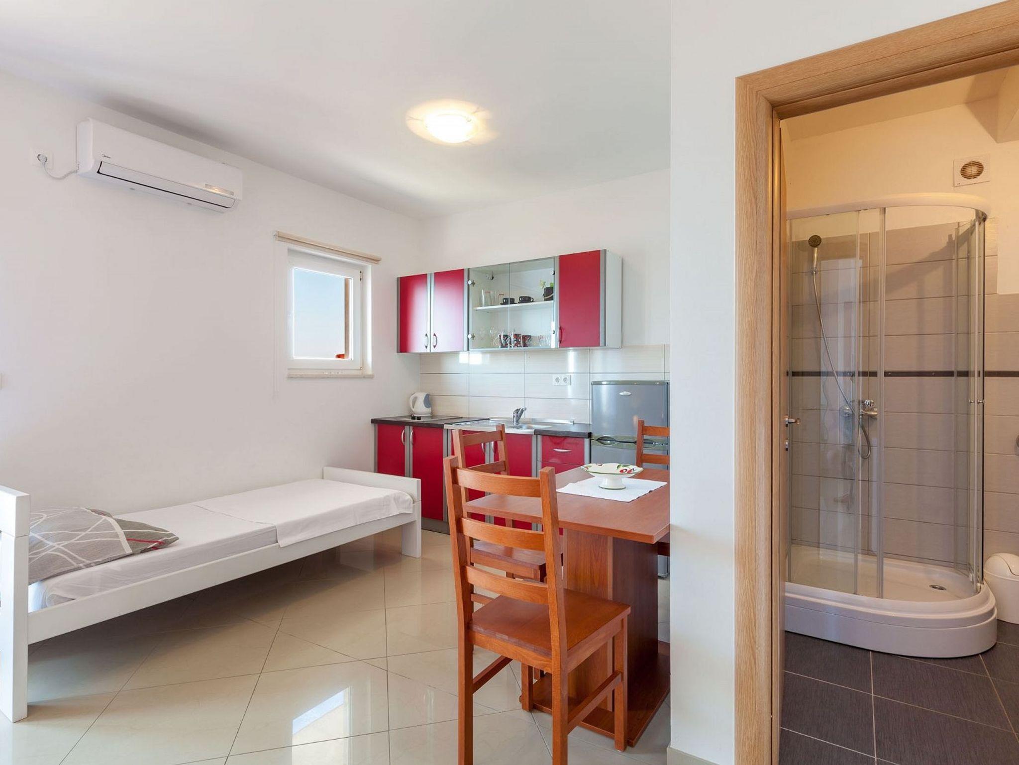 Studio bietet Platz für 3 Gäste. Die Betten sind in Schlafzimmern, die es 1 gibt, innerhalb einer Gesamtfläche von 26m2, angeordnet. Die Gäste haben einen eigenen Balkon zur Verfügung, auf der sie in warmen Sommernächten genießen können. Das Studio-Apartment bietet Meerblick. Es ist erlaubt, Speisen auf dem Gemeinschafts-Grill vorzubereiten. In der Unterkunftseinheit besteht die Möglichkeit des Mitbringens von Haustieren gegen Aufpreis. IM PREIS INBEGRIFFEN: Kurtaxe, Endreinigung, Klimatisierung, Parkplatz, Internet, Kinderbett, Bügeleisen, Bügelbrett, Föhn. VERBINDLICHE ZUSÄTZLICHE KOSTEN: Aufzahlung für Kurzaufenthalte (prozentualer Zuschlag pro Nächtigungsanzahl: 30% - 1, 20% - 2, 10% - 3). UNVERBINDLICHE ZUSÄTZLICHE KOSTEN: Wäschewaschen (5,00 € Waschen), Haustiere (5,00 € pro Nacht). Die Verfügbarkeit zusätzlicher Dienstleistungen in Ihrem reservierten Termin und die Preise derselben (falls nicht aufgeführt) müssen im Voraus überprüft werden. Zusätzliche Dienstleistungen die in der Zahlungsaufforderung nicht aufgeführt sind werden direkt beim Vermieter bezahlt, angenommen der Gast nutzt auch diese.