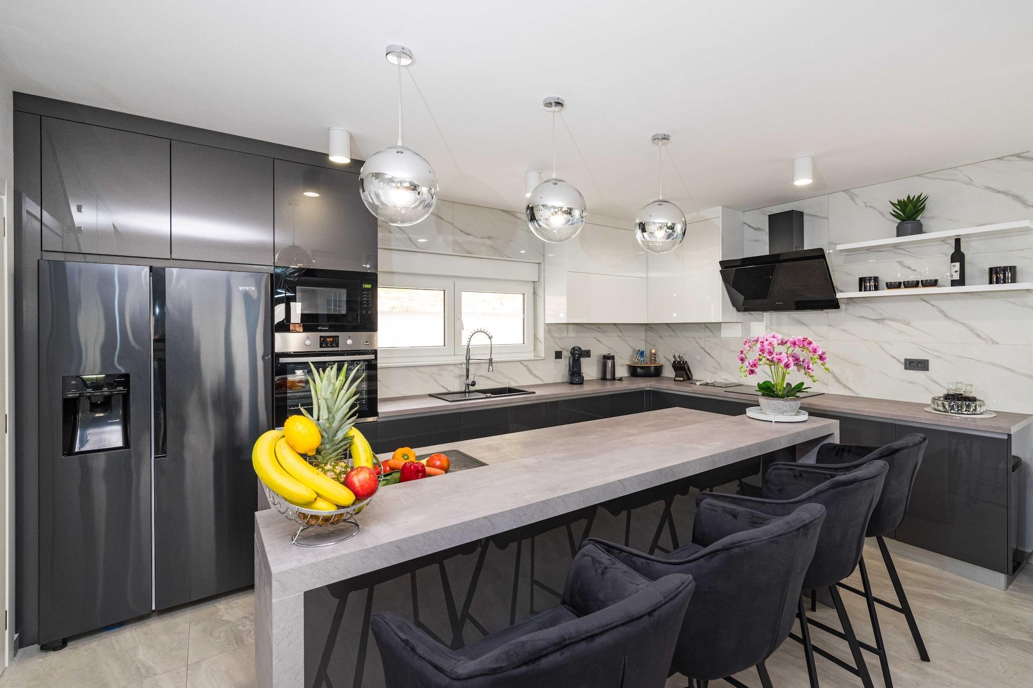 Dieses elegante Ferienhaus liegt im ruhigen Dorf Stankovci, nur 14 km vom nächsten Strand entfernt, und bietet die perfekte Mischung aus Komfort, Privatsphäre und modernem Luxus. Umgeben von einer wunderschönen Landschaft verfügt die Villa über einen großen privaten Swimmingpool, einen einladenden Whirlpool und einen Panoramablick auf die grüne Landschaft. Sie ist ideal für Familien oder eine Gruppe von Freunden und bietet Platz für bis zu 8 Gäste in stilvoller und ruhiger Umgebung. Die 300 m² große Villa erstreckt sich über zwei Etagen und kombiniert elegantes, zeitgenössisches Design mit hochwertiger Ausstattung. Das Erdgeschoss umfasst einen geräumigen Wohn- und Essbereich mit viel Tageslicht, eine voll ausgestattete offene Küche und Zugang zu einer überdachten Terrasse mit Essbereich, der sich perfekt für Mahlzeiten im Freien eignet. Im Obergeschoss befinden sich vier klimatisierte Schlafzimmer mit Flachbildfernsehern, darunter eine Master-Suite mit eigenem Bad und begehbarem Kleiderschrank. Insgesamt gibt es drei moderne Badezimmer sowie eine Waschküche und Gästetoiletten. Im Außenbereich können sich die Gäste am großen Pool entspannen, im Whirlpool relaxen oder in der charmanten Taverne mit zweiter Küche, Grill und Sitzbereich speisen. Der umzäunte Garten bietet außerdem Sonnenliegen, Fahrräder und einen Kinderspielplatz und ist somit ideal für Entspannung und Erholung. Mit dem Nationalpark Krka, dem Naturpark Vrana-See und der Küstenstadt Pirovac, die alle nur eine kurze Autofahrt entfernt liegen, bietet diese Villa den perfekten Ausgangspunkt, um die Landschaft, die Küste und die Kultur Dalmatiens zu erkunden und dabei luxuriösen Komfort zu genießen.