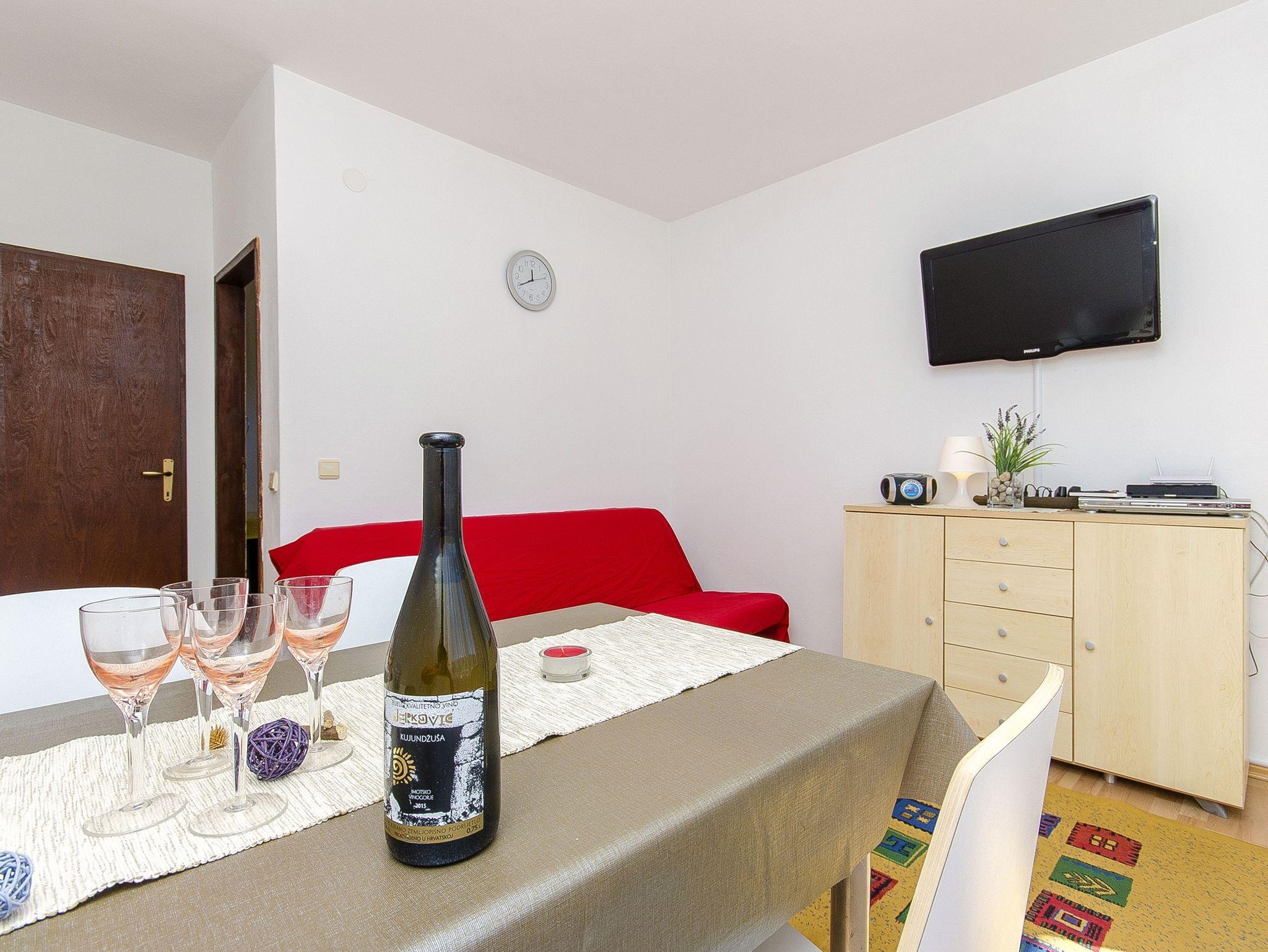 Ferienwohnung bietet Platz für 6 Gäste. Die Betten sind in Schlafzimmern, die es 3 gibt, innerhalb einer Gesamtfläche von 64m2, angeordnet. Die Gäste haben einen eigenen Balkon zur Verfügung, auf der sie in warmen Sommernächten genießen können. Das Apartment bietet Meerblick. Für vollen Genuss und Entspannung gibt es einen privaten Grill für Gäste dieser Unterkunft. In der Unterkunftseinheit besteht die Möglichkeit des Mitbringens von Haustieren gegen Aufpreis. IM PREIS INBEGRIFFEN: Kurtaxe, Endreinigung, Klimatisierung, Parkplatz, Internet, Kinderbett, Bügeleisen, Bügelbrett, Föhn. VERBINDLICHE ZUSÄTZLICHE KOSTEN: Aufzahlung für Kurzaufenthalte (prozentualer Zuschlag pro Nächtigungsanzahl: 30% - 1, 20% - 2, 10% - 3). UNVERBINDLICHE ZUSÄTZLICHE KOSTEN: Haustiere (10,00 € pro Nacht). Die Verfügbarkeit zusätzlicher Dienstleistungen in Ihrem reservierten Termin und die Preise derselben (falls nicht aufgeführt) müssen im Voraus überprüft werden. Zusätzliche Dienstleistungen die in der Zahlungsaufforderung nicht aufgeführt sind werden direkt beim Vermieter bezahlt, angenommen der Gast nutzt auch diese.