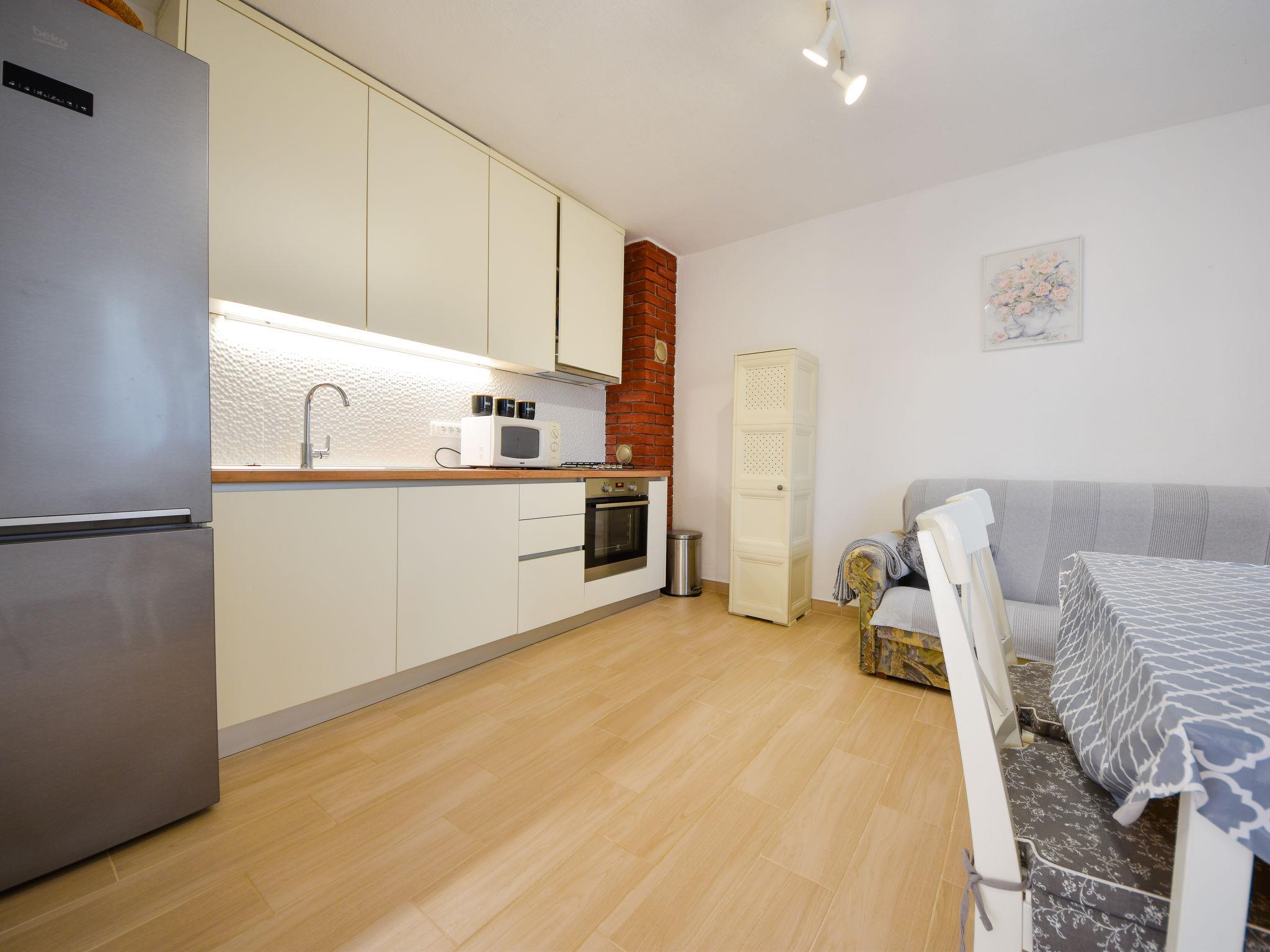 2-Zimmer-Wohnung 38 m2, im Erdgeschoss, Südwestlage. Renoviert im Jahre 2023: Wohn-/Esszimmer 22 m2 mit Sat-TV (Flachbildschirm), Klimaanlage. Ausgang zur Veranda. 1 Zimmer mit 1 Bett (90 cm, Länge 190 cm), 1 Doppelbett (2 x 90 cm, Länge 190 cm). Offene Küche (2 Kochplatten, Backofen, Gasherd, 2 Flammen, elektrische Kaffeemaschine). Bad/WC. Keine Heizmöglichkeit. Zur Verfügung: Waschmaschine.