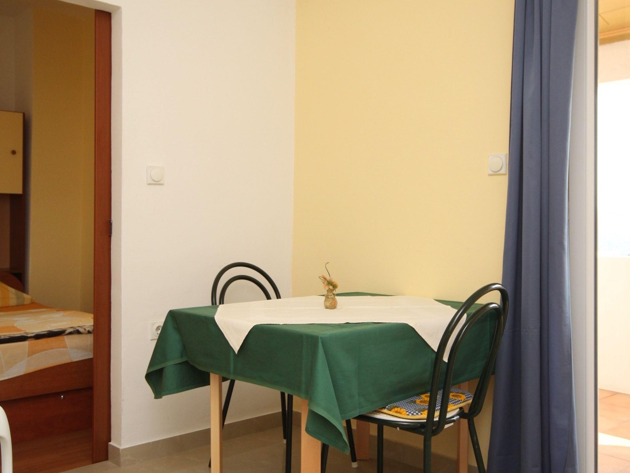 Ferienwohnung bietet Platz für 2 Gäste. Die Betten sind in Schlafzimmern, die es 1 gibt, innerhalb einer Gesamtfläche von 18m2, angeordnet. Die Gäste haben eine eigene Terrasse zur Verfügung, auf der sie in warmen Sommernächten genießen können. Das Apartment bietet Meerblick. Es ist erlaubt, Speisen auf dem Gemeinschafts-Grill vorzubereiten. IM PREIS INBEGRIFFEN: Kurtaxe, Endreinigung, Klimatisierung, Parkplatz, Internet, Wäschewaschen. VERBINDLICHE ZUSÄTZLICHE KOSTEN: Aufzahlung für Kurzaufenthalte (prozentualer Zuschlag pro Nächtigungsanzahl: 30% - 1, 20% - 2, 10% - 3). UNVERBINDLICHE ZUSÄTZLICHE KOSTEN: Frühstück (10,00 €, 50% Nachlass für Kinder zwischen 4 und 12 Jahren, Kinder bis 4 Jahre sind frei.), Halbpension (26,00 €, 50% Nachlass für Kinder zwischen 4 und 12 Jahren, Kinder bis 4 Jahre sind frei.), Zusatzbett (5,00 € pro Nacht). Die Verfügbarkeit zusätzlicher Dienstleistungen in Ihrem reservierten Termin und die Preise derselben (falls nicht aufgeführt) müssen im Voraus überprüft werden. Zusätzliche Dienstleistungen die in der Zahlungsaufforderung nicht aufgeführt sind werden direkt beim Vermieter bezahlt, angenommen der Gast nutzt auch diese.