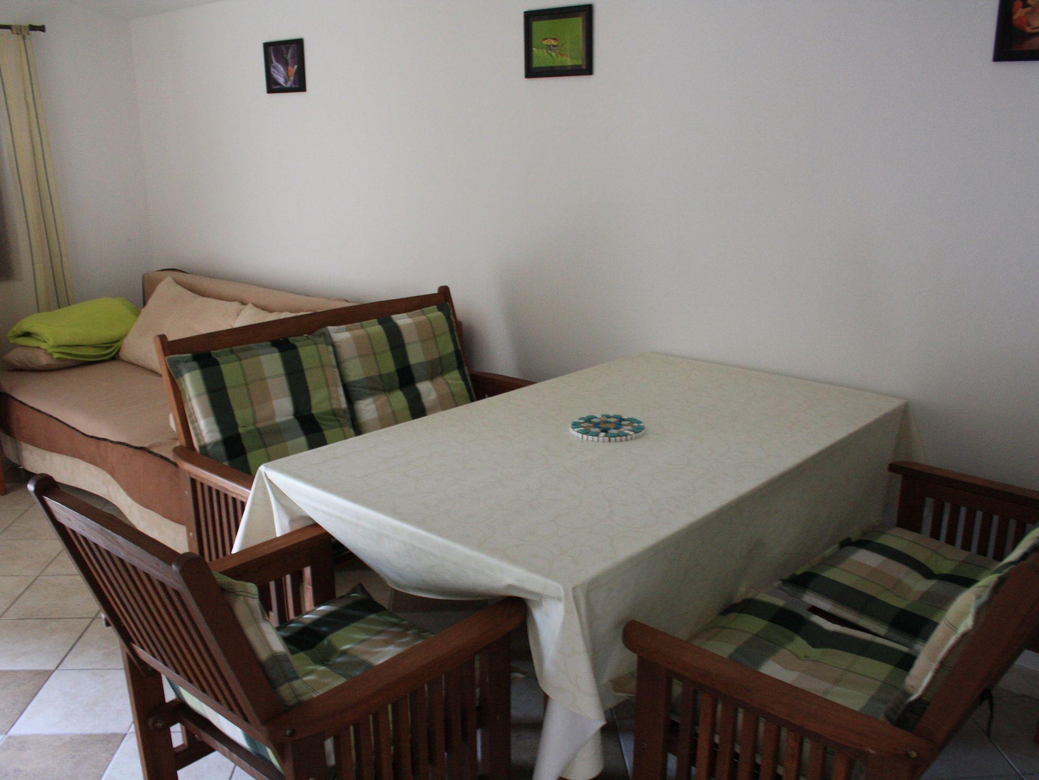 Ferienwohnung bietet Platz für 6 Gäste. Die Betten sind in Schlafzimmern, die es 2 gibt, und in Wohnzimmer, innerhalb einer Gesamtfläche von 60m2, angeordnet. Die Gäste haben eine eigene Terrasse zur Verfügung, auf der sie in warmen Sommernächten genießen können. Das Apartment bietet Meerblick. Es ist erlaubt, Speisen auf dem Gemeinschafts-Grill vorzubereiten. In der Unterkunftseinheit besteht die Möglichkeit des Mitbringens von Haustieren gegen Aufpreis. IM PREIS INBEGRIFFEN: Kurtaxe, Endreinigung, Klimatisierung, Parkplatz, Internet, Wäschewaschen, Kinderbett, Föhn, Liegestühle. VERBINDLICHE ZUSÄTZLICHE KOSTEN: Aufzahlung für Kurzaufenthalte (prozentualer Zuschlag pro Nächtigungsanzahl: 30% - 1, 20% - 2, 10% - 3). UNVERBINDLICHE ZUSÄTZLICHE KOSTEN: Haustiere (10,00 € pro Nacht). Die Verfügbarkeit zusätzlicher Dienstleistungen in Ihrem reservierten Termin und die Preise derselben (falls nicht aufgeführt) müssen im Voraus überprüft werden. Zusätzliche Dienstleistungen die in der Zahlungsaufforderung nicht aufgeführt sind werden direkt beim Vermieter bezahlt, angenommen der Gast nutzt auch diese. Ermäßigung auf den Grundpreis: Gratistag 14=13 (bei einem Aufenthalt von 14 Tagen oder mehr erhalten Sie einen Gratistag für den Aufenthalt bis 31.12.26).