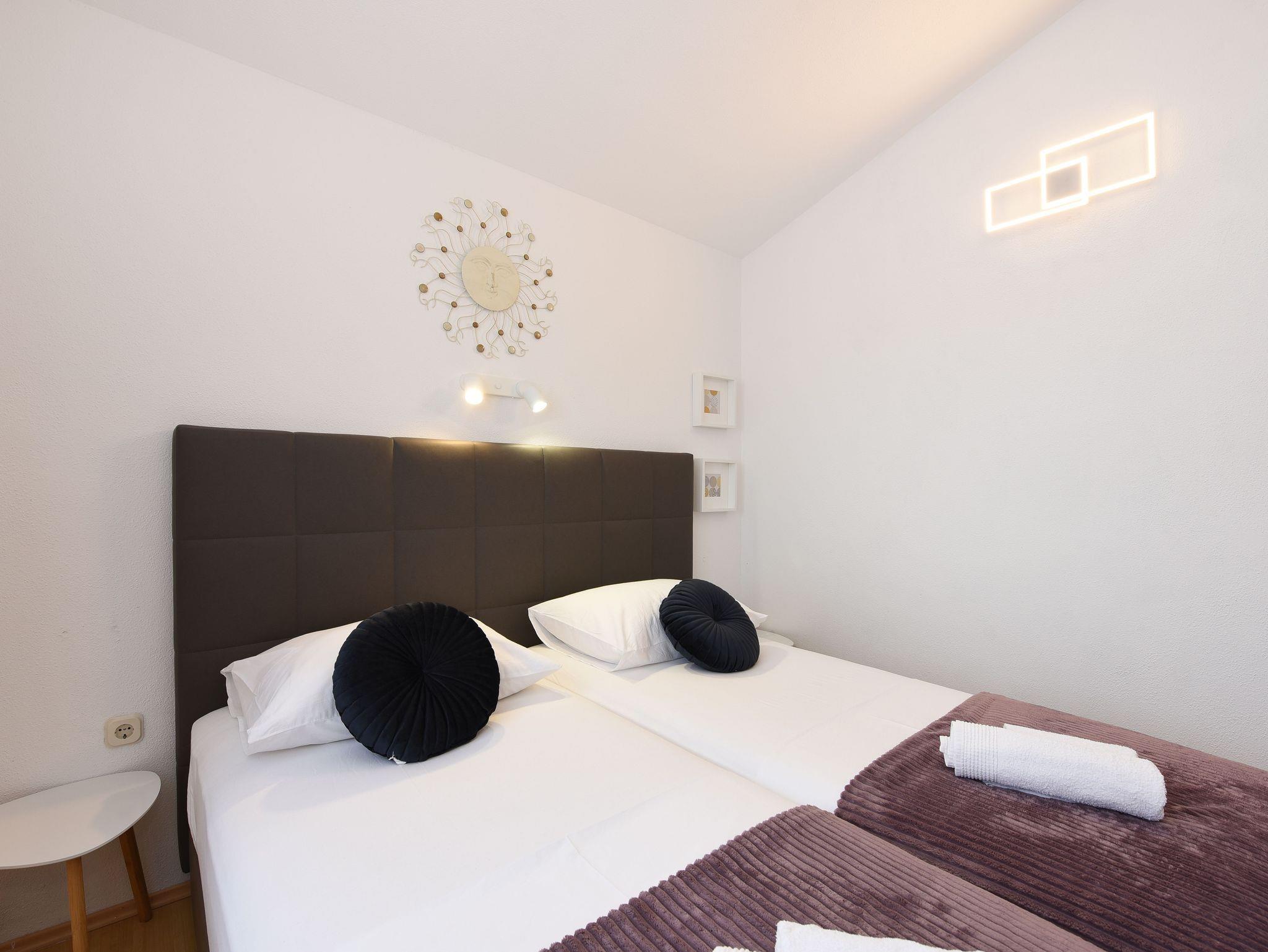Ferienwohnung bietet Platz für 4 Gäste. Die Betten sind in Schlafzimmern, die es 2 gibt, innerhalb einer Gesamtfläche von 41m2, angeordnet. Die Gäste haben einen eigenen Balkon zur Verfügung, auf der sie in warmen Sommernächten genießen können. Das Apartment bietet Meerblick. In der gebuchten Unterkunftseinheit zahlt man am Ort ein Depositum ( der Preis ist an der Internetseite angeführt ). IM PREIS INBEGRIFFEN: Kurtaxe, Endreinigung, Klimatisierung, Zentralheizung, Parkplatz, Internet, Kinderbett, Bügeleisen, Föhn. VERBINDLICHE ZUSÄTZLICHE KOSTEN: Kaution (200,00 € Einmalzahlung), Aufzahlung für Kurzaufenthalte (prozentualer Zuschlag pro Nächtigungsanzahl: 30% - 1, 20% - 2, 10% - 3). Die Verfügbarkeit zusätzlicher Dienstleistungen in Ihrem reservierten Termin und die Preise derselben (falls nicht aufgeführt) müssen im Voraus überprüft werden. Zusätzliche Dienstleistungen die in der Zahlungsaufforderung nicht aufgeführt sind werden direkt beim Vermieter bezahlt, angenommen der Gast nutzt auch diese.