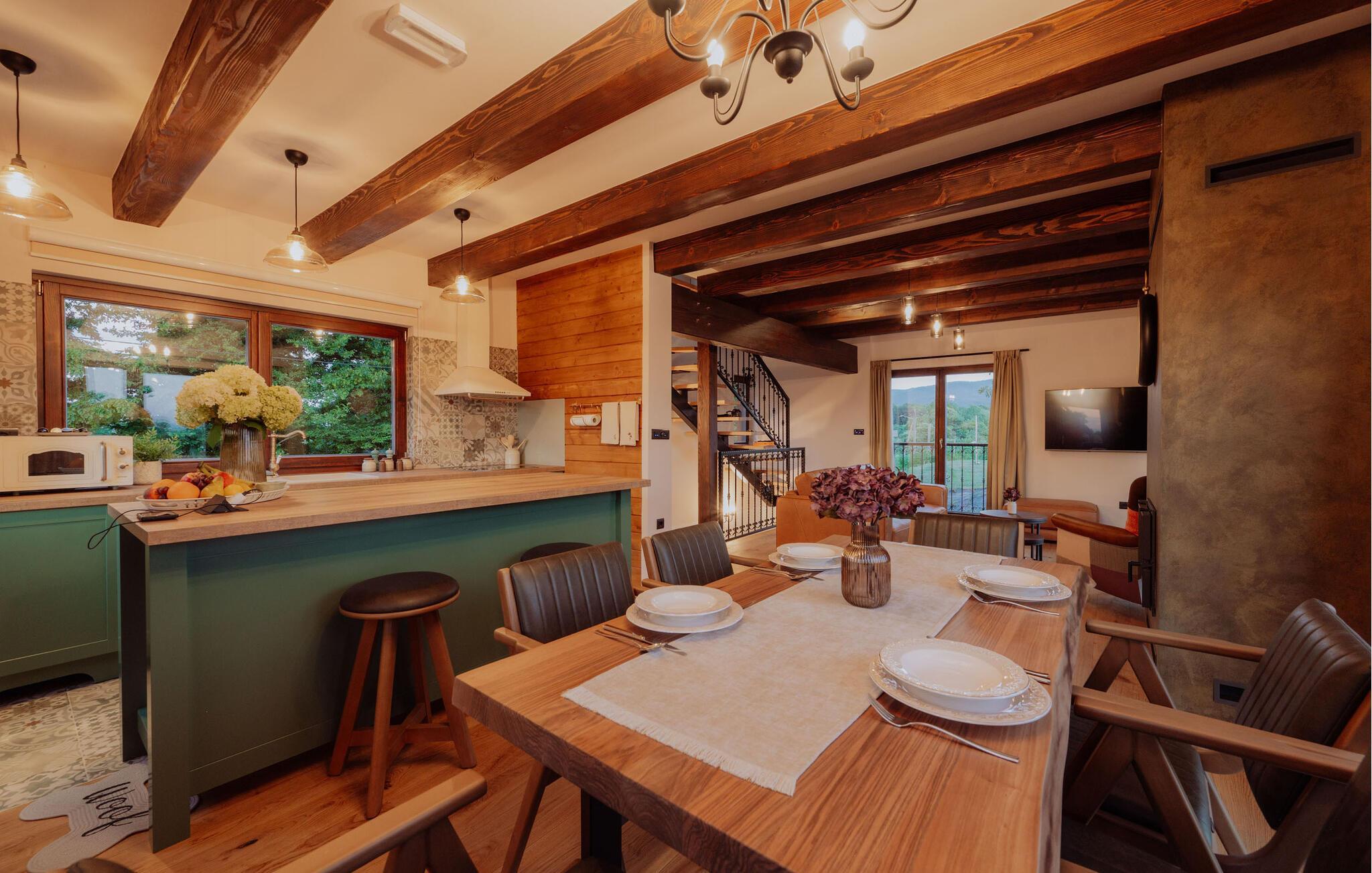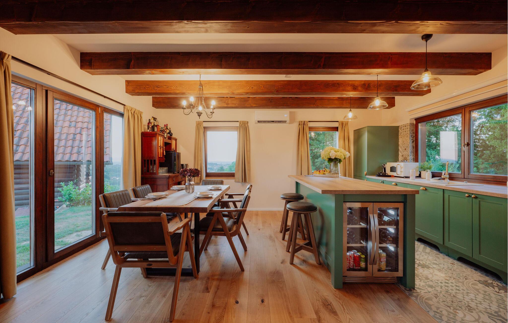 In erhabener Lage auf einem Hügel im Herzen von Zagorje erwartet Sie diese Villa umgeben von Weinbergen oberhalb von Stubicke Toplice, im Naturpark Medvednica. Das hochwertige Interieur bietet zahlreiche moderne Extras und strahlt eine gemütliche Atmosphäre aus – ideal für stimmungsvolle Stunden mit Ihren Lieben. Die Villa bietet eine einzigartige Mischung aus Luxus, Natur und absoluter Privatsphäre – ideal für Familien, Paare oder Freundesgruppen, und ist ein Erlebnis für Gäste, die das Leben wirklich zu genießen wissen. Gönnen Sie sich wohlige Momente im Wellnessbereich, während sich andere an der PlayStation vergnügen, plaudern Sie bei einem Glas Wein im Wohnzimmer mit Kamin und Panoramablick auf Sljeme und Slowenien oder streamen Sie einen Film, der allen gefällt.