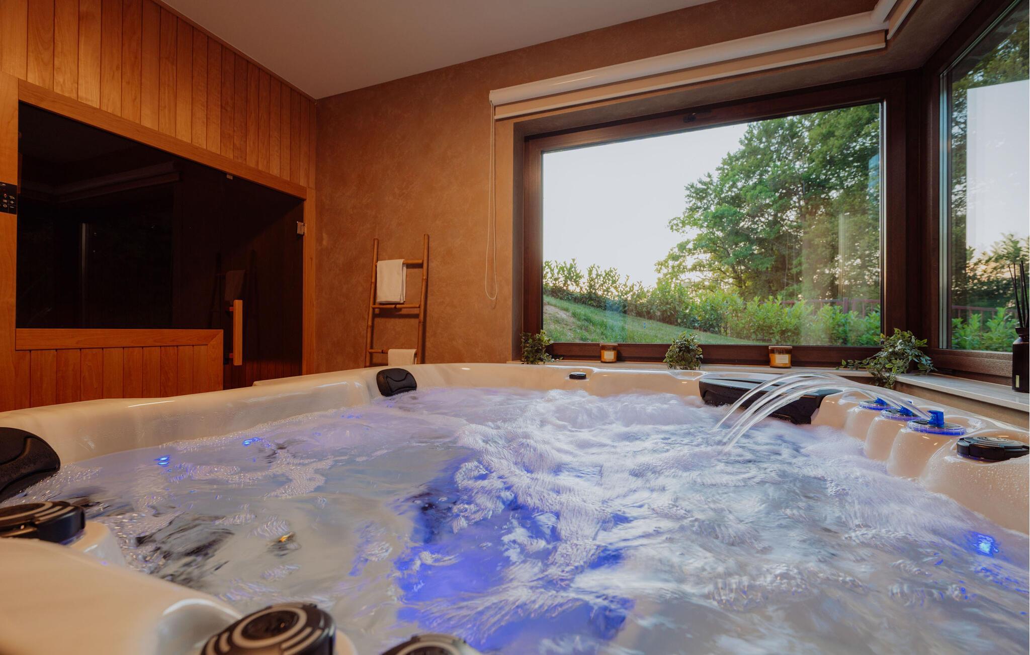 Genießen Sie einen erholsamen Urlaub in diesem luxuriösen und kinderfreundlichen Ferienhaus mit Pool, Whirlpool und Sauna.