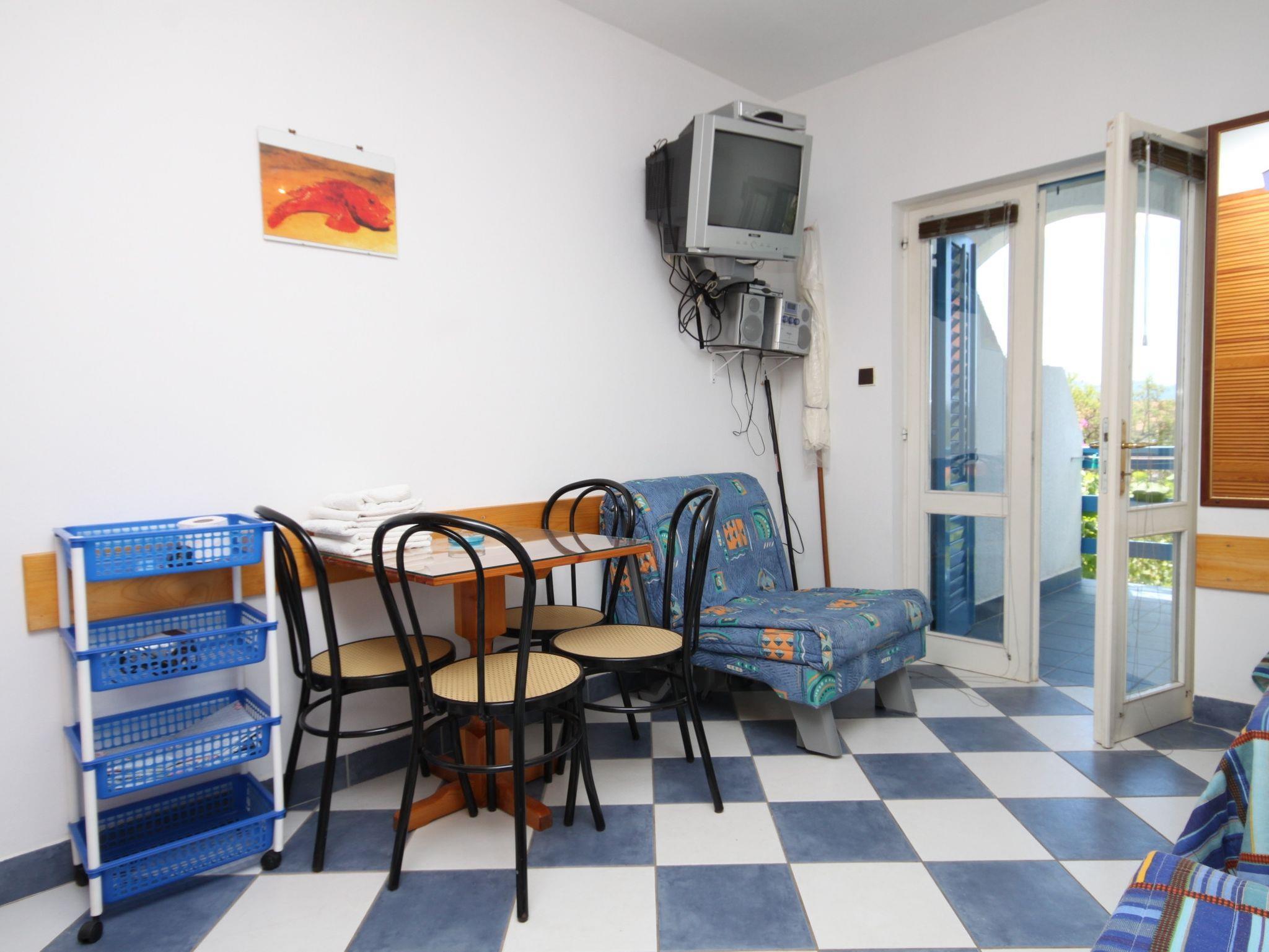 Studio bietet Platz für 3 Gäste. Die Betten sind in Schlafzimmern, die es 1 gibt, innerhalb einer Gesamtfläche von 17m2, angeordnet. Die Gäste haben eine eigene Terrasse zur Verfügung, auf der sie in warmen Sommernächten genießen können. Es ist erlaubt, Speisen auf dem Gemeinschafts-Grill vorzubereiten. In der Unterkunftseinheit besteht die Möglichkeit des Mitbringens von Haustieren gegen Aufpreis. IM PREIS INBEGRIFFEN: Kurtaxe, Endreinigung, Klimatisierung, Parkplatz, Internet, Kinderbett, Bügeleisen, Bügelbrett, Föhn. VERBINDLICHE ZUSÄTZLICHE KOSTEN: Aufzahlung für Kurzaufenthalte (prozentualer Zuschlag pro Nächtigungsanzahl: 30% - 1, 20% - 2, 10% - 3). UNVERBINDLICHE ZUSÄTZLICHE KOSTEN: Frühstück (10,00 €, 50% Nachlass für Kinder zwischen 4 und 12 Jahren, Kinder bis 4 Jahre sind frei.), Haustiere (10,00 € pro Nacht). Die Verfügbarkeit zusätzlicher Dienstleistungen in Ihrem reservierten Termin und die Preise derselben (falls nicht aufgeführt) müssen im Voraus überprüft werden. Zusätzliche Dienstleistungen die in der Zahlungsaufforderung nicht aufgeführt sind werden direkt beim Vermieter bezahlt, angenommen der Gast nutzt auch diese. Ermäßigung auf den Grundpreis: Gratistag 28=25 (bei einem Aufenthalt von 28 oder mehr Tagen erhalten Sie 3 kostenlose Tage für den Aufenthalt bis 31.12.26).