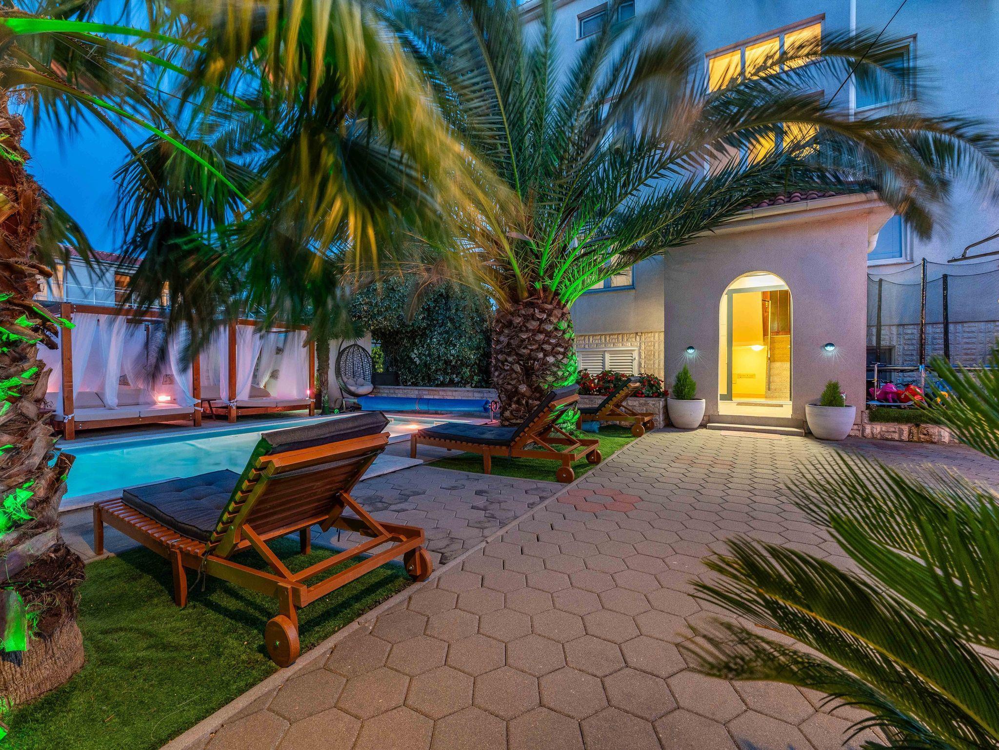 Hof (300m2, Kinderbereich, Sitzbereich), Parkplatz (Anzahl der Parkplätze: 8, Entfernung vom Objekt: im Hof), Pool: gemeinsam, Dimensionen: 4m x 3m x 1.5m, Wassertyp: Süßwasser, Grill: gemeinsam, WiFi Internet, Wäschewaschen, Föhn, Bügeleisen, Kinderbett