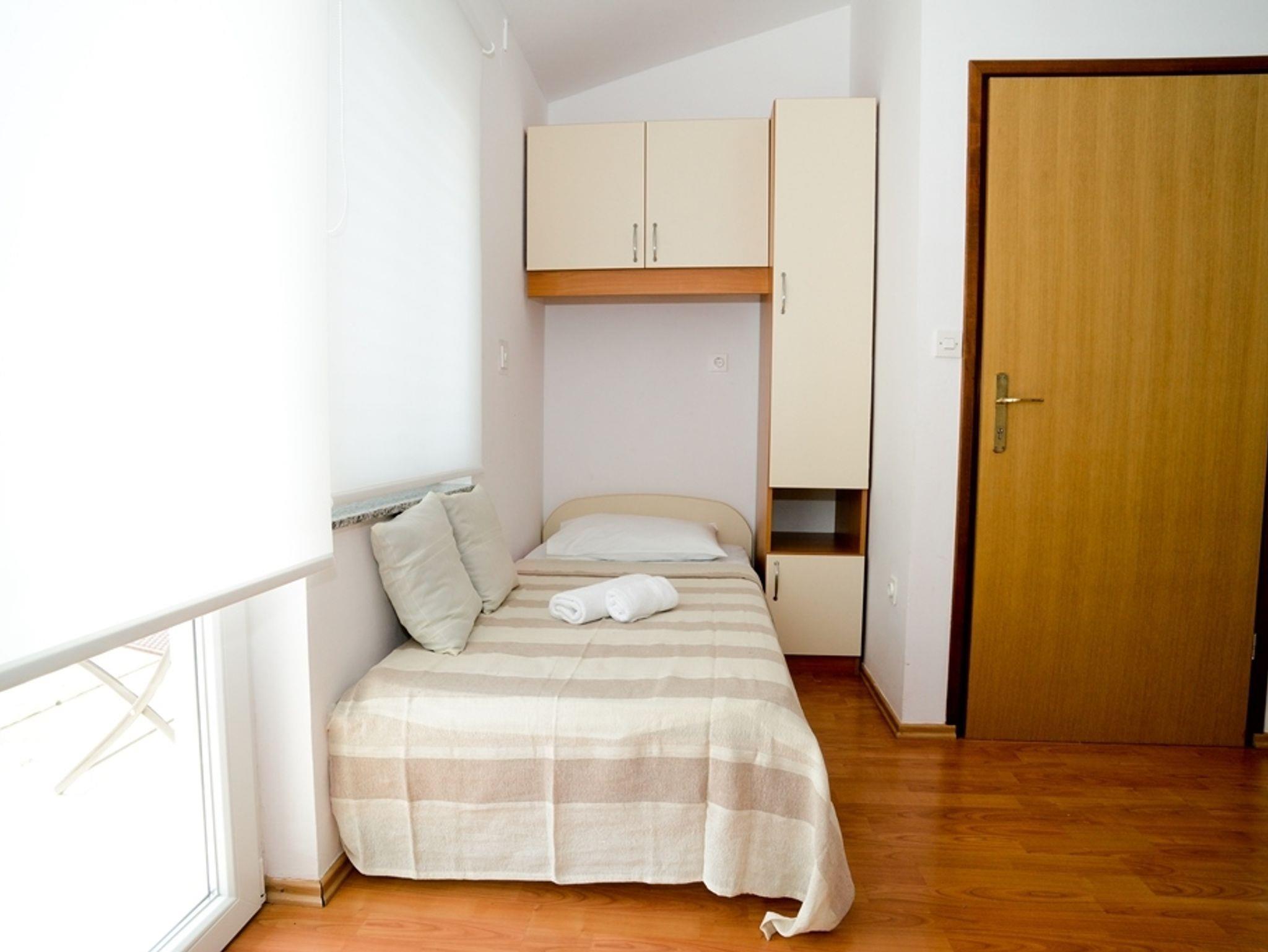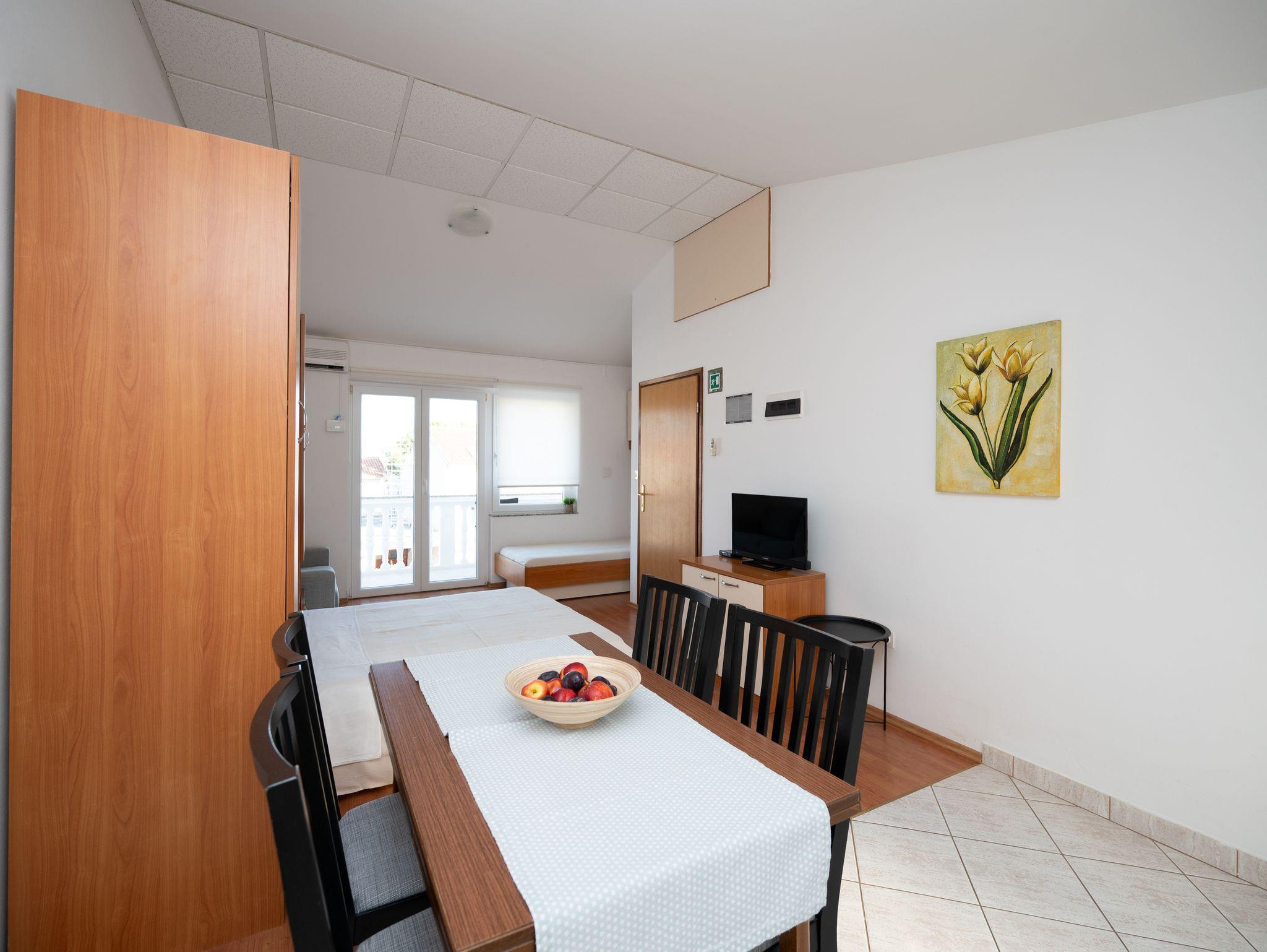 Studio bietet Platz für 3 Gäste. Die Betten sind in Schlafzimmern, die es 1 gibt, innerhalb einer Gesamtfläche von 25m2, angeordnet. Die Gäste haben einen eigenen Balkon zur Verfügung, auf der sie in warmen Sommernächten genießen können. Das Studio-Apartment bietet Meerblick. Es ist erlaubt, Speisen auf dem Gemeinschafts-Grill vorzubereiten. In der Unterkunftseinheit besteht die Möglichkeit des Mitbringens von Haustieren gegen Aufpreis. IM PREIS INBEGRIFFEN: Kurtaxe, Endreinigung, Parkplatz, Internet, Föhn. VERBINDLICHE ZUSÄTZLICHE KOSTEN: Aufzahlung für Kurzaufenthalte (prozentualer Zuschlag pro Nächtigungsanzahl: 30% - 1, 20% - 2, 10% - 3). UNVERBINDLICHE ZUSÄTZLICHE KOSTEN: Klimatisierung (0,62 € pro Stunde), Boot (250,00 € pro Nacht), Haustiere (5,00 € pro Nacht). Die Verfügbarkeit zusätzlicher Dienstleistungen in Ihrem reservierten Termin und die Preise derselben (falls nicht aufgeführt) müssen im Voraus überprüft werden. Zusätzliche Dienstleistungen die in der Zahlungsaufforderung nicht aufgeführt sind werden direkt beim Vermieter bezahlt, angenommen der Gast nutzt auch diese.