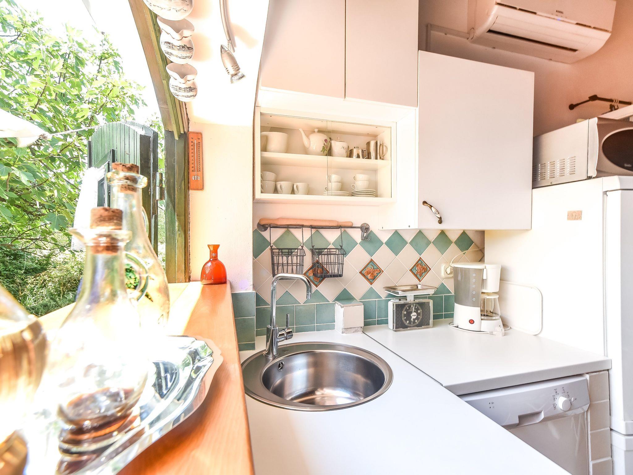 Studio bietet Platz für 2 Gäste. Die Betten sind in Schlafzimmern, die es 1 gibt, innerhalb einer Gesamtfläche von 22m2, angeordnet. Die Gäste haben eine eigene Terrasse zur Verfügung, auf der sie in warmen Sommernächten genießen können. Es ist erlaubt, Speisen auf dem Gemeinschafts-Grill vorzubereiten. IM PREIS INBEGRIFFEN: Kurtaxe, Endreinigung, Parkplatz, Internet, Kinderbett, Bügeleisen, Bügelbrett, Föhn, Sonnenschirm, 1 Bett für Kinder (im Preis enthalten). VERBINDLICHE ZUSÄTZLICHE KOSTEN: Aufzahlung für Kurzaufenthalte (prozentualer Zuschlag pro Nächtigungsanzahl: 30% - 1, 20% - 2, 10% - 3). UNVERBINDLICHE ZUSÄTZLICHE KOSTEN: Klimatisierung (10,00 € pro Nacht), Wäschewaschen (5,00 € Waschen), Bootsanlegeplatz (5,00 € pro Nacht). Die Verfügbarkeit zusätzlicher Dienstleistungen in Ihrem reservierten Termin und die Preise derselben (falls nicht aufgeführt) müssen im Voraus überprüft werden. Zusätzliche Dienstleistungen die in der Zahlungsaufforderung nicht aufgeführt sind werden direkt beim Vermieter bezahlt, angenommen der Gast nutzt auch diese.
