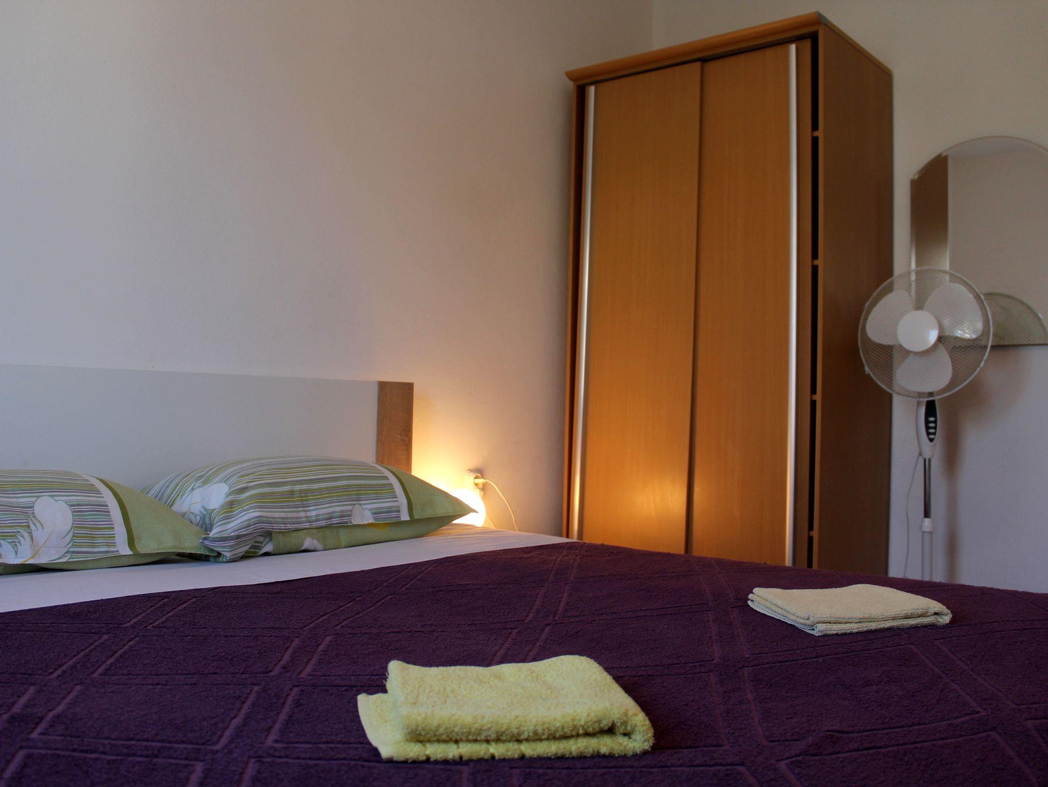 Ferienwohnung bietet Platz für 12 Gäste. Die Betten sind in Schlafzimmern, die es 5 gibt, und in Wohnzimmer, innerhalb einer Gesamtfläche von 114m2, angeordnet. Die Gäste haben eine eigene Terrasse zur Verfügung, auf der sie in warmen Sommernächten genießen können. Es ist erlaubt, Speisen auf dem Gemeinschafts-Grill vorzubereiten. IM PREIS INBEGRIFFEN: Kurtaxe, Endreinigung, Klimatisierung, Parkplatz, Internet, Bügeleisen, Bügelbrett, Föhn, tragbarer Grill, Sonnenschirm. VERBINDLICHE ZUSÄTZLICHE KOSTEN: Aufzahlung für Kurzaufenthalte (prozentualer Zuschlag pro Nächtigungsanzahl: 30% - 1, 20% - 2, 10% - 3). Die Verfügbarkeit zusätzlicher Dienstleistungen in Ihrem reservierten Termin und die Preise derselben (falls nicht aufgeführt) müssen im Voraus überprüft werden. Zusätzliche Dienstleistungen die in der Zahlungsaufforderung nicht aufgeführt sind werden direkt beim Vermieter bezahlt, angenommen der Gast nutzt auch diese.