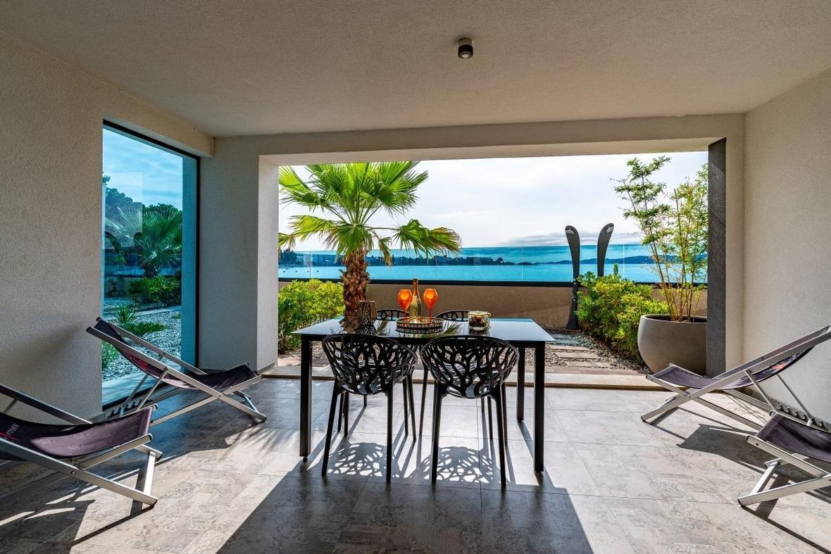 Terrasse mit outdoor Möbel und uneingeschränktem Meerblick