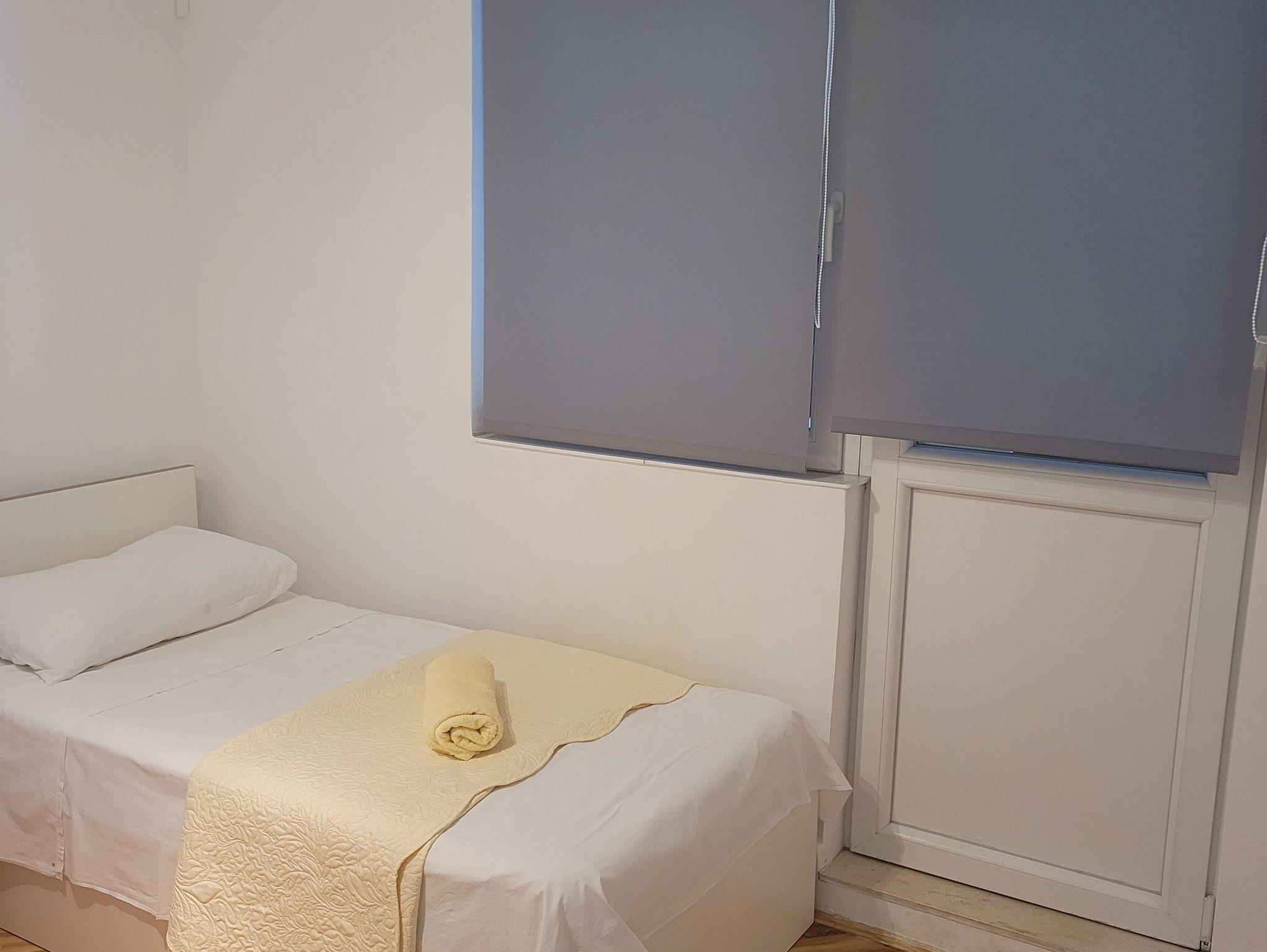 Ferienwohnung bietet Platz für 6 Gäste. Die Betten sind in Schlafzimmern, die es 2 gibt, und in Wohnzimmer, innerhalb einer Gesamtfläche von 61m2, angeordnet. Die Gäste haben eine eigene Terrasse zur Verfügung, auf der sie in warmen Sommernächten genießen können. Es ist erlaubt, Speisen auf dem Gemeinschafts-Grill vorzubereiten. Räume der gebuchten Unterkunftseinheit werden nicht in eine Ganze verbunden. Unterkunftseinheit hat Räume, die von dem Rest der Einheit abgetrennt werden. Durch das Schlafzimmer der gebuchten Unterkunftseinheit geht man in die andere Räume der Einheit. IM PREIS INBEGRIFFEN: Kurtaxe, Endreinigung, Klimatisierung, Parkplatz, Internet, Wäschewaschen, Fahrrad, Bügeleisen, Bügelbrett, Föhn. Die Verfügbarkeit zusätzlicher Dienstleistungen in Ihrem reservierten Termin und die Preise derselben (falls nicht aufgeführt) müssen im Voraus überprüft werden. Zusätzliche Dienstleistungen die in der Zahlungsaufforderung nicht aufgeführt sind werden direkt beim Vermieter bezahlt, angenommen der Gast nutzt auch diese.