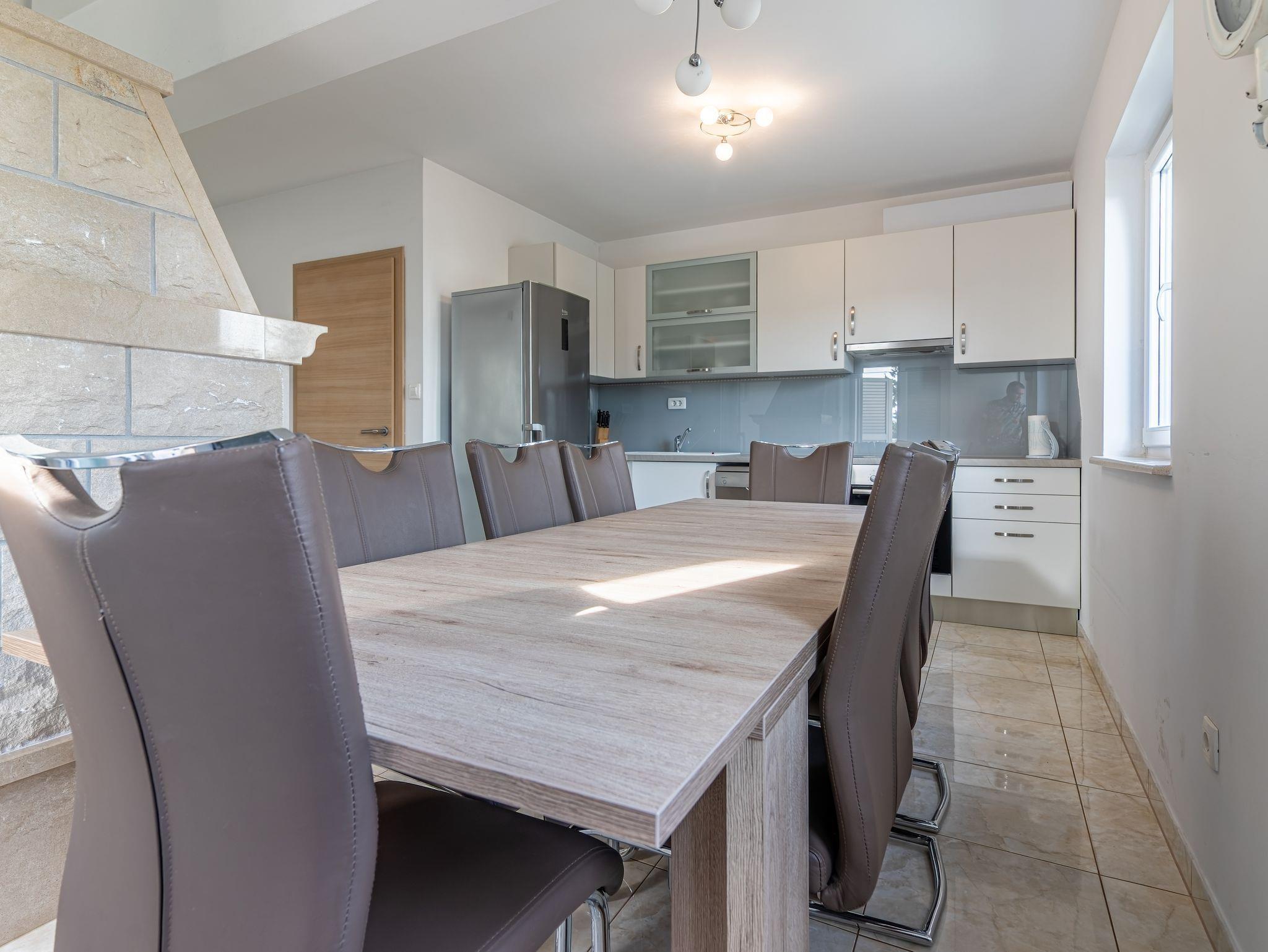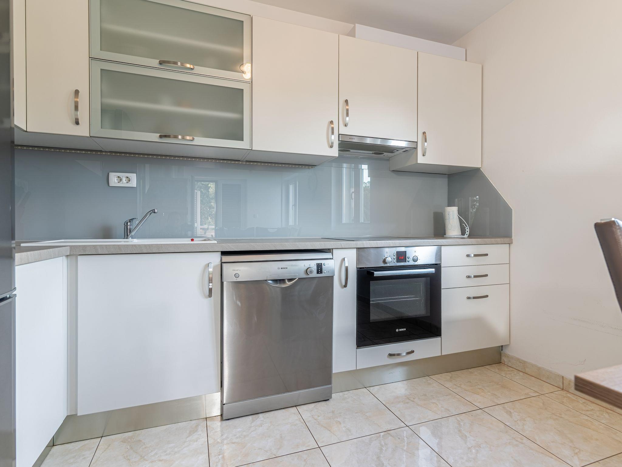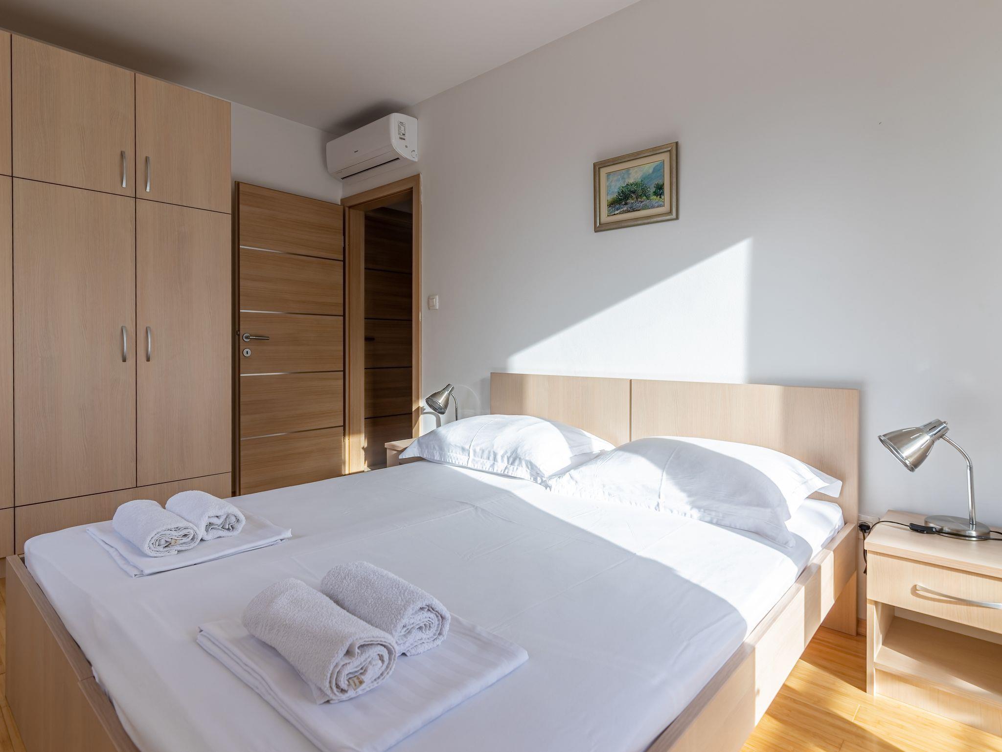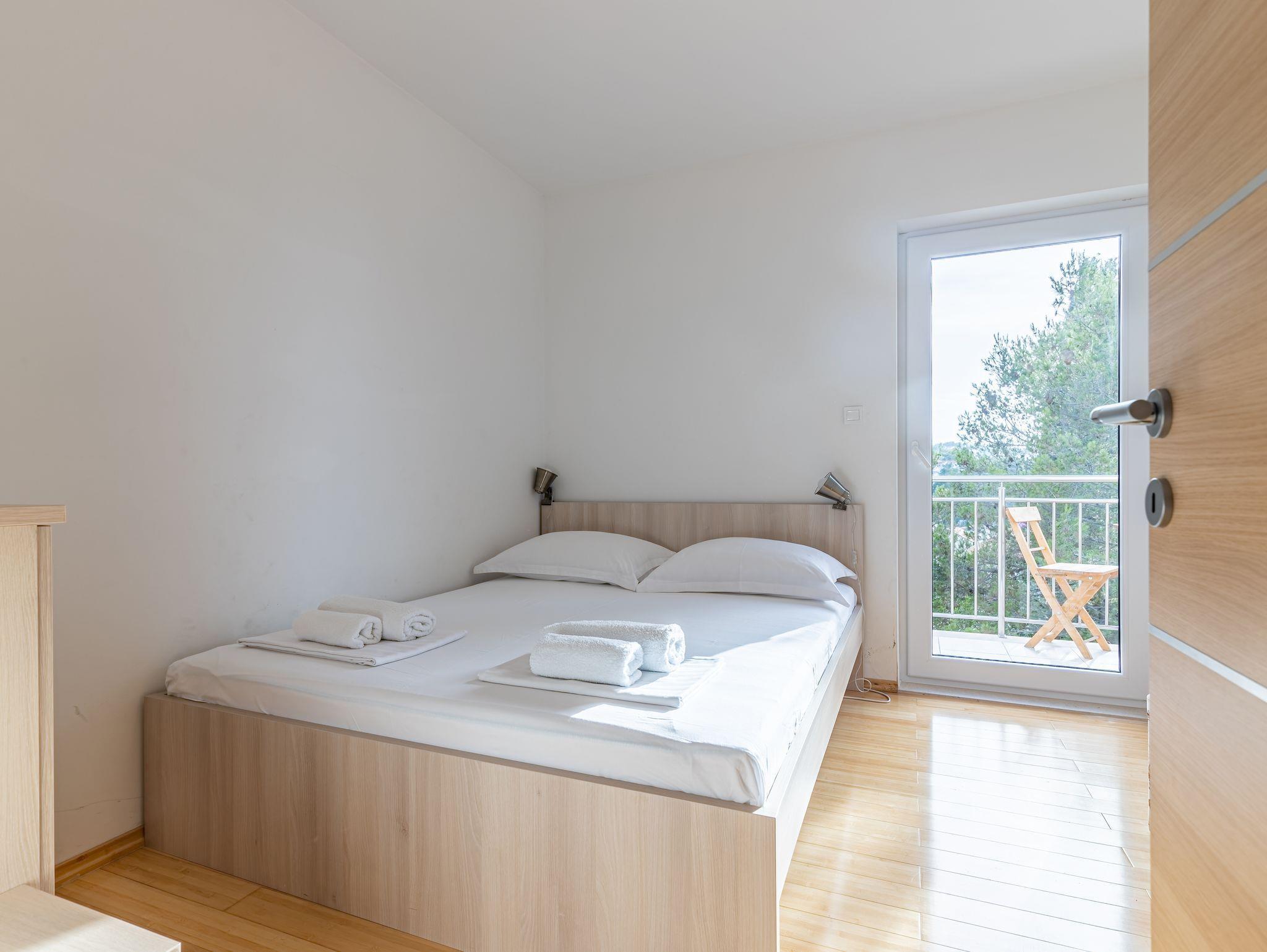 Ferienwohnung bietet Platz für 6 Gäste. Die Betten sind in Schlafzimmern, die es 3 gibt, innerhalb einer Gesamtfläche von 83m2, angeordnet. Die Gäste haben einen eigenen Balkon zur Verfügung, auf der sie in warmen Sommernächten genießen können. Das Apartment bietet Meerblick. Es ist erlaubt, Speisen auf dem Gemeinschafts-Grill vorzubereiten. Während ihres Aufenthalts können Gäste das gemeinsam zur Nutzung stehende Schwimmbad benutzen. IM PREIS INBEGRIFFEN: Kurtaxe, Endreinigung, Klimatisierung, Pool, Parkplatz, Garage, Internet, Wäschewaschen, Zusatzbett, Bügeleisen, Bügelbrett, Sonnenschirm, Liegestühle. VERBINDLICHE ZUSÄTZLICHE KOSTEN: Aufzahlung für Kurzaufenthalte (prozentualer Zuschlag pro Nächtigungsanzahl: 30% - 1, 20% - 2, 10% - 3). Die Verfügbarkeit zusätzlicher Dienstleistungen in Ihrem reservierten Termin und die Preise derselben (falls nicht aufgeführt) müssen im Voraus überprüft werden. Zusätzliche Dienstleistungen die in der Zahlungsaufforderung nicht aufgeführt sind werden direkt beim Vermieter bezahlt, angenommen der Gast nutzt auch diese. Ermäßigung auf den Grundpreis: Gratistag 21=19 (bei einem Aufenthalt von 21 Tagen oder mehr erhalten Sie 2 Gratistage für den Aufenthalt bis 31.12.26).