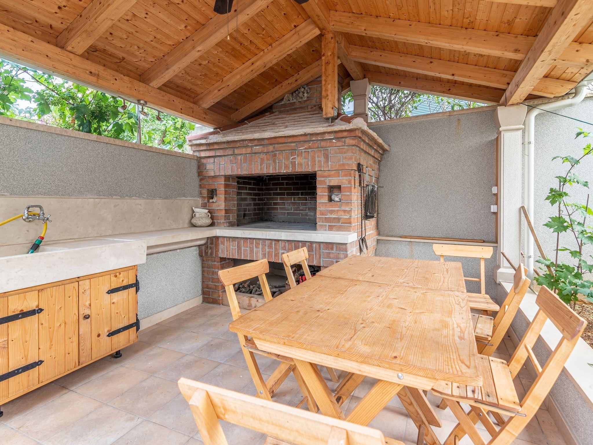 Umgebung des Objekts (Ordentlich), Hof (200m2, Kinderbereich, Sitzbereich), Parkplatz (Anzahl der Parkplätze: 2, Entfernung vom Objekt: im Hof), Garage, (Anzahl der Parkplätze: 2), Pool: gemeinsam, Dimensionen: 6m x 4m x 2.5m, Wassertyp: Süßwasser, Grill: gemeinsam, WiFi Internet, Wäschewaschen, Bügeleisen, Bügelbrett, Sonnenschirm, Liegestühle