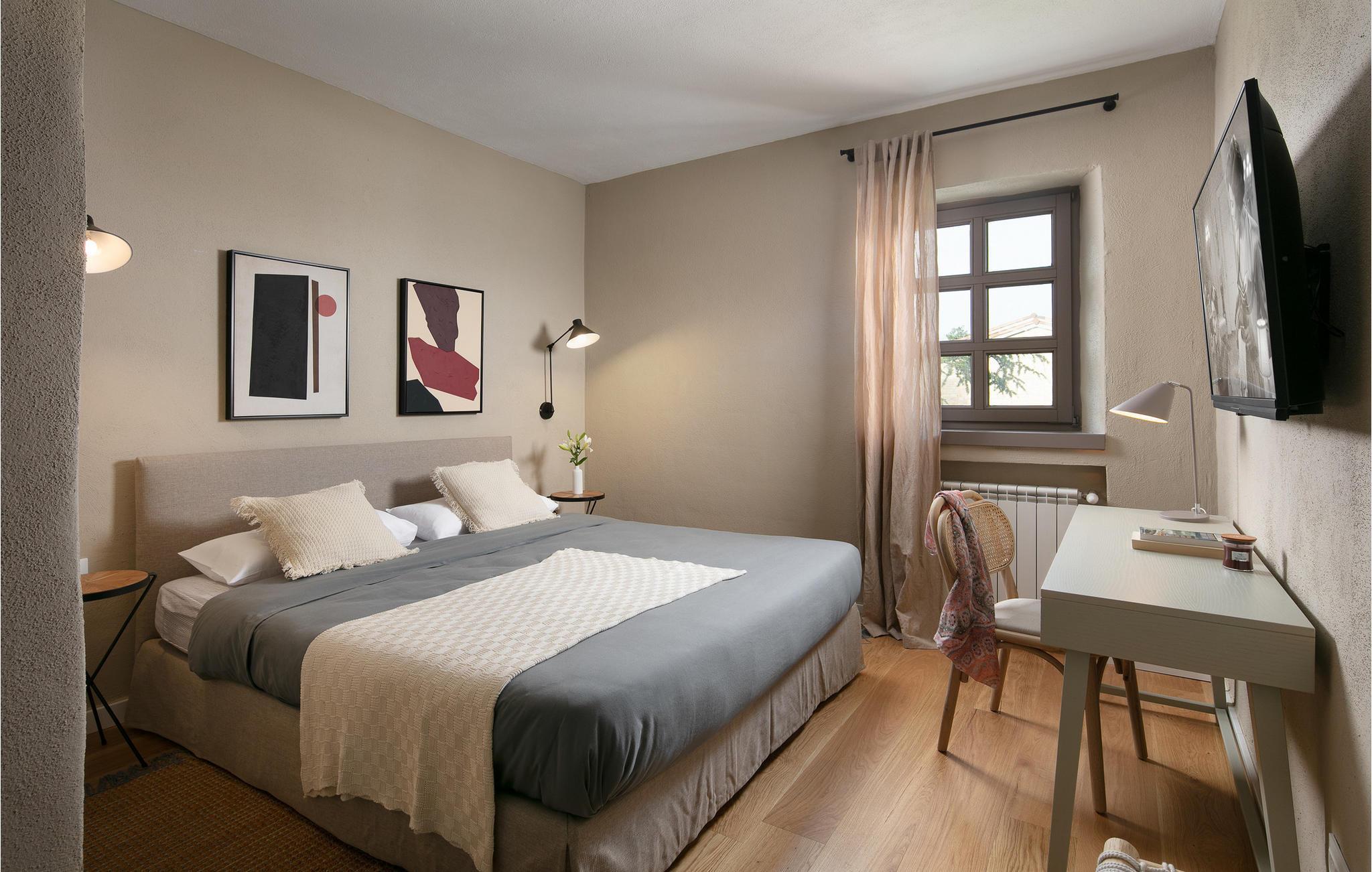 Die schöne Villa Cantata befindet sich in Sv. Lovrec, eine der am besten erhaltenen Städte Istriens. Istrien ist eine Region, die jeden Sommer von vielen neugierigen in- und ausländischen Touristen besucht wird, die Spaß haben, entspannen und an wunderschönen Stränden schwimmen möchten. Wenn Sie einer von ihnen sind, wagen Sie es, sich einen jährlichen Urlaub in einer Villa zu gönnen und sich dem Charme hinzugeben, den Ihnen diese Villa großzügig bietet! Die Villa wurde 2009 im rustikalen Stil erbaut und 2022 einer kompletten Renovierung unterzogen, wodurch sie zu einer luxuriösen Ferienanlage wurde. Ihnen stehen 212 m2 zur Verfügung, die Gesamtfläche des Grundstücks beträgt 978 m2 und die Villa ist voll klimatisiert. Es ist 15 km vom nächsten Meer entfernt und der nächste Strand befindet sich in der Stadt Porec. In der Villa können maximal 8 Personen übernachten, die auf 4 Schlafzimmer verteilt sind. In drei Zimmern gibt es Doppelbetten (180x200) und im vierten Zimmer zwei Einzelbetten (90x200). Zwei Badezimmer verfügen über eine Dusche und die anderen beiden über eine Badewanne. Das wunderschön eingerichtete Wohnzimmer verfügt über zwei Sofas, einen Couchtisch, einen Stuhl und einen romantischen Kamin. Es gibt auch Tischfußball, den Sie jederzeit spielen können. Neben dem Wohnzimmer gibt es ein Esszimmer mit einem Esstisch für 8 Personen und eine moderne Küche, die mit allem ausgestattet ist, was Sie für die Zubereitung köstlicher Mahlzeiten benötigen. Auf der Außenterrasse erwartet Sie ein 32 m² großer Swimmingpool mit einer Tiefe von 1,5 m. Auf dem Sonnendeck stehen 8 Liegestühle zur Verfügung, die eine ideale Gelegenheit zum Entspannen und Genießen unter der Sonne bieten. Sie haben die Möglichkeit, Mahlzeiten auf dem Holzkohle- oder Holzgrill im Freien zuzubereiten. Zu den weiteren Einrichtungen gehören eine Waschmaschine und ein Bügeleisen. Für Kinder stehen ein Futterspender und ein Kinderbett zur Verfügung. Es gibt zwei private Parkplätze im Innenhof der Villa Cantata. Istrien ist bekannt für seine Weintouren und Olivenöltouren und die Jüngsten werden von den Aquaparks oder dem Radfahren begeistert sein. Der Skilift in Porec, Wassersport und Besichtigungen historischer Denkmäler und Städte stehen Ihnen zur Verfügung. Die Schönheit von Porec wird manchmal von der Menge an Besuchern aus aller Welt verdeckt, die die Gastfreundschaft und den exzellenten Service genießen. Wenn Sie genau hinschauen, können Sie die Überreste des antiken Roms erkennen und im Hafen werden Sie auf Zeugnisse der venezianischen Herrschaft aus dem 18. Jahrhundert stoßen. Istrien hat für jeden etwas zu bieten: ob Sie Geschichte, Kunst, Sport, gutes Essen oder Wein mögen. Willkommen in der Villa Cantata! Haustiere sind in dieser Unterkunft nach Ermessen des Eigentümers oder gegen eine Gebühr gestattet.