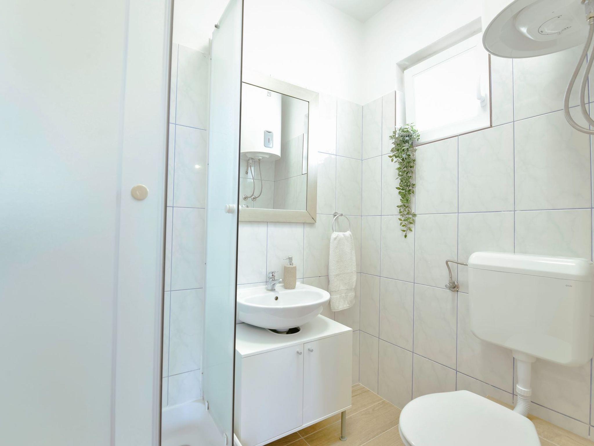 Ferienwohnung bietet Platz für 5 Gäste. Die Betten sind in Schlafzimmern, die es 1 gibt, und in Wohnzimmer, innerhalb einer Gesamtfläche von 35m2, angeordnet. Die Gäste haben eine eigene Terrasse zur Verfügung, auf der sie in warmen Sommernächten genießen können. Das Apartment bietet Meerblick. Es ist erlaubt, Speisen auf dem Gemeinschafts-Grill vorzubereiten. IM PREIS INBEGRIFFEN: Kurtaxe, Endreinigung, Klimatisierung, Parkplatz, Internet, Kinderbett, Bügeleisen, Bügelbrett. VERBINDLICHE ZUSÄTZLICHE KOSTEN: Aufzahlung für Kurzaufenthalte (prozentualer Zuschlag pro Nächtigungsanzahl: 30% - 1, 20% - 2, 10% - 3). Die Verfügbarkeit zusätzlicher Dienstleistungen in Ihrem reservierten Termin und die Preise derselben (falls nicht aufgeführt) müssen im Voraus überprüft werden. Zusätzliche Dienstleistungen die in der Zahlungsaufforderung nicht aufgeführt sind werden direkt beim Vermieter bezahlt, angenommen der Gast nutzt auch diese. Ermäßigung auf den Grundpreis: Gratistag 14=13 (bei einem Aufenthalt von 14 Tagen oder mehr erhalten Sie einen Gratistag für den Aufenthalt bis 31.12.26).
