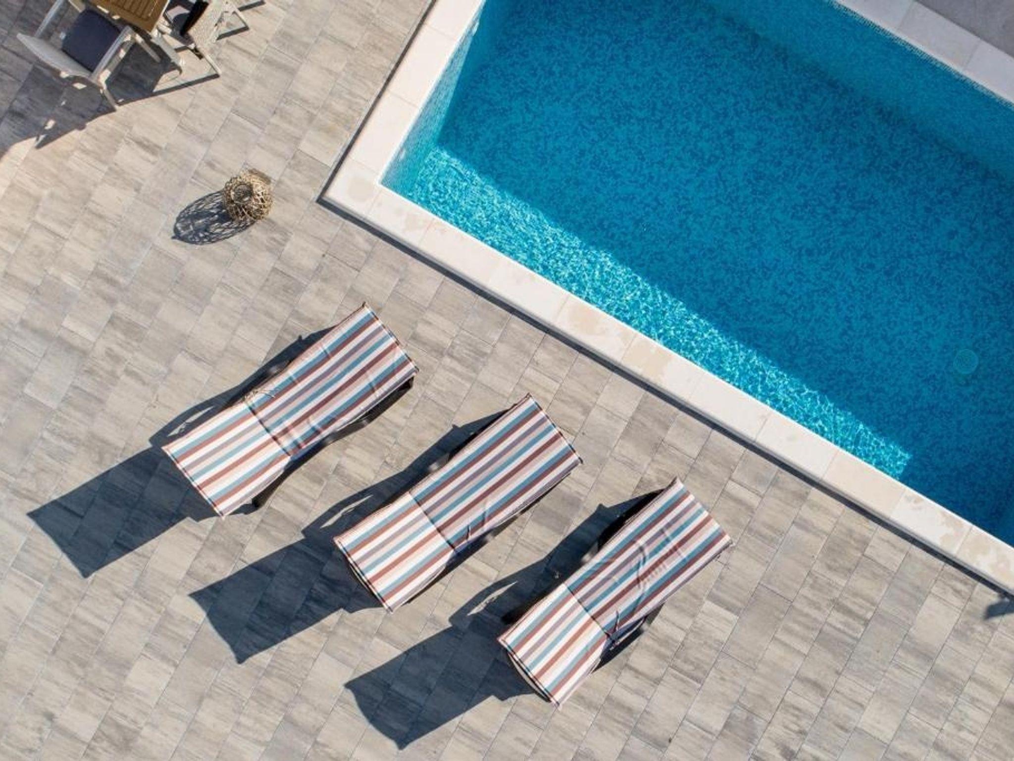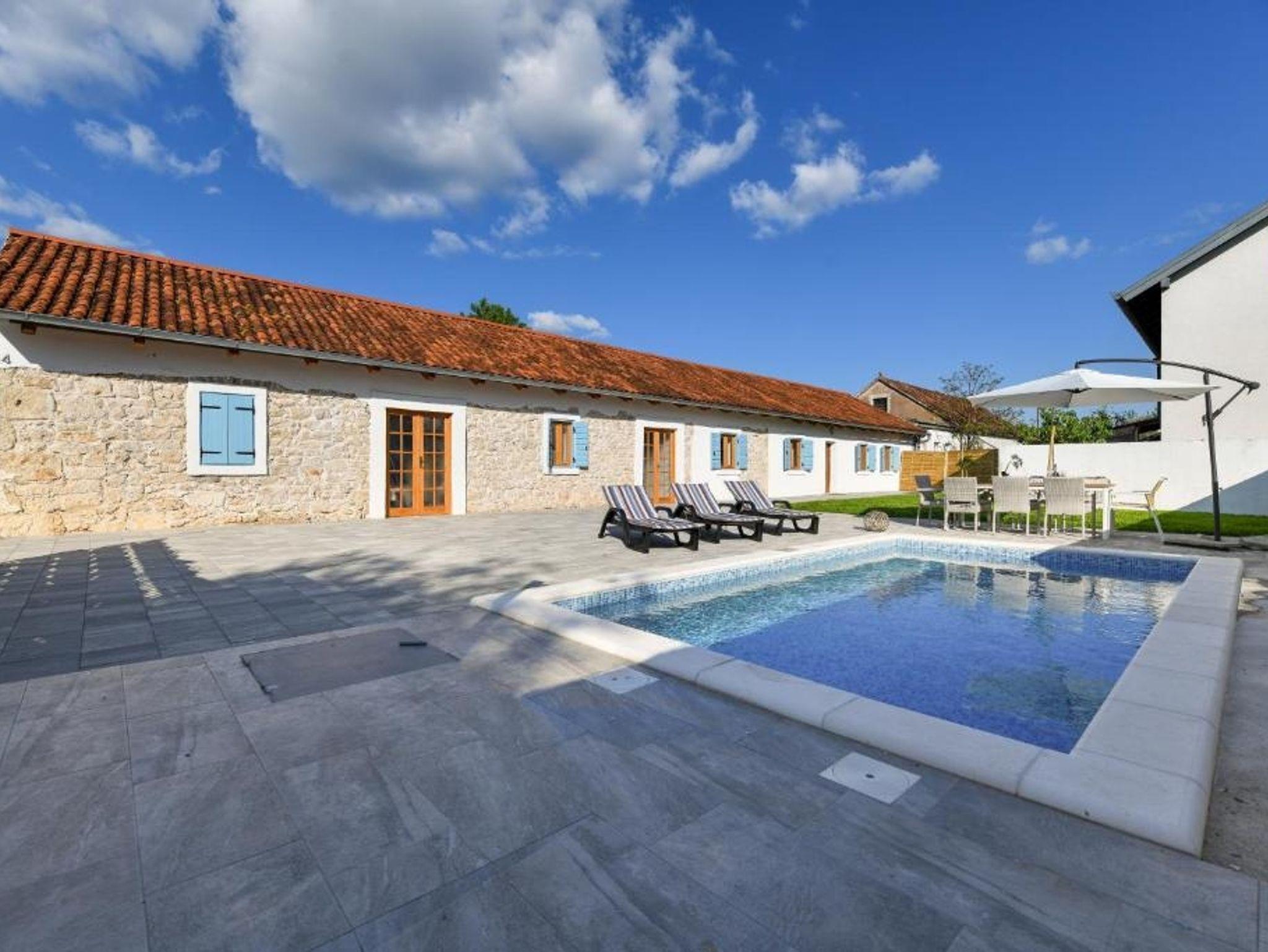 Haus bietet Platz für 10 Gäste. Die Betten sind in Schlafzimmern, die es 3 gibt, innerhalb einer Gesamtfläche von 120m2, angeordnet. Für vollen Genuss und Entspannung gibt es einen privaten Grill für Gäste dieser Unterkunft. Während ihres Aufenthalts können sich Gäste im privaten Schwimmbad entspannen. In der Unterkunftseinheit besteht die Möglichkeit des Mitbringens von Haustieren, und die Dienstleistung ist im Preis der Unterkunft enthalten. Die reservierte Unterkunftseinheit hat keinen Balkon und keine Terrasse. IM PREIS INBEGRIFFEN: Kurtaxe, Endreinigung, Klimatisierung, Pool, Parkplatz, Internet, Haustiere, Kinderbett, Bügeleisen, Föhn, Sonnenschirm, Liegestühle. VERBINDLICHE ZUSÄTZLICHE KOSTEN: Aufzahlung für Kurzaufenthalte (prozentualer Zuschlag pro Nächtigungsanzahl: 30% - 1, 20% - 2, 10% - 3). Die Verfügbarkeit zusätzlicher Dienstleistungen in Ihrem reservierten Termin und die Preise derselben (falls nicht aufgeführt) müssen im Voraus überprüft werden. Zusätzliche Dienstleistungen die in der Zahlungsaufforderung nicht aufgeführt sind werden direkt beim Vermieter bezahlt, angenommen der Gast nutzt auch diese. Ermäßigung auf den Grundpreis: Gratistag 14=13 (bei einem Aufenthalt von 14 Tagen oder mehr erhalten Sie einen Gratistag für den Aufenthalt bis 31.12.25).