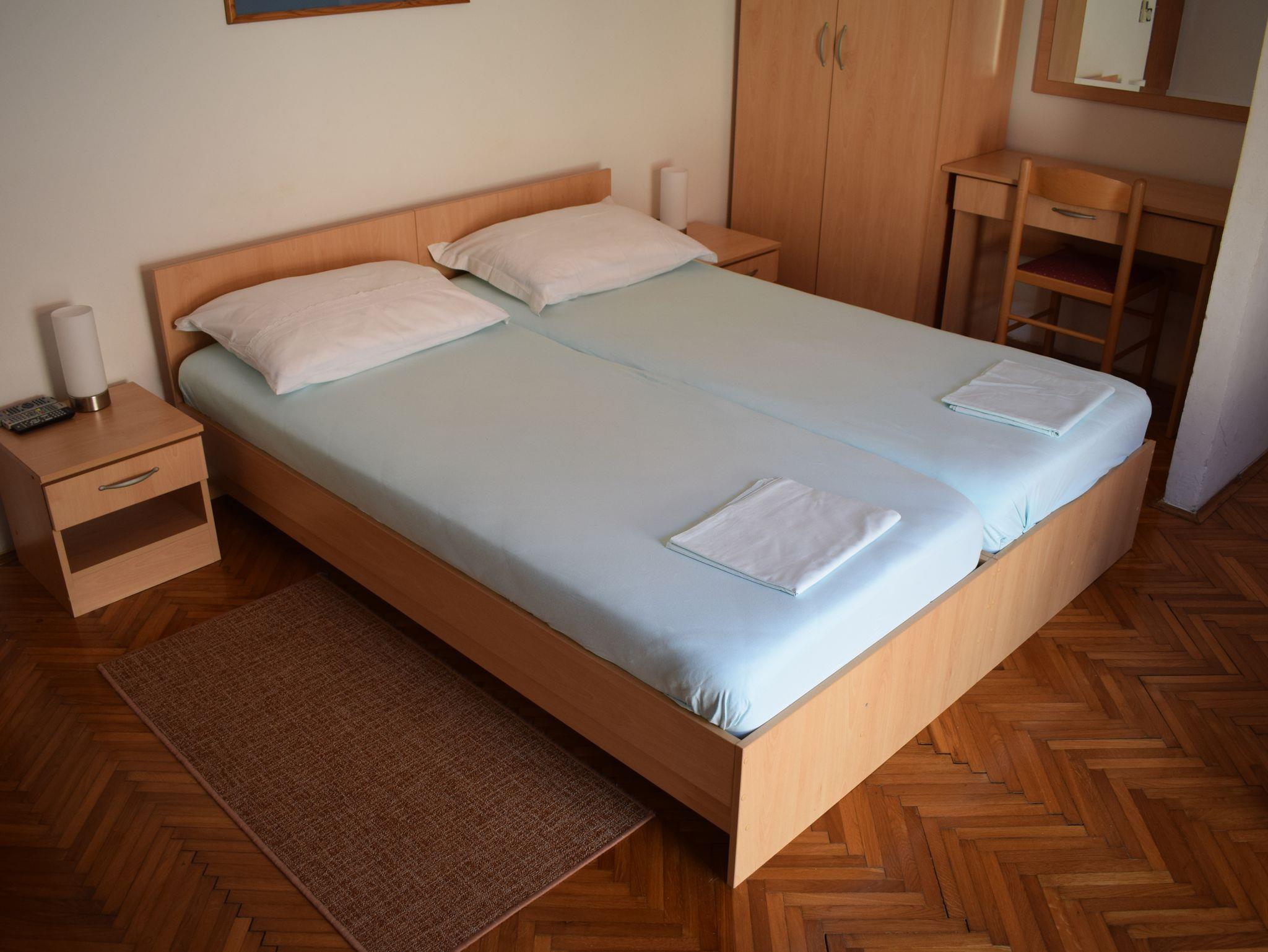 Studio bietet Platz für 3 Gäste. Die Betten sind in Schlafzimmern, die es 1 gibt, innerhalb einer Gesamtfläche von 23m2, angeordnet. Es ist erlaubt, Speisen auf dem Gemeinschafts-Grill vorzubereiten. Die reservierte Unterkunftseinheit hat keinen Balkon und keine Terrasse. IM PREIS INBEGRIFFEN: Kurtaxe, Endreinigung, Klimatisierung, Internet. VERBINDLICHE ZUSÄTZLICHE KOSTEN: Aufzahlung für Kurzaufenthalte (prozentualer Zuschlag pro Nächtigungsanzahl: 30% - 1, 20% - 2, 10% - 3). Die Verfügbarkeit zusätzlicher Dienstleistungen in Ihrem reservierten Termin und die Preise derselben (falls nicht aufgeführt) müssen im Voraus überprüft werden. Zusätzliche Dienstleistungen die in der Zahlungsaufforderung nicht aufgeführt sind werden direkt beim Vermieter bezahlt, angenommen der Gast nutzt auch diese. Ermäßigung auf den Grundpreis: Gratistag 14=13 (bei einem Aufenthalt von 14 Tagen oder mehr erhalten Sie einen Gratistag für den Aufenthalt bis 31.12.26).