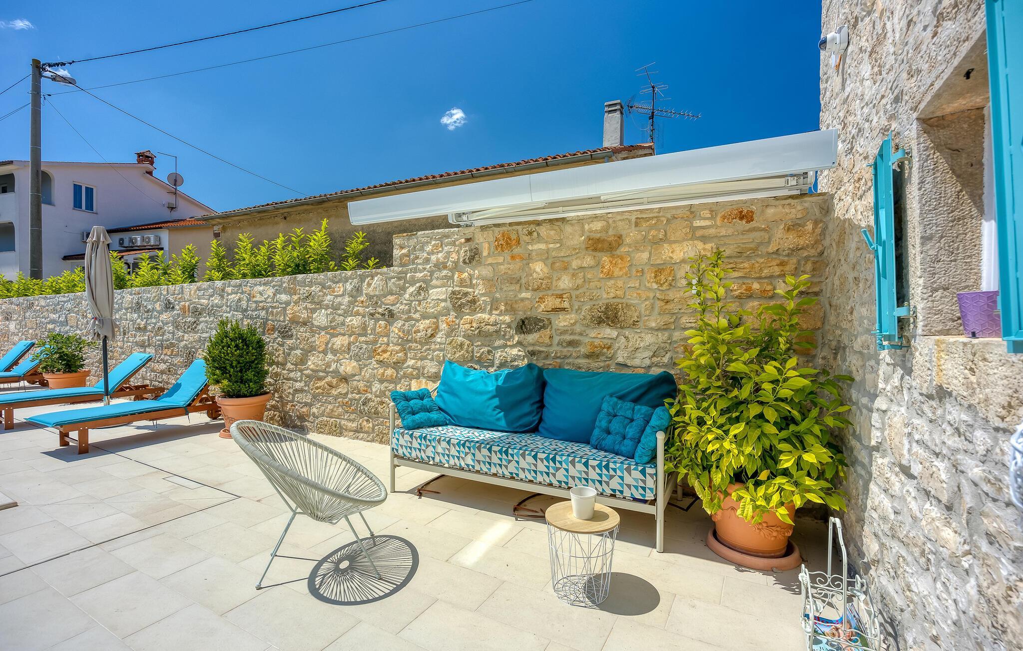 Dieses gemütliche und geräumige Ferienhaus lockt mit einem behaglichen Interieur und einer gelungenen Mischung aus rustikalen Natursteinwänden und modernen Annehmlichkeiten. Zaubern Sie hier mediterrane Gerichte und machen Sie es sich abends auf dem Sofa gemütlich.