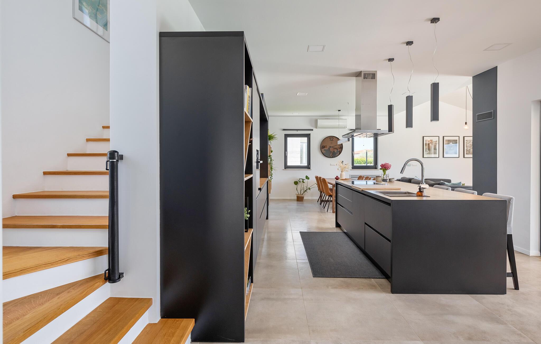 Die Villa besteht aus drei Schlafzimmern, was sie zu einer perfekten Unterkunft bis zu 6 Personen macht. Der Innbereich ist hell und luftig dank des offenen Konzepts des Erdgeschosses und der großen Glasflächen. Die Villa hat eine moderne, völlig ausgestattete Küche wo Sie Ihre leckere Mahlzeiten zubereiten können und einen Essbereich, in dem Sie die Köstlichkeiten genießen können. Hier befindet sich auch ein Wohnbereich wo Sie mit Ihrem Liebsten schöne Zeit verbringen können. Von hieraus haben Sie auch einen direkten Zugang zur überdachten Terrasse. Ein Schlafzimmer und ein Badezimmer befinden sich ebenfalls im Erdgeschoss, was die Villa für Familien mit Kinder geeignet macht. Zwei weitere Schlafzimmer und ein Badezimmer befinden sich auf der oberen Etage. Alle Schlafzimmer verfügen über ein Doppelbett.