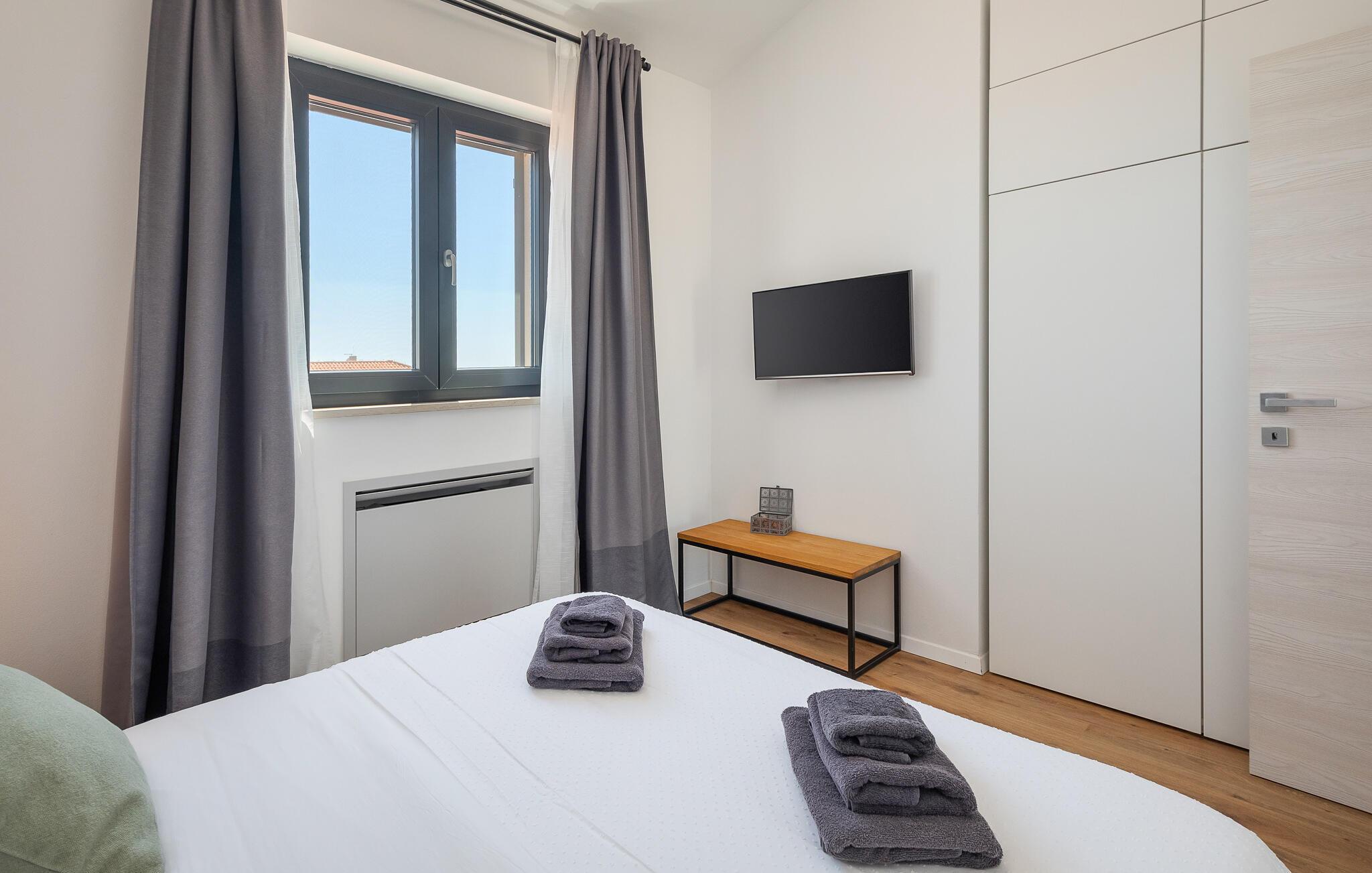 Im Außenbereich befindet sich die überdachte Terrasse. Hier können Sie auch alle köstlichen Speisen und Ihre Lieblingsgetränke genießen. Es gibt auch einen privaten Pool, an dem Sie bequem auf Liegestühlen sitzen und den Blick auf das Grün genießen können, das die Villa umgibt. Mit seinem liebevoll dekorierten Interieur und dem privaten Pool mit Blick auf die Altstadt, ermöglicht diese Villa einen wirklich erholsamen und entspannten Urlaub in Istrien.Die Villa befindet sich in einer der am besten erhaltenen mittelalterlichen Festungsstädte Istriens - dem pittoresken Sveti Lovrec. In seinen gewundenen Gässchen finden Sie gemütliche Bars und Restaurants, eine Post, Lebensmittelgeschäft und Arztpraxis. Herrliche Strände sind ebenfalls nur wenige Fahrminuten weg, die nächsten rund um das charmante Fischerdorf Vrsar (9 km). Die nahegelegene wichtigste regionale Straße macht zudem auch alle berühmtesten historischen Städte Istriens, wie Porec (15 km), Rovinj (20 km) und Pula (40 km), leicht erreichbar. Abenteuersuchende sollten auf jeden Fall die Pferderanch im benachbarten Dorf Jakici besuchen, sowie ausgezeichnete Kletterstellen in der spektakulären Lim Bucht. Das Hinterland ist von Olivenhainen bedeckt, welche hervorragendes, jetzt schon weltbekanntes Olivenöl herstellen.