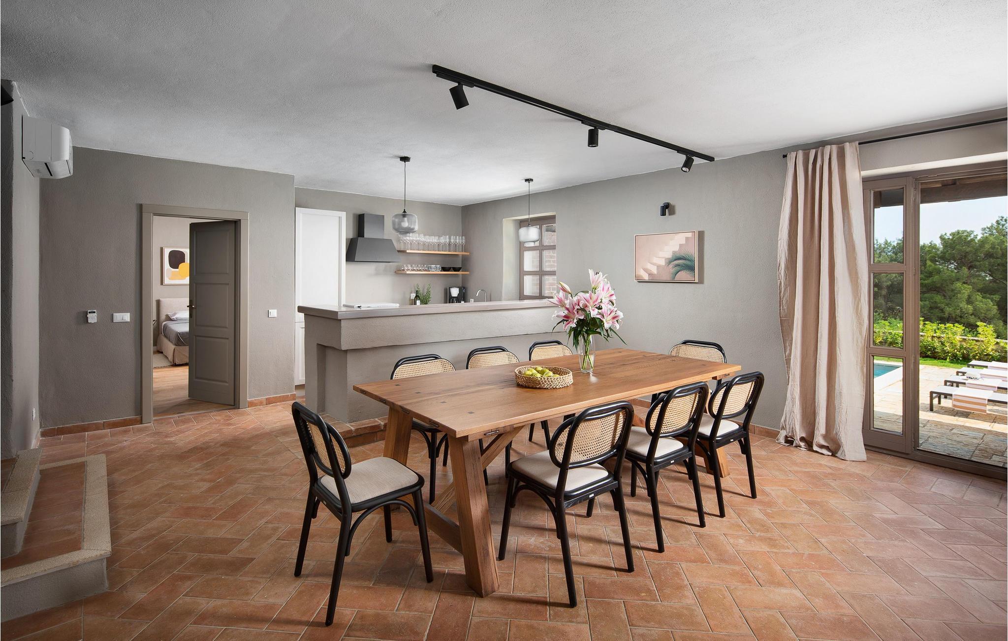 Villa Camilla befindet sich in der Stadt Sv. Lovrec, im wunderschönen Istrien. Dieses wunderschöne einheimische istrische Haus aus Stein ist ideal für alle Natur- und Grünliebhaber und für alle, die einen ruhigen und erholsamen Urlaub verbringen möchten. Wenn Sie einer von ihnen sind, gönnen Sie sich und Ihrer Familie einen unvergesslichen Urlaub in der Villa Camilla! Die Villa wurde 2009 erbaut, wurde jedoch im Jahr 2022 einer kompletten Renovierung unterzogen. Ihr rustikaler Baustil, ihr wunderschönes Interieur und ihr verlockendes Äußeres werden Sie nicht gleichgültig lassen! Den Gästen stehen 206 m2 Wohnfläche zur Verfügung, während die Gesamtfläche des Anwesens 1059 m2 beträgt. Es ist voll klimatisiert und bietet Platz für maximal 8 Personen, die bequem in 4 Schlafzimmern untergebracht werden, von denen sich drei im Obergeschoss befinden und über Doppelbetten verfügen. Das vierte Schlafzimmer befindet sich im Erdgeschoss und verfügt über zwei Einzelbetten. Außerdem verfügen zwei Badezimmer über eine Dusche und eine Badewanne, und ein Badezimmer verfügt nur über eine Badewanne. Die Villa verfügt außerdem über eine moderne Küche, in der Sie köstliche Mahlzeiten für die ganze Familie und Freunde zubereiten können, und es gibt ein Esszimmer mit einem Esstisch mit 8 Sitzplätzen. Außerdem können Sie in der Villa den Blick auf die Adria genießen, indem Sie auf dem Balkon mit Sitzgarnitur Ihren Morgenkaffee trinken. Im Wohnzimmer kann sich die ganze Familie auf zwei Sofas versammeln. Außerdem gibt es dort einen Tisch, einen Fernseher und Stühle zum Sitzen. Auf der Außenterrasse befindet sich ein Pool von 32 m2 und einer Tiefe von 1,5 m. Daneben gibt es ein Sonnendeck mit 8 Liegestühlen und zum Inhalt der Terrasse gehören auch ein Außengrill auf Holzkohle oder Holz, ein überdachter Esstisch im Freien für 8 Personen und ein wunderschön angelegter Garten voller viel Grün und bunter Blumen . Zu den weiteren Einrichtungen der Villa Camilla gehören 1 separates WC, eine Waschmaschine und ein Bügeleisen. Darüber hinaus können Sie einen Futterspender und ein Babybett nutzen. Der Innenhof der Villa Camilla ist vollständig eingezäunt, sodass Kinder unbeschwert spielen und sich unterhalten können. Im Inneren befinden sich drei private Parkplätze. Attraktionen und lokale Aktivitäten stehen Ihnen zur Verfügung: Weintouren, Wassersport, ein Aquapark, der die Kleinsten begeistern wird, der Skilift Porec, Radfahren und vieles mehr! Sv. Lovrec ist ein verstecktes Juwel und eine der am besten erhaltenen mittelalterlichen Festungsstädte Istriens. Genießen Sie den Charme Istriens, probieren Sie köstliche gastronomische Gerichte und Weine und fühlen Sie sich wie Könige in der Villa Camilla! Willkommen! Haustiere sind in dieser Unterkunft nach Ermessen des Eigentümers oder gegen eine Gebühr gestattet.