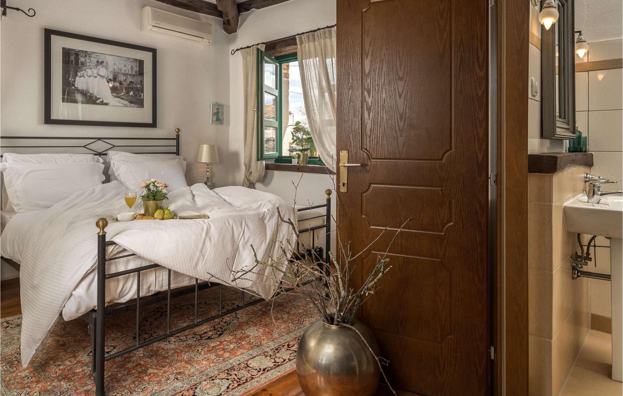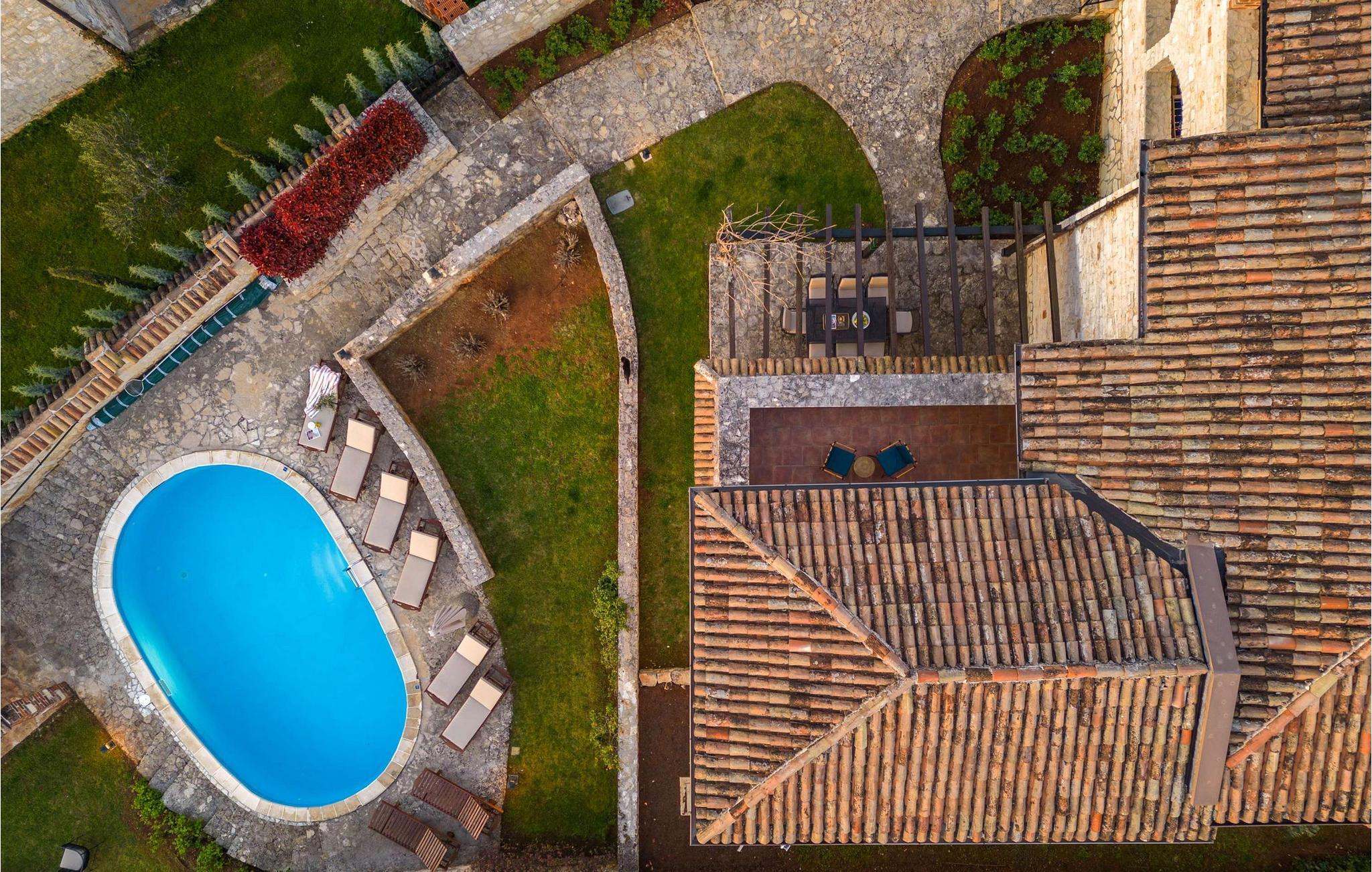 Die rustikale Villa Adea befindet sich in Istrien, in der wunderschönen Stadt Sv. Lovrec, das im westlichen Teil der Halbinsel Istrien liegt. Diese kleine Stadt ist ein verstecktes Juwel und eine der am besten erhaltenen mittelalterlichen Festungsstädte in Istrien. Wenn Sie auf der Suche nach einem ruhigen Urlaub in Gesellschaft von Freunden und Familie sind, dann ist Villa Adea die richtige Wahl für Sie! Villa Adea bietet Unterkunft für maximal 8 Personen, denen 200 m2 zur Verfügung stehen, und die Gesamtfläche des Anwesens beträgt 768 m2. Im Obergeschoss befinden sich 3 Schlafzimmer mit Doppelbetten (180x200), während sich im Erdgeschoss ein viertes Schlafzimmer mit 2 Einzelbetten (90x200) befindet, die bei Bedarf zusammengestellt werden können. Zwei Schlafzimmer verfügen über ein eigenes Badezimmer mit Dusche und die Villa verfügt über ein weiteres Badezimmer mit Badewanne, das sich zwischen den beiden Zimmern befindet. Im Erdgeschoss dieser vollklimatisierten Villa gibt es außerdem eine Küche, in der Sie köstliche Mahlzeiten für die ganze Familie zubereiten können, sowie ein Esszimmer mit einem Esstisch mit 8 Sitzplätzen und ein Wohnzimmer. Dort können Sie sich auf zwei Sofas und zwei Sesseln ausruhen, Kontakte knüpfen und fernsehen. Auf der Außenterrasse gibt es einen Esstisch im Freien und einen Pool von 32 m2 und 1,5 Metern Tiefe. Auf der Liegewiese neben dem Pool gibt es 8 Liegestühle zum Sonnenbaden, die sich ideal zum Genießen Ihres Lieblingsbuchs eignen. Auf dem Holzkohle- oder Holzgrill im Freien können Sie köstliche Mahlzeiten Ihrer Wahl zubereiten. Während Ihres Aufenthaltes können Sie in der Villa den Futterspender, das Babybett, die Waschmaschine und das Bügeleisen nutzen. Auf der Terrasse gibt es auch eine Infrarotsauna, die Ihnen die Möglichkeit gibt, Ruhe und Frieden zu genießen und sich Zeit für sich selbst zu gönnen! Der Innenhof der Villa Adea ist komplett eingezäunt und bietet 1 Parkplatz, während es außerhalb des Innenhofs 2 weitere Parkplätze gibt. Istrien bietet Ihnen wunderschöne Sonnenuntergänge, viele Möglichkeiten für Tagesausflüge und die Nähe zu Städten, in denen Sie zu Fuß oder mit dem Fahrrad fahren können. Ebenso können Sie in verschiedenen Tavernen oder Restaurants das perfekte gastronomische Angebot an hervorragenden Köstlichkeiten probieren, die jeden Gaumen erfreuen! Willkommen in der Villa Adea! Haustiere sind in dieser Unterkunft nach Ermessen des Eigentümers oder gegen eine Gebühr gestattet.