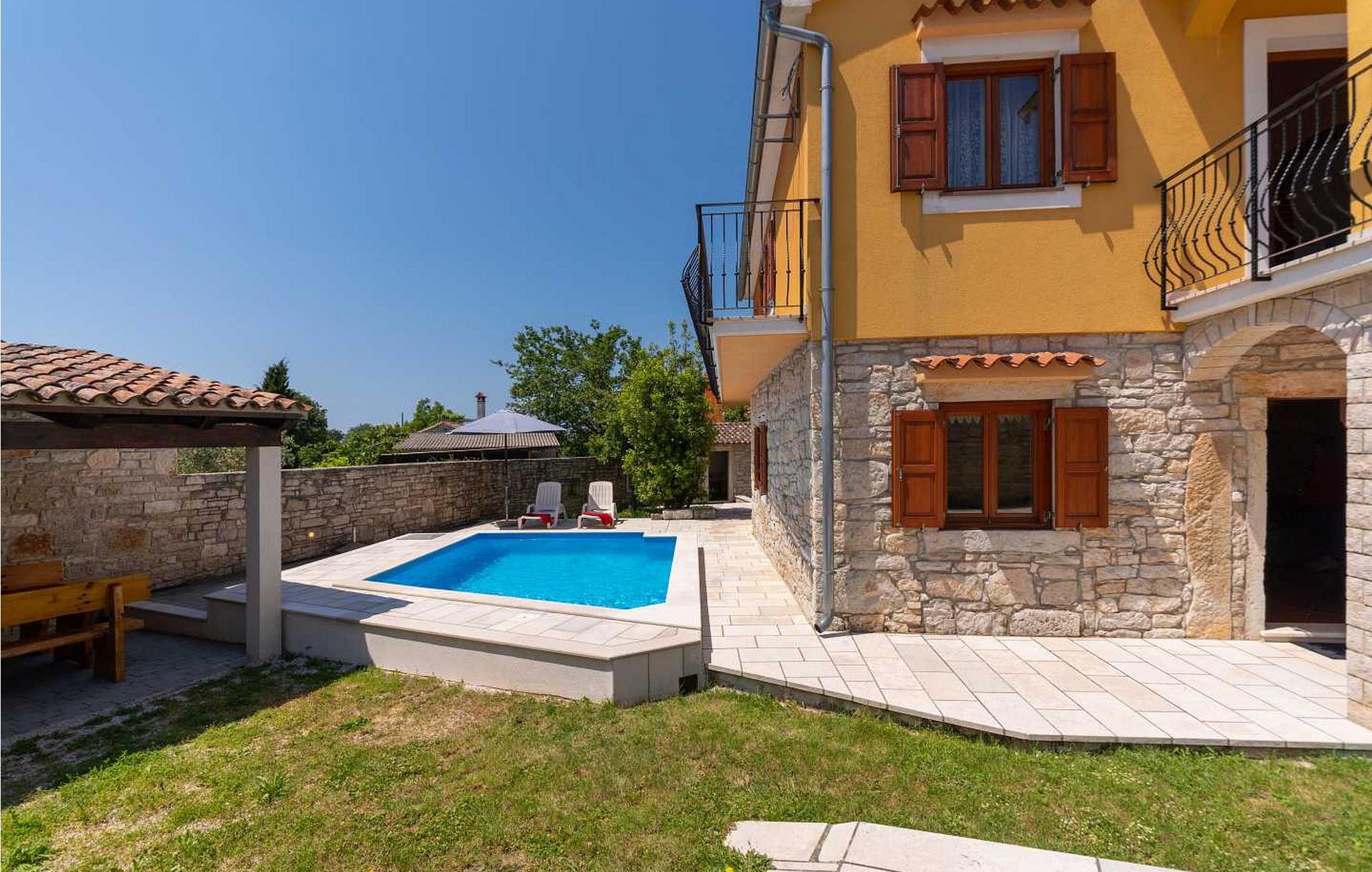 Villa Zaneta mit Pool ist ein renoviertes Haus im ruhigen Dorf Vosteni, 4 km von Sveti Lovrec und 17 km von Porec und den Stränden entfernt.