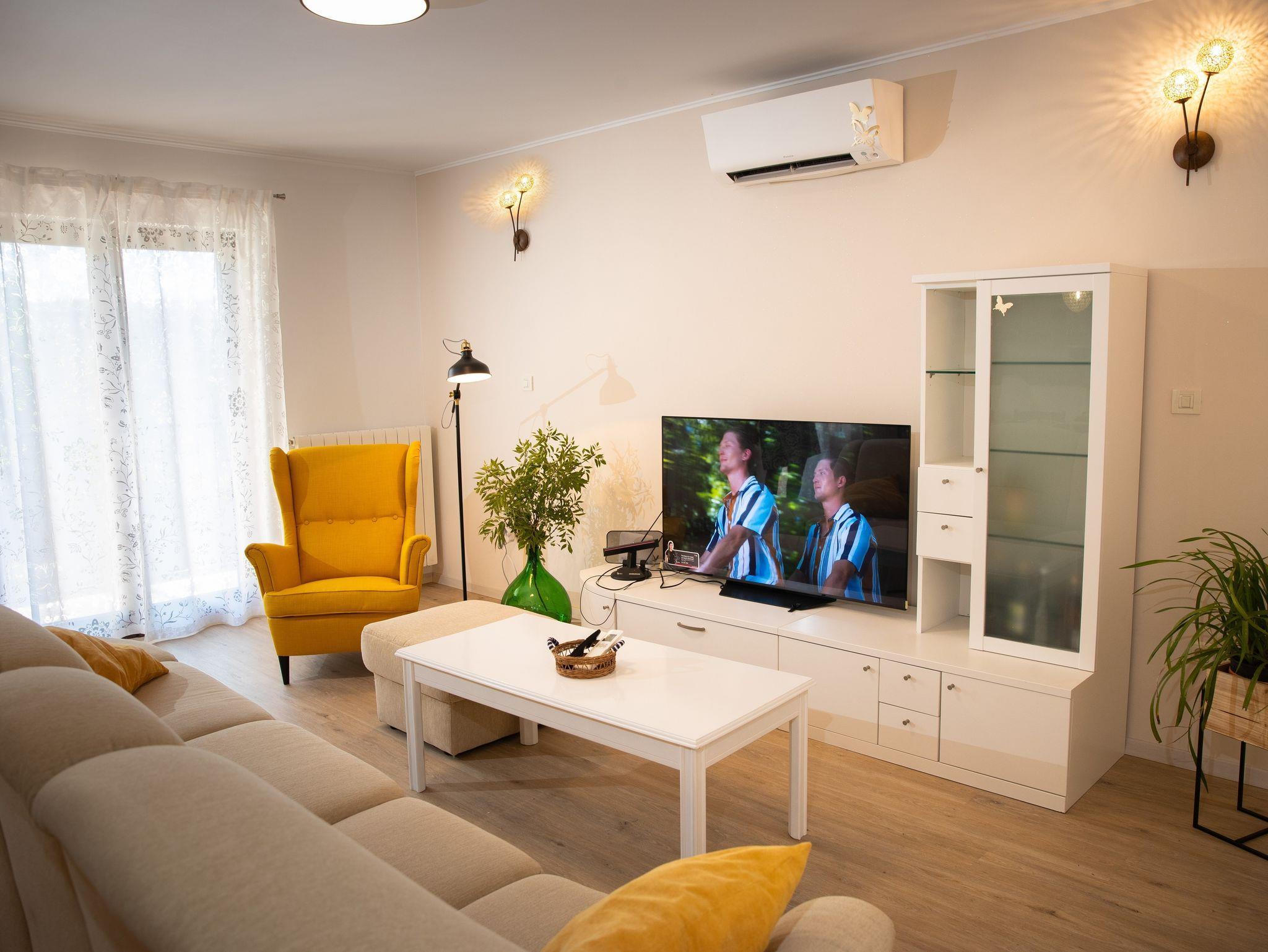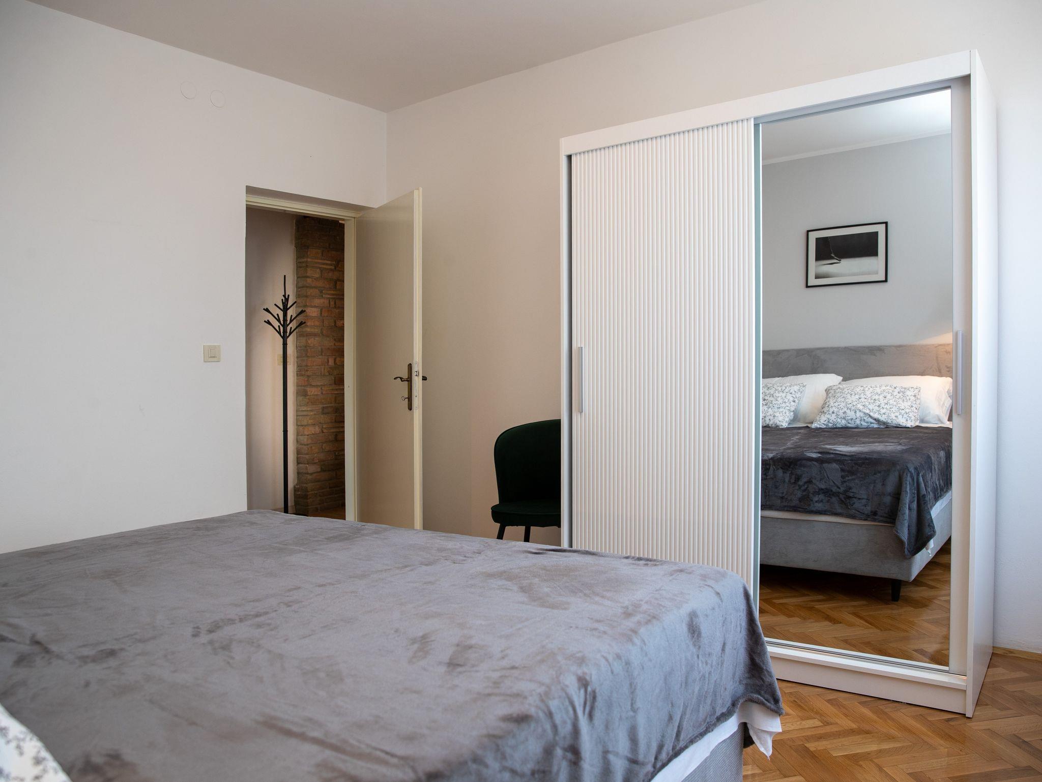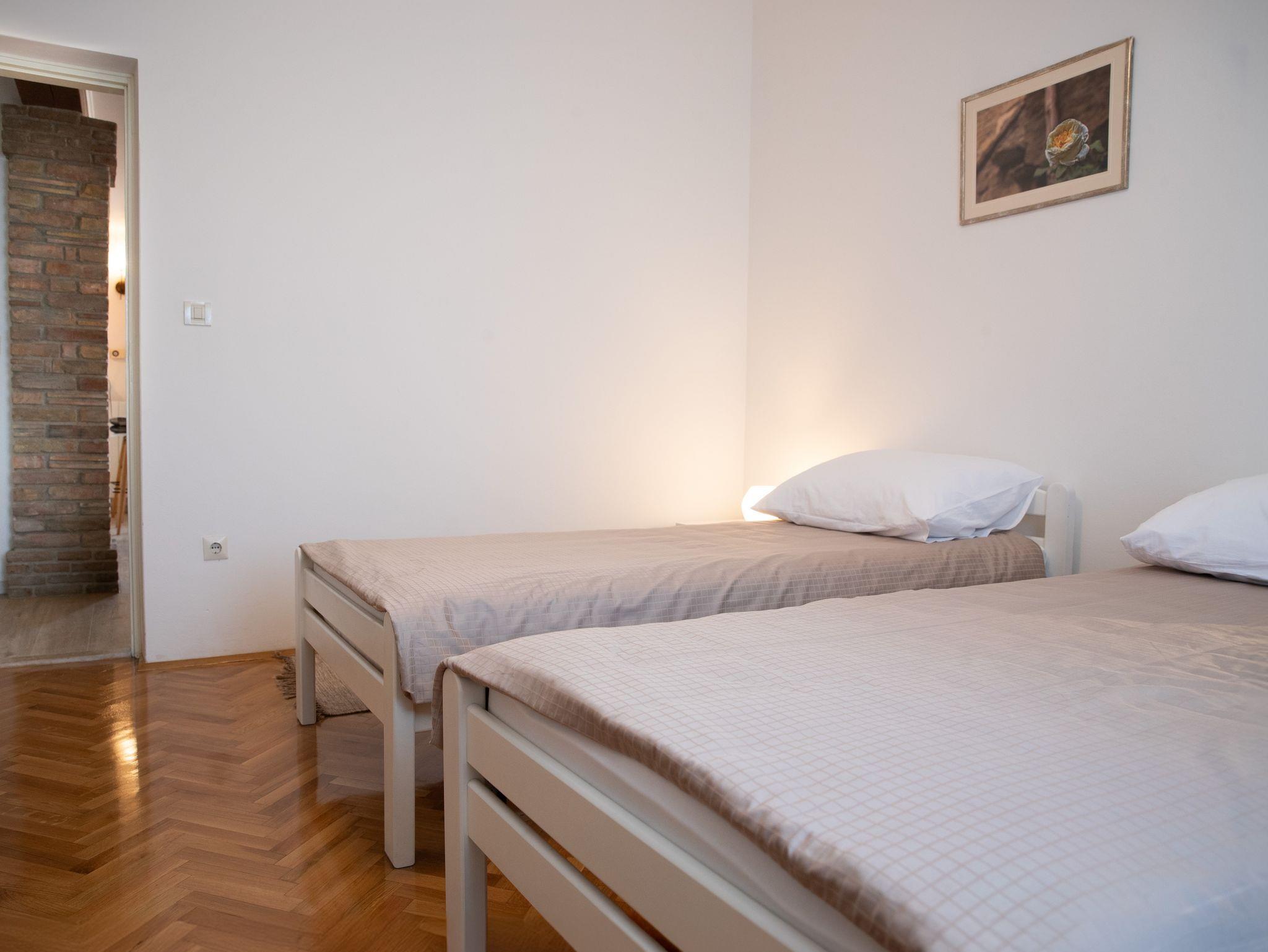 Ferienwohnung bietet Platz für 6 Gäste. Die Betten sind in Schlafzimmern, die es 3 gibt, innerhalb einer Gesamtfläche von 109m2, angeordnet. Die Gäste haben eine eigene Terrasse zur Verfügung, auf der sie in warmen Sommernächten genießen können. Es ist erlaubt, Speisen auf dem Gemeinschafts-Grill vorzubereiten. In der Unterkunftseinheit besteht die Möglichkeit des Mitbringens von Haustieren gegen Aufpreis. IM PREIS INBEGRIFFEN: Kurtaxe, Endreinigung, Klimatisierung, Parkplatz, Internet, Bügeleisen, Bügelbrett, Föhn, tragbarer Grill. VERBINDLICHE ZUSÄTZLICHE KOSTEN: Aufzahlung für Kurzaufenthalte (prozentualer Zuschlag pro Nächtigungsanzahl: 30% - 1, 20% - 2, 10% - 3). UNVERBINDLICHE ZUSÄTZLICHE KOSTEN: Zentralheizung (20,00 € pro Nacht), Haustiere (10,00 € pro Nacht). Die Verfügbarkeit zusätzlicher Dienstleistungen in Ihrem reservierten Termin und die Preise derselben (falls nicht aufgeführt) müssen im Voraus überprüft werden. Zusätzliche Dienstleistungen die in der Zahlungsaufforderung nicht aufgeführt sind werden direkt beim Vermieter bezahlt, angenommen der Gast nutzt auch diese. Ermäßigung auf den Grundpreis: Gratistag 14=13 (bei einem Aufenthalt von 14 Tagen oder mehr erhalten Sie einen Gratistag für den Aufenthalt bis 31.12.26).