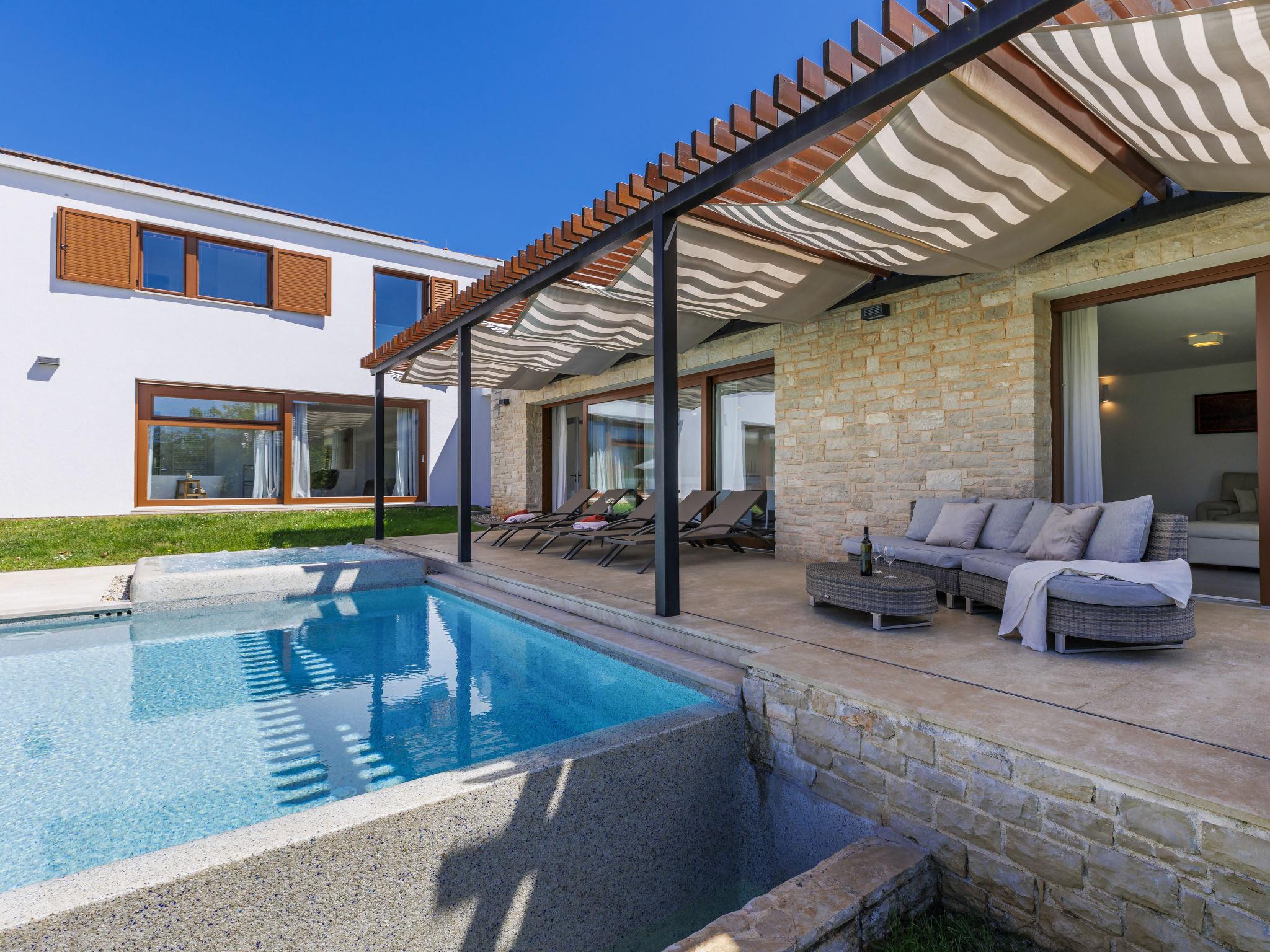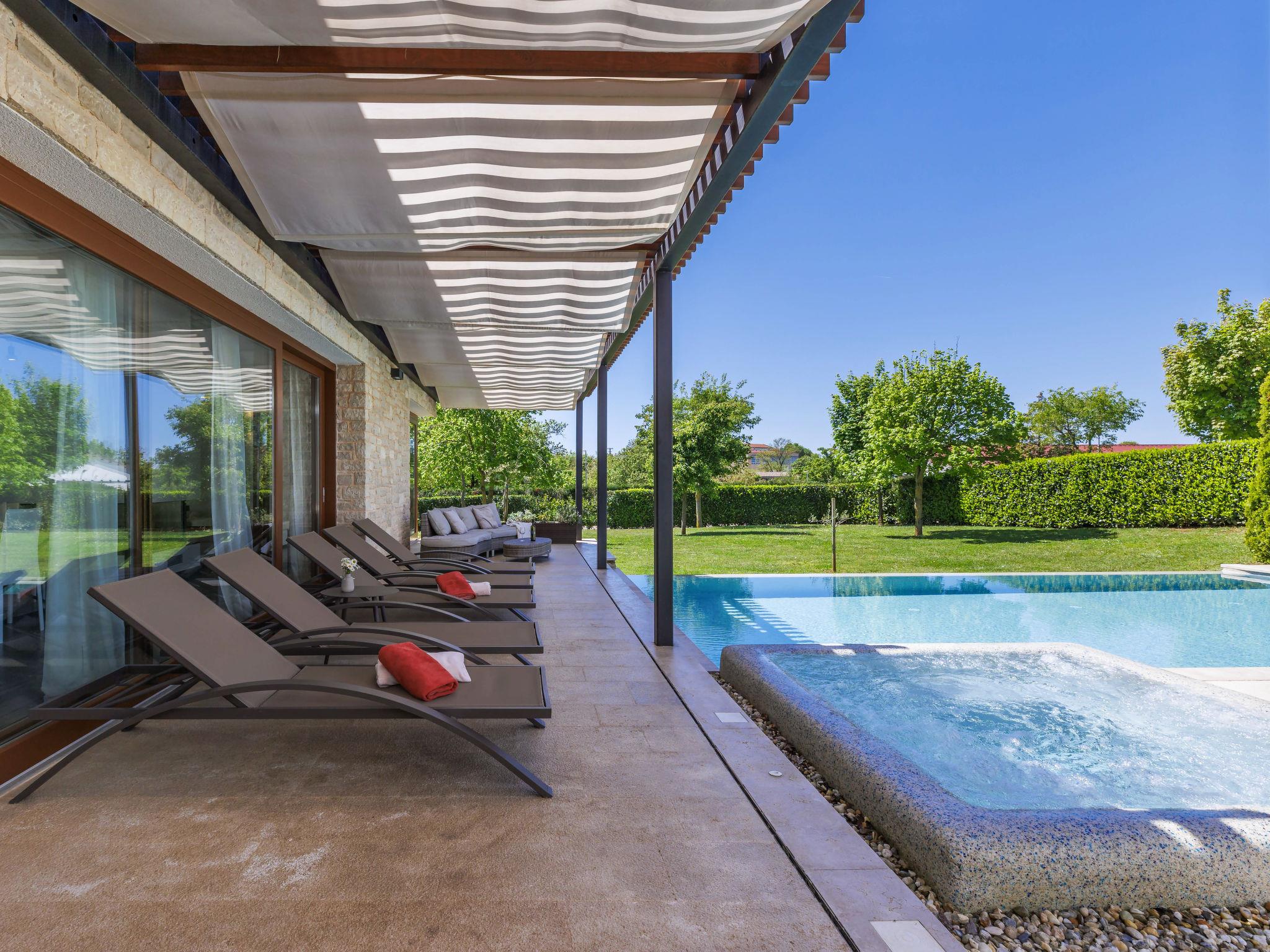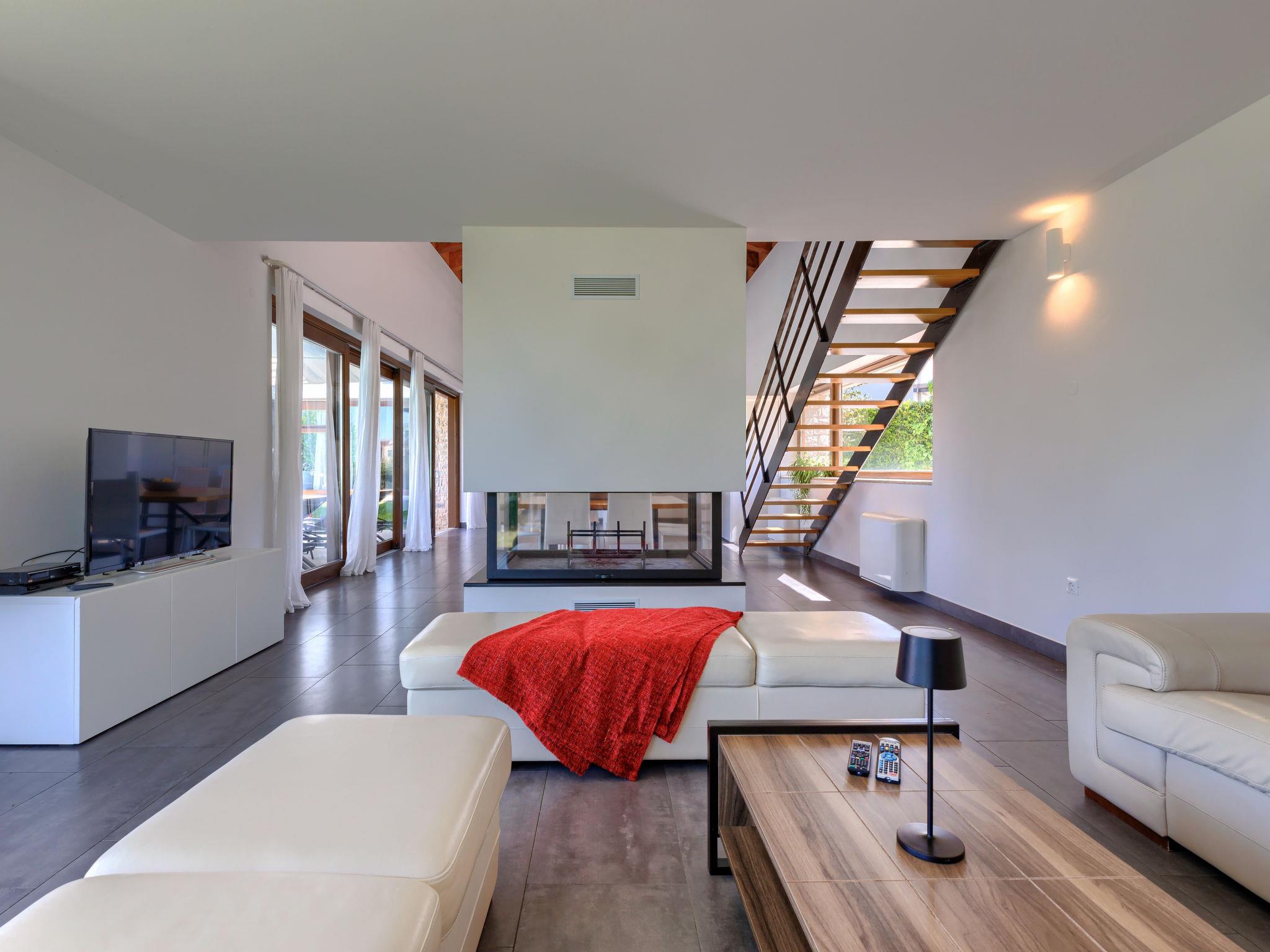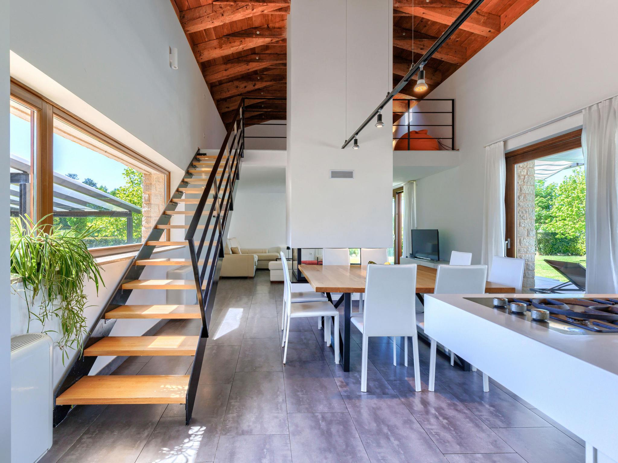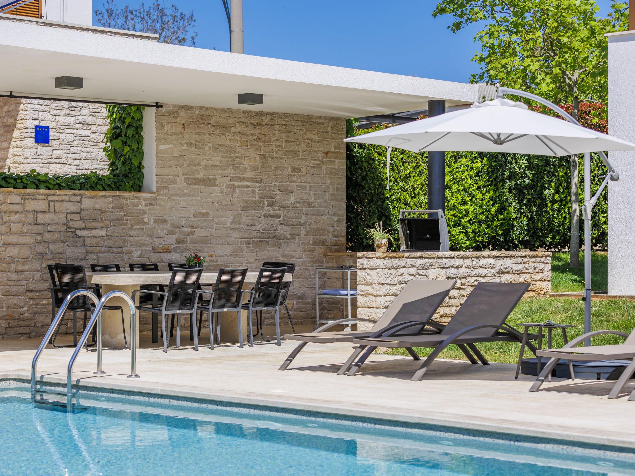 Moderne Villa "Terra Rossa", auf 2 Stockwerken. 4 km vom Zentrum von Žminj, 13 km vom Zentrum von Pazin, ruhige, sonnige Lage, 27 km vom Meer. Zur Alleinbenutzung: Grundstück 1'888 m2, schöner, gepflegter Garten mit Rasen, Schwimmbad eckig (10 x 5 m, 140 cm tief, saisonale Verfügbarkeit: 01.Jan. - 31.Dez.) mit Innentreppe. Aussendusche, Sprudelbad, Terrasse (23 m2), Gartenmöbel, Grill. Im Hause: Internetzugang, Waschmaschine, Wäschetrockner. Parkplatz (für 2 Autos, überdacht) beim Haus auf dem Grundstück. Einkaufsgeschäft 100 m, Supermarkt 6 km, Restaurant 1 km, Café 500 m, Bushaltestelle 6.9 km, Bahnstation 500 m, Kieselstrand 27 km. Reitstall 2 km, Wanderwege ab Haus 1 km, Radweg 1 km. Jugendgruppen nur auf Anfrage. Massage 500 m.